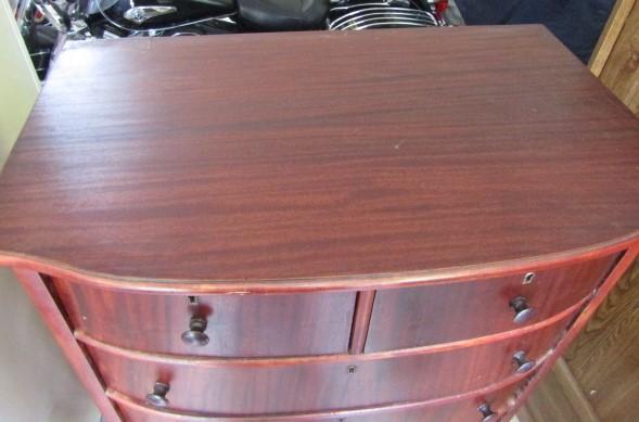 Vintage Flame Mahogany Bow Front Two over Four Dresser see pictures for measurement on minor veneer damage on back corner surface