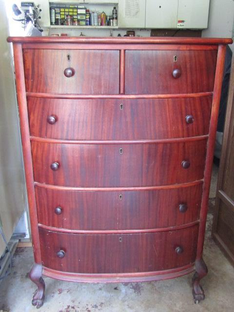Vintage Flame Mahogany Bow Front Two over Four Dresser