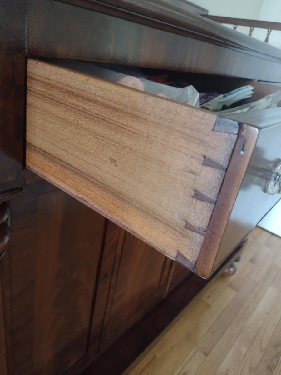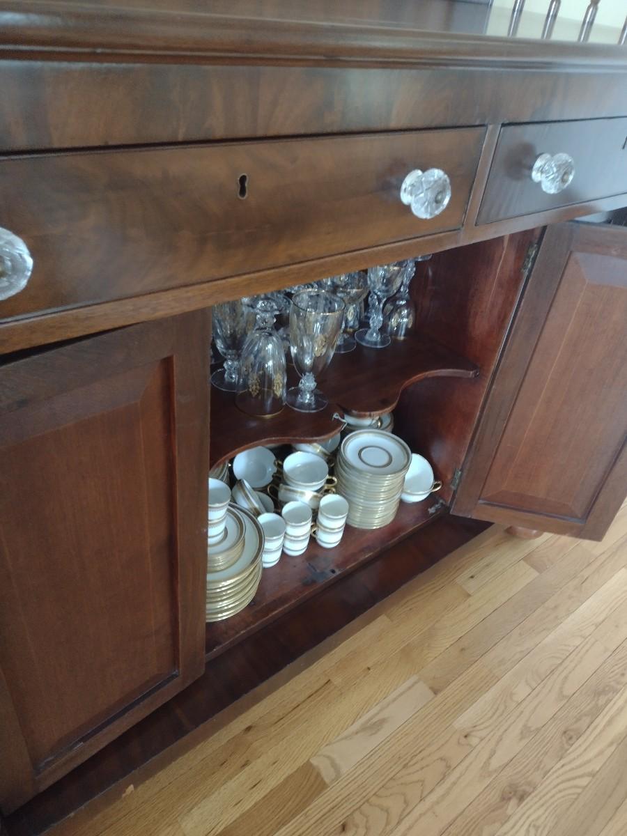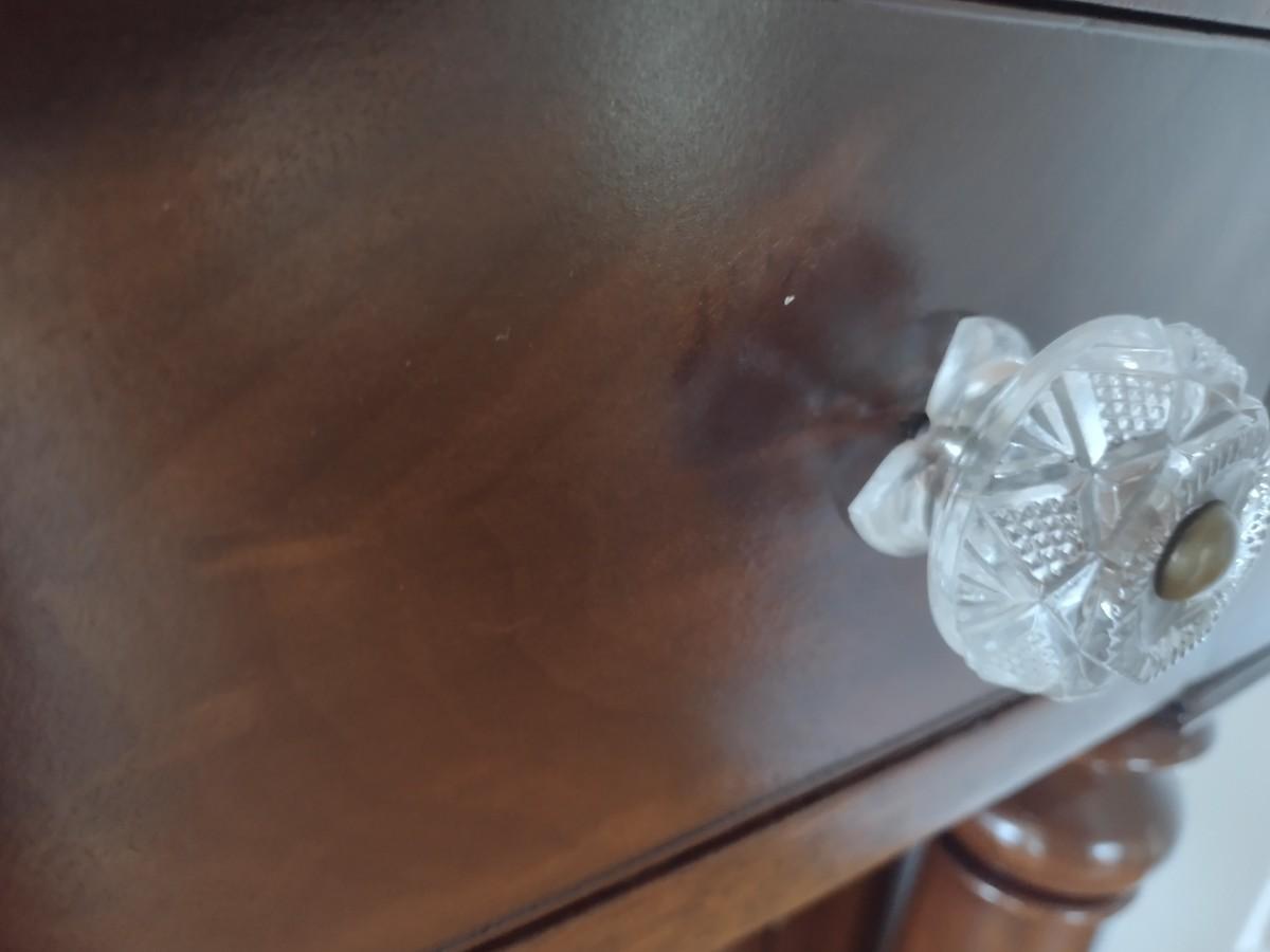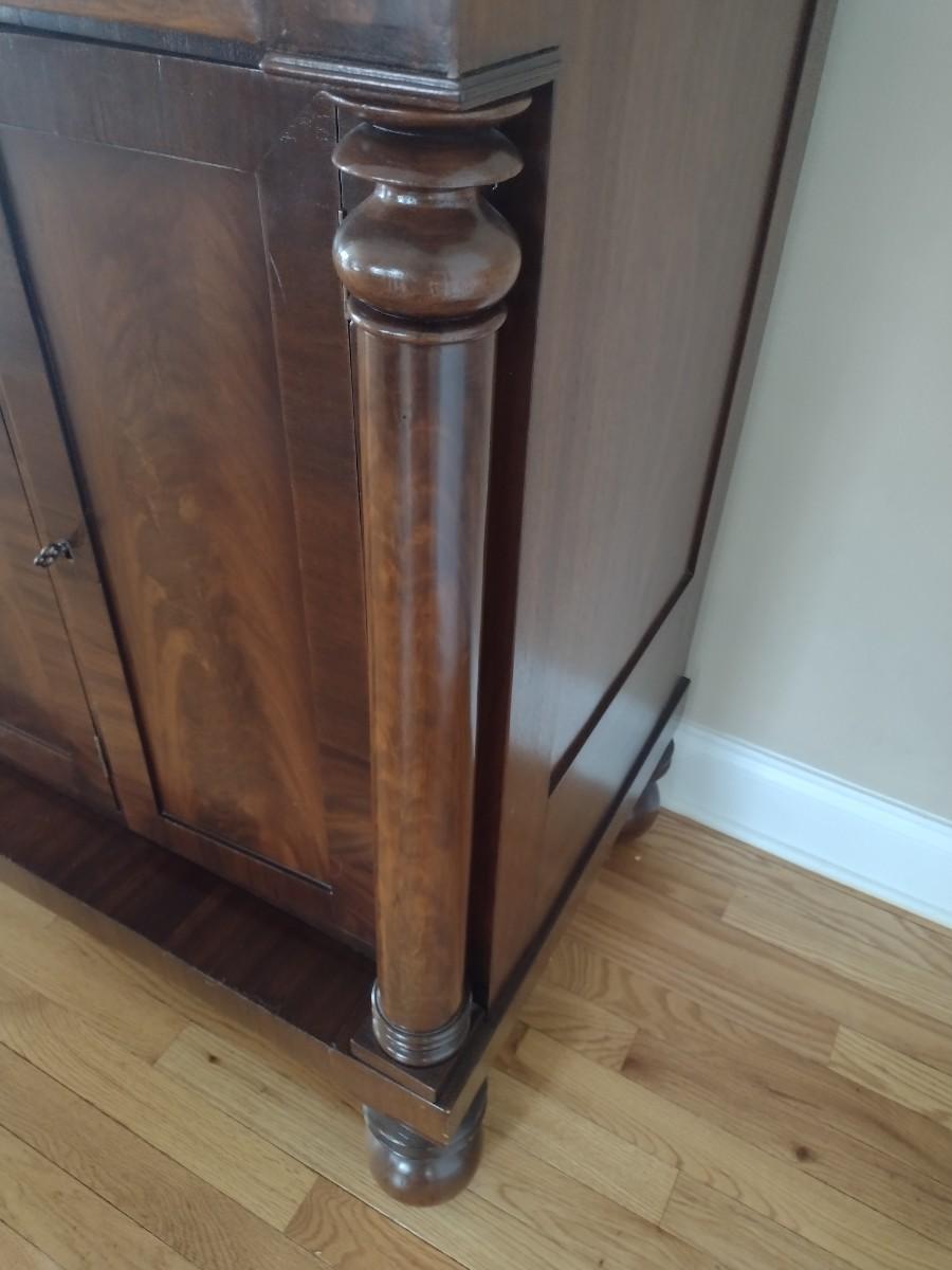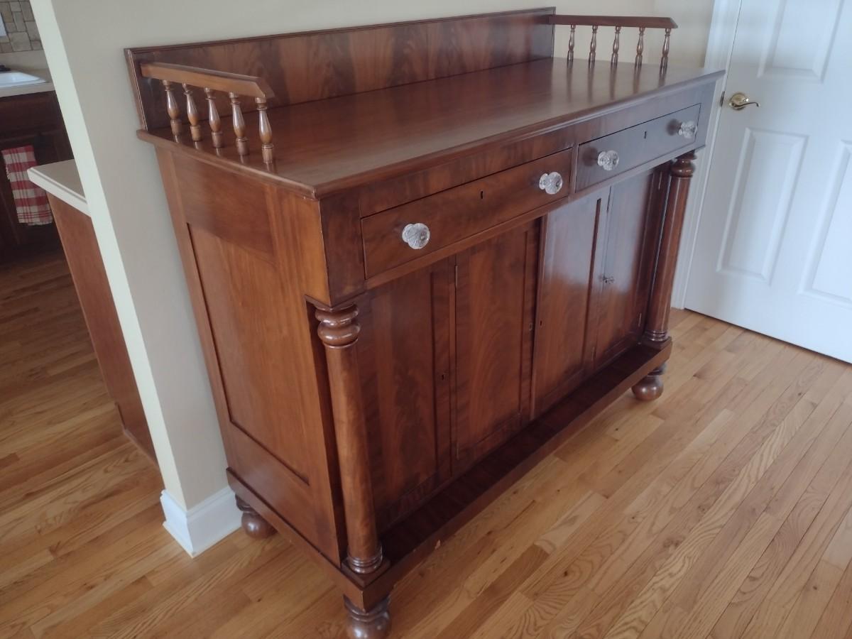 Vintage Flame Mahogany Credenza. Two of the glass knobs have chips as shown