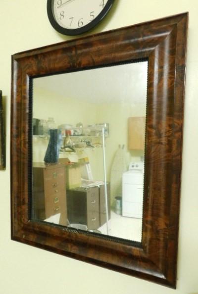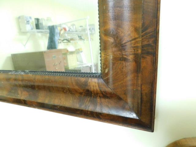 Vintage Flame Mahogany Framed Wall Mirror with Beveled Glass downstairs item