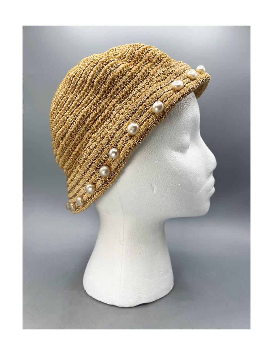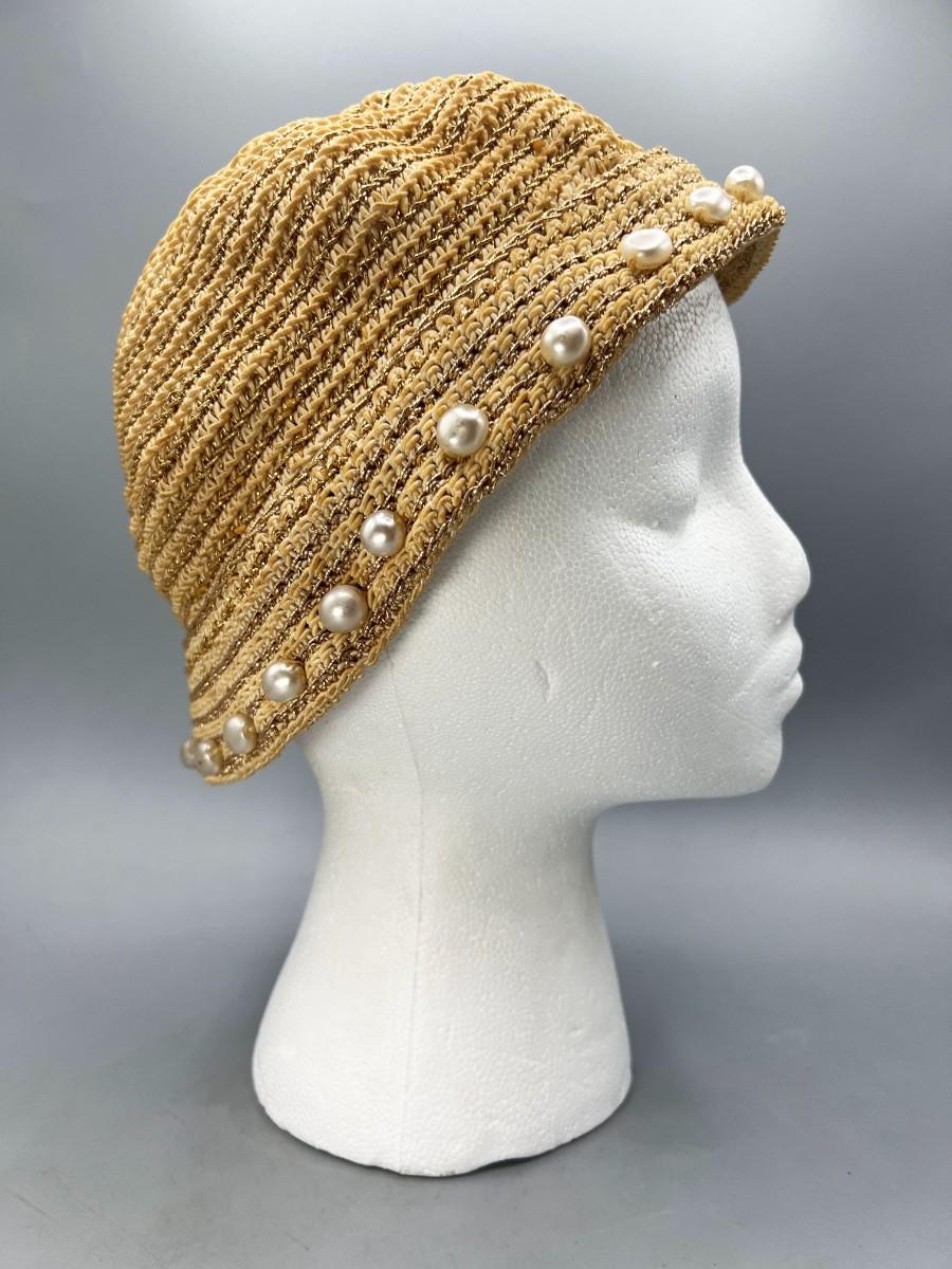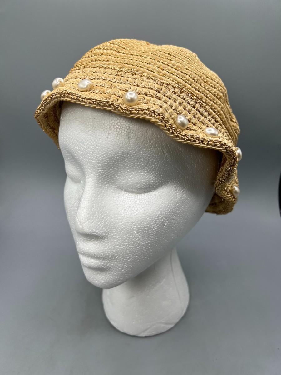 Vintage Flapper Fashionable Gold Cloche Bell Hat