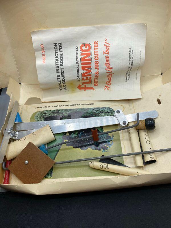 Vintage Fleming bottle & jug cutting kit. Box is a little worn and smashed. Kit looks to be complete with instructions.