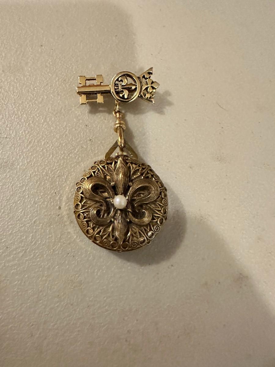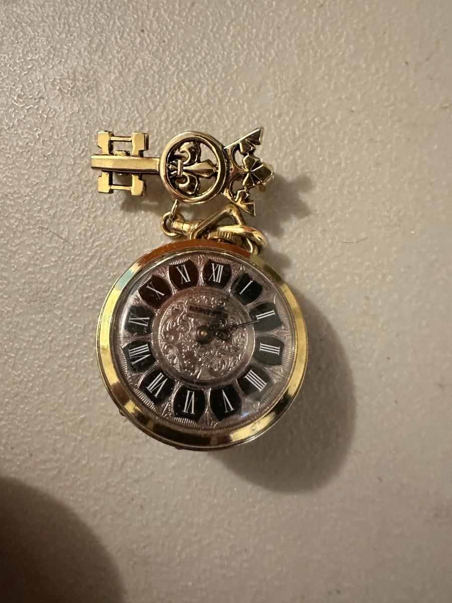 Vintage Fleur de Lis Watch. Hammond ladies vintage pocket Watch , pendant Chain