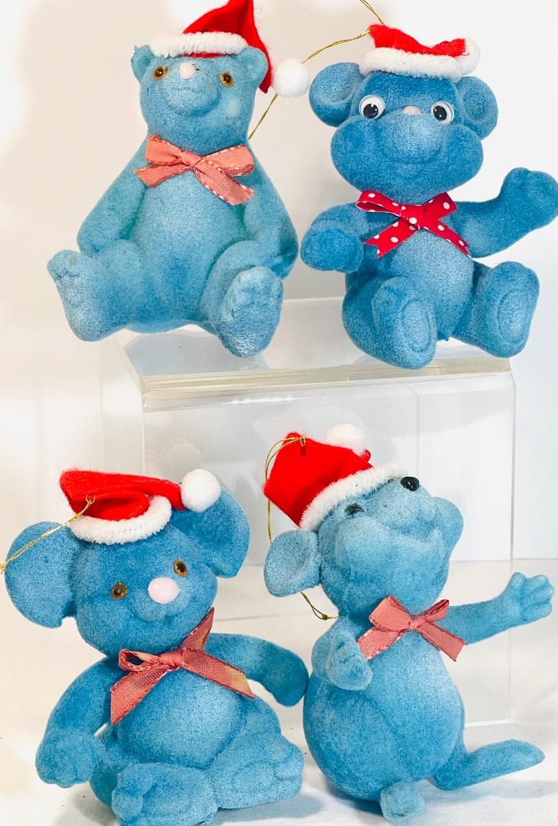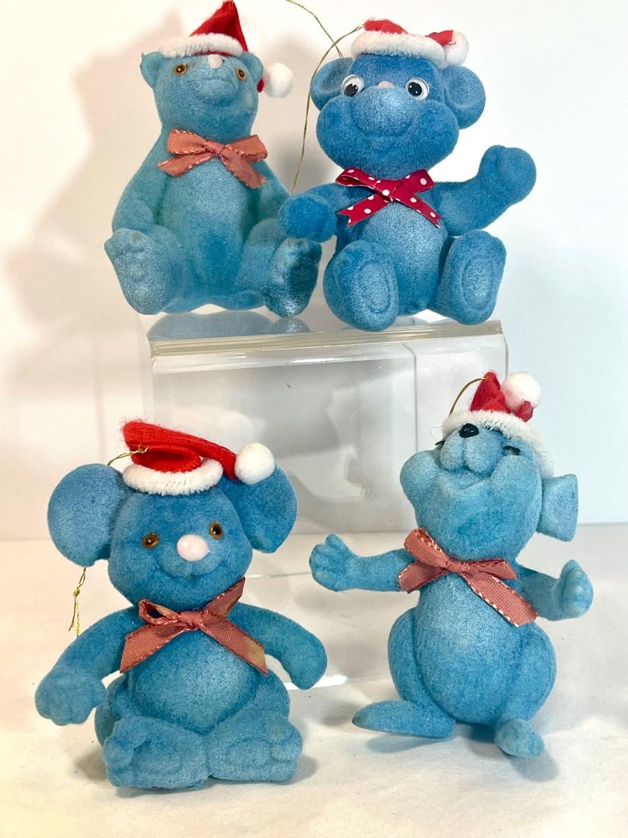 These little ornaments remind me of Grateful Dead dancing bears. Super cute bears, mice? Add a vintage touch to your tree. Vintage and in vintage condition with signs of use and wear. See pics as part of description.