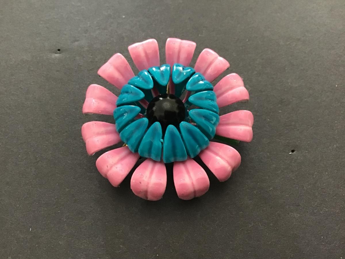 Vintage Floral Brooch pink Blue Enamel Demesional Brooch