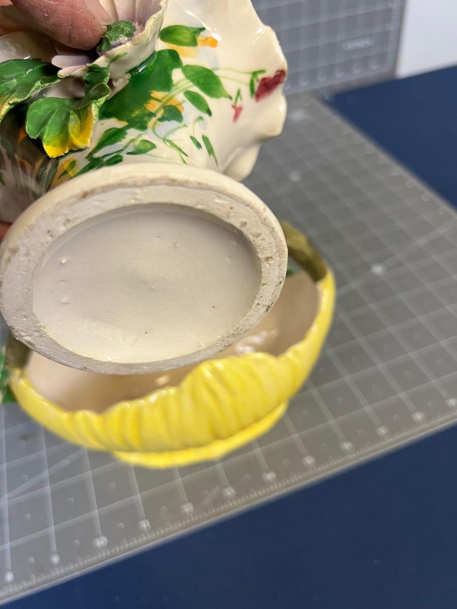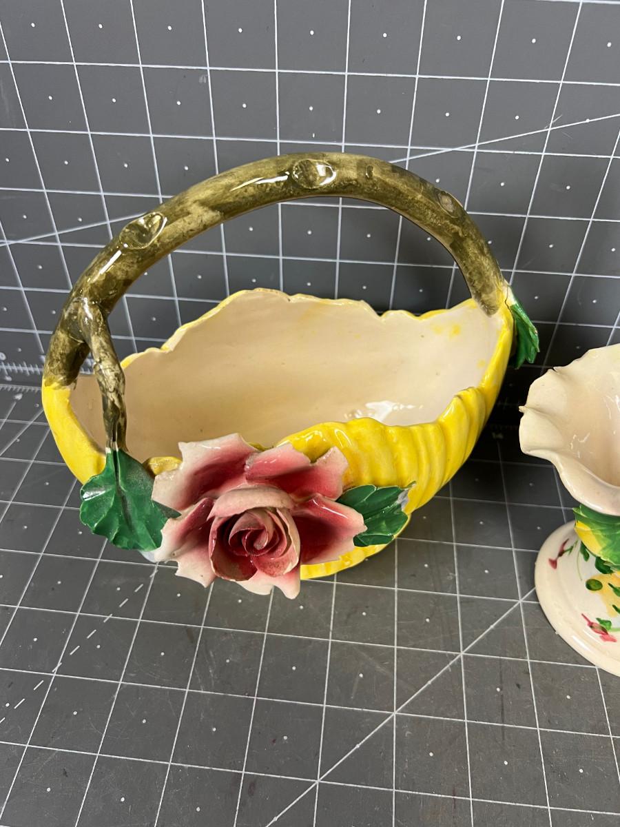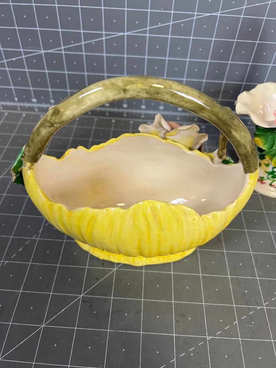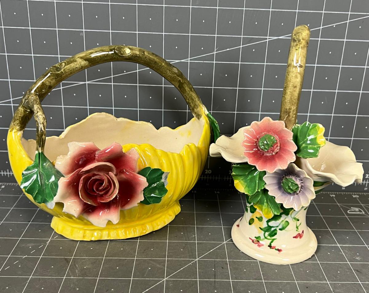 Vintage Floral Ceramic Baskets Yellow and Cream