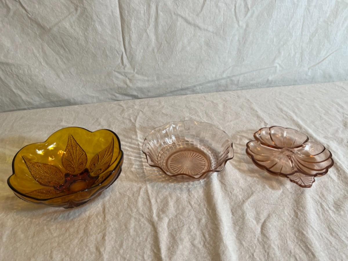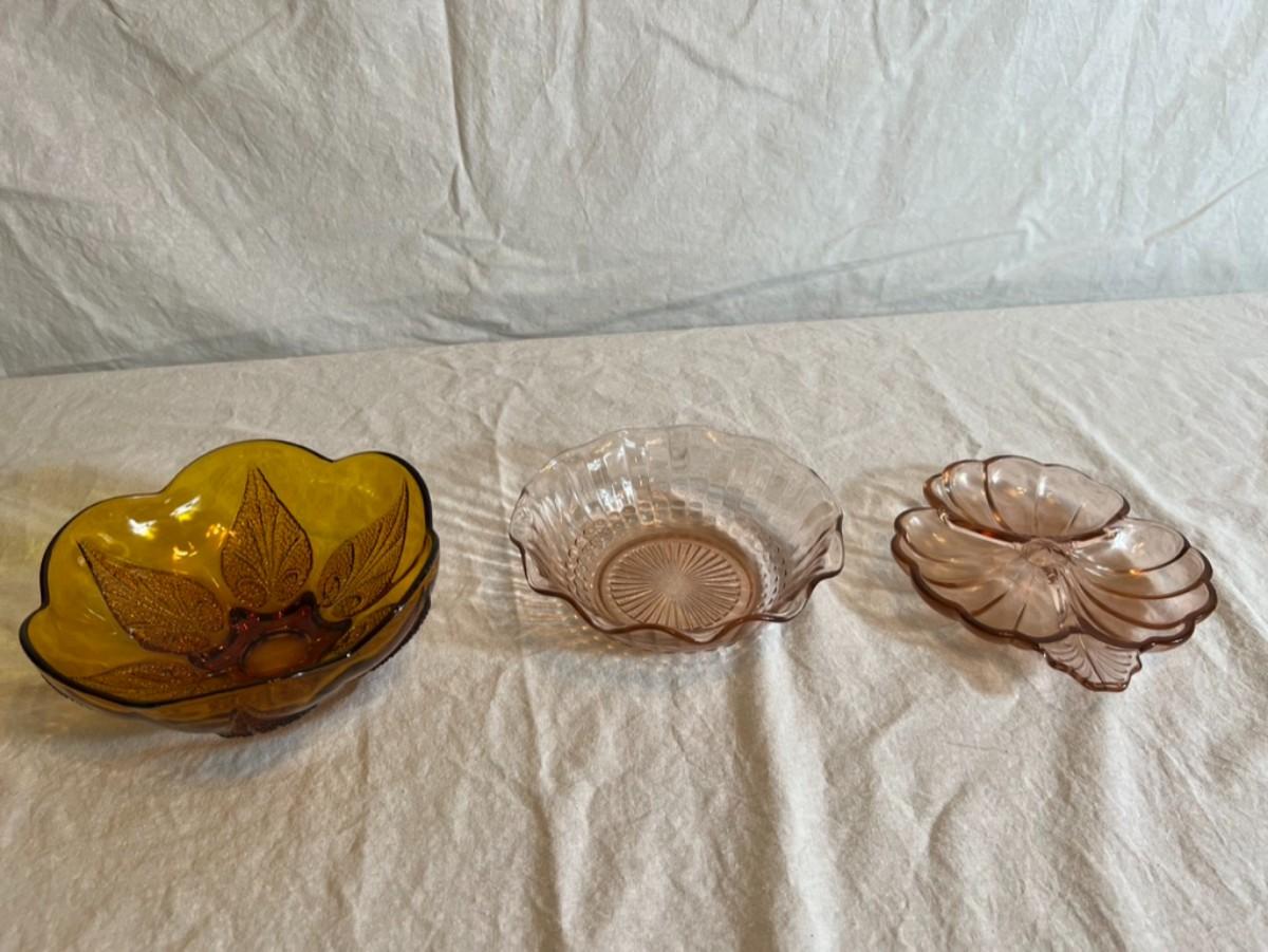 Textured Floral Colored Glass Bowls (3) - Vintage