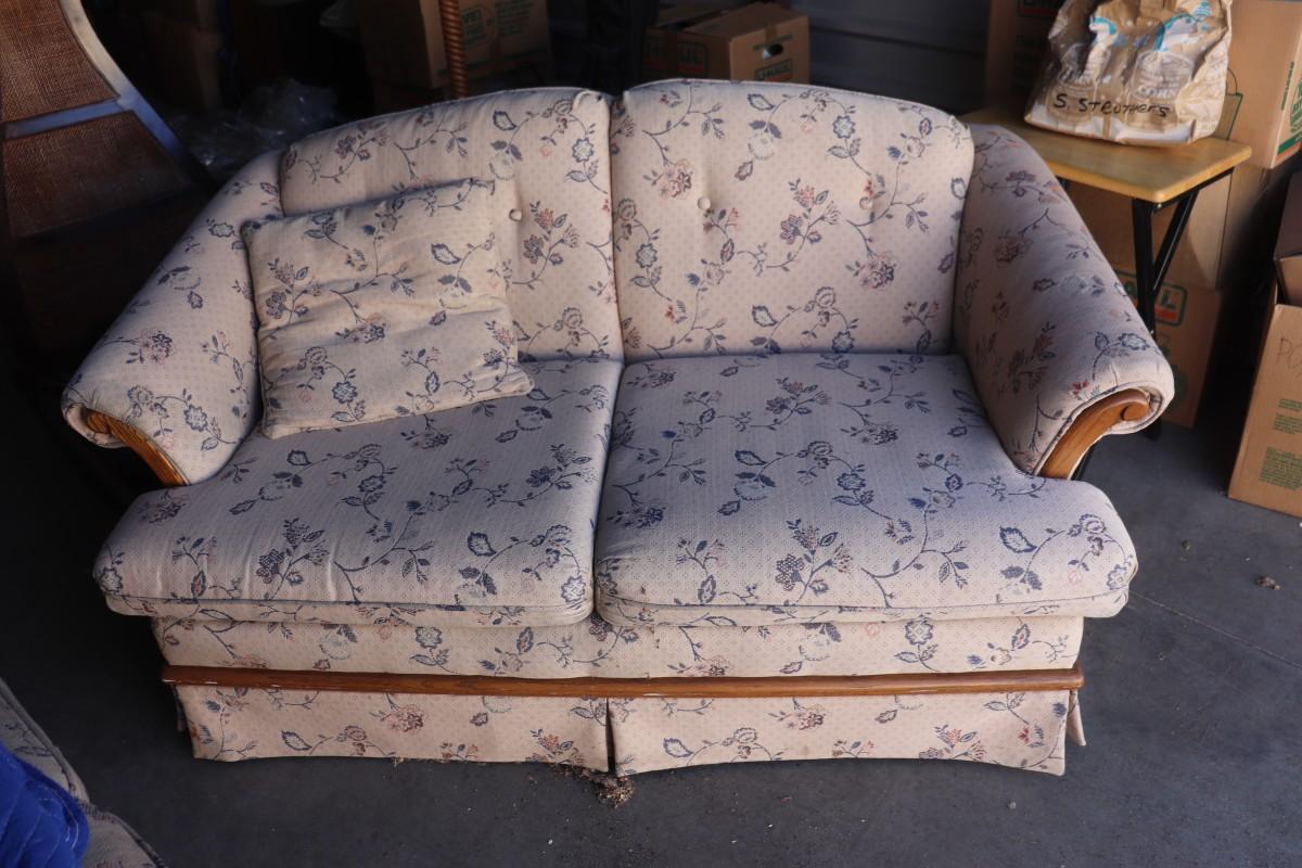 Vintage Floral Couch & Loveseat: A charming duo featuring vibrant floral patterns, perfect for adding a pop of color to your living space.
