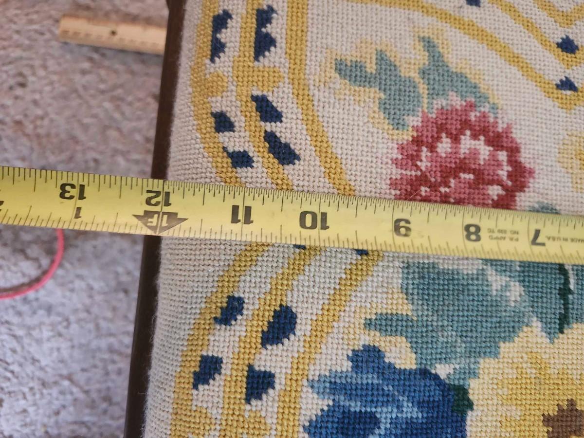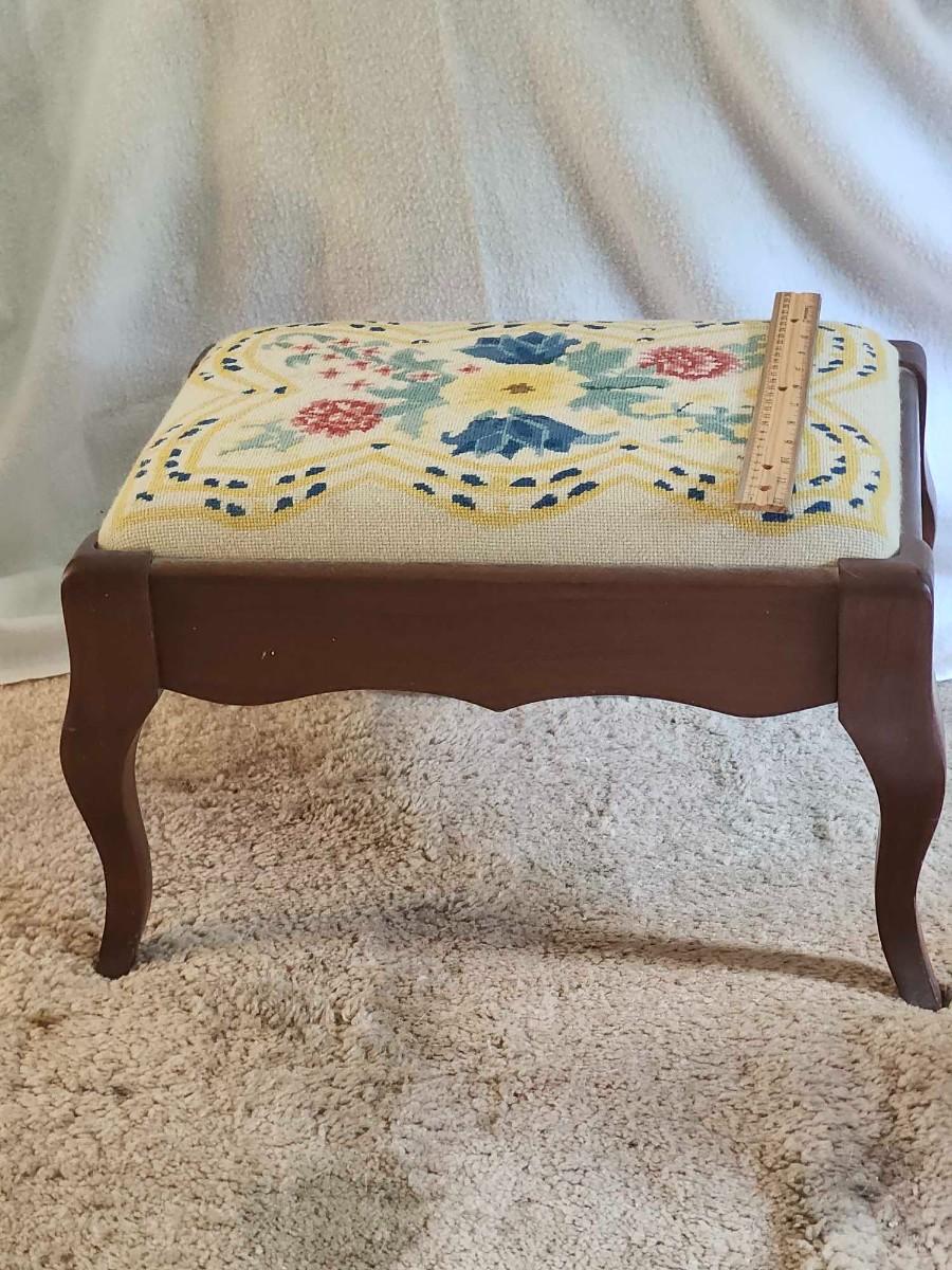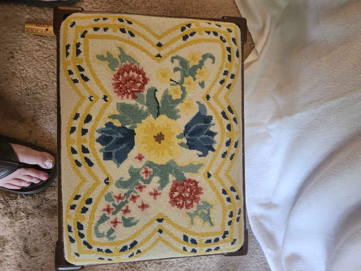 VINTAGE FLORAL NEEDLEPOINT FOOTSTOOL 16 X 12