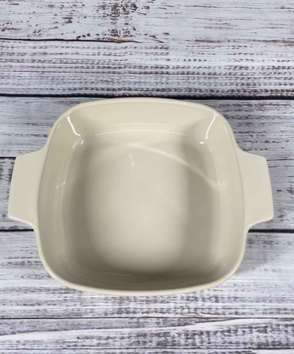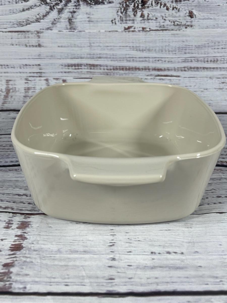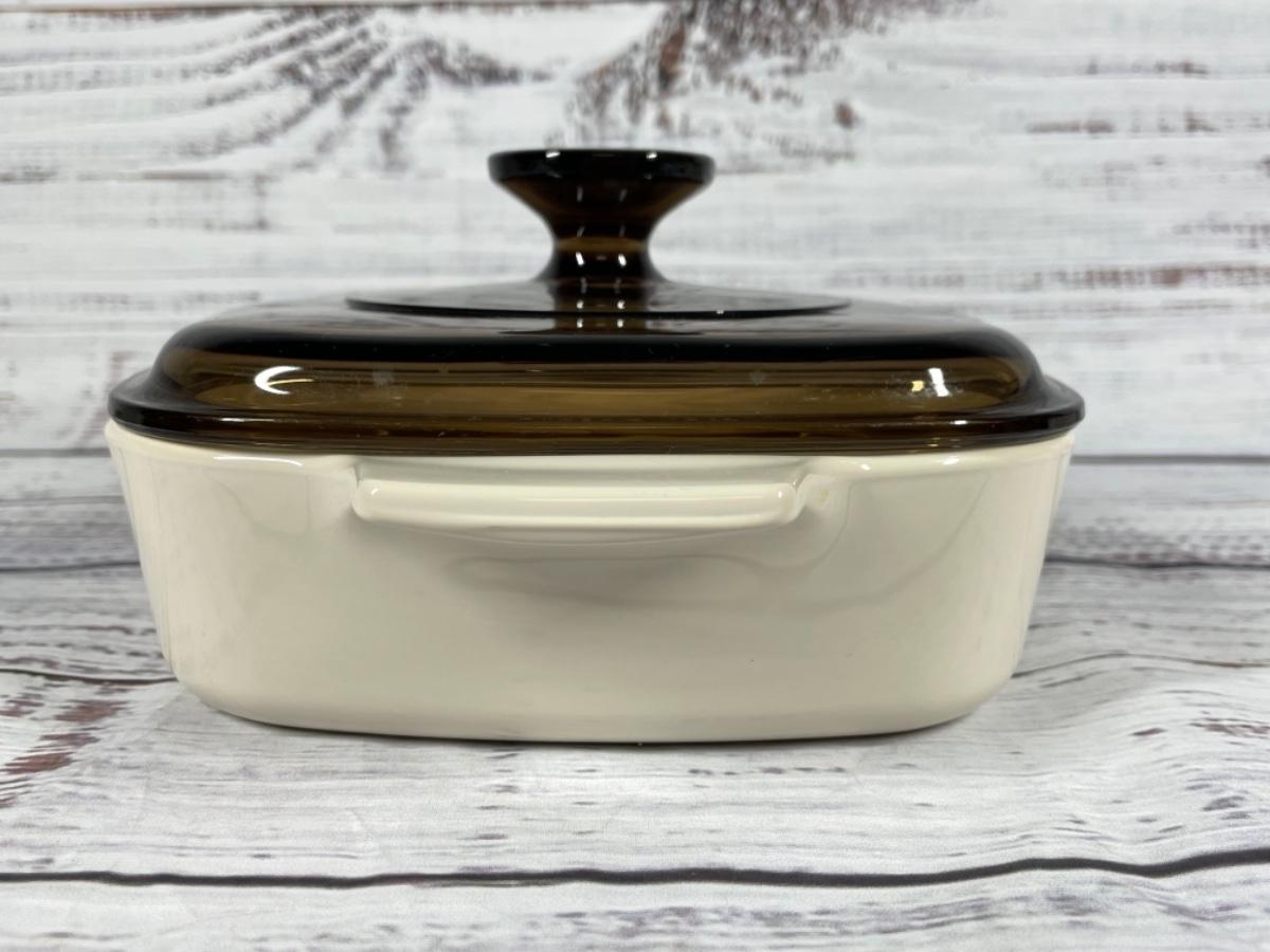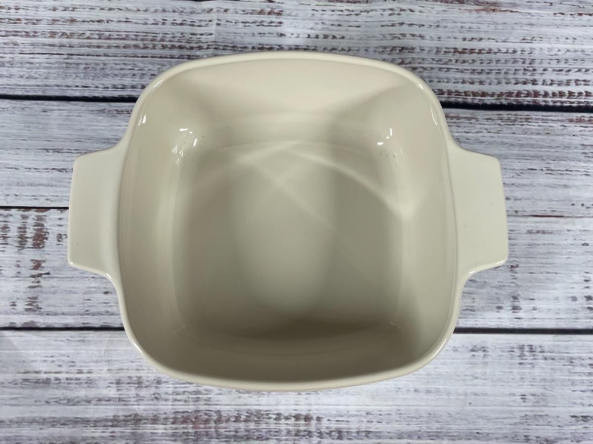 One of the cookware is missing a lid. All are in good condition but have some scratches on the lid and on the bottom. The biggest bowl is about 10” wide and the smallest is about 9” wide.
