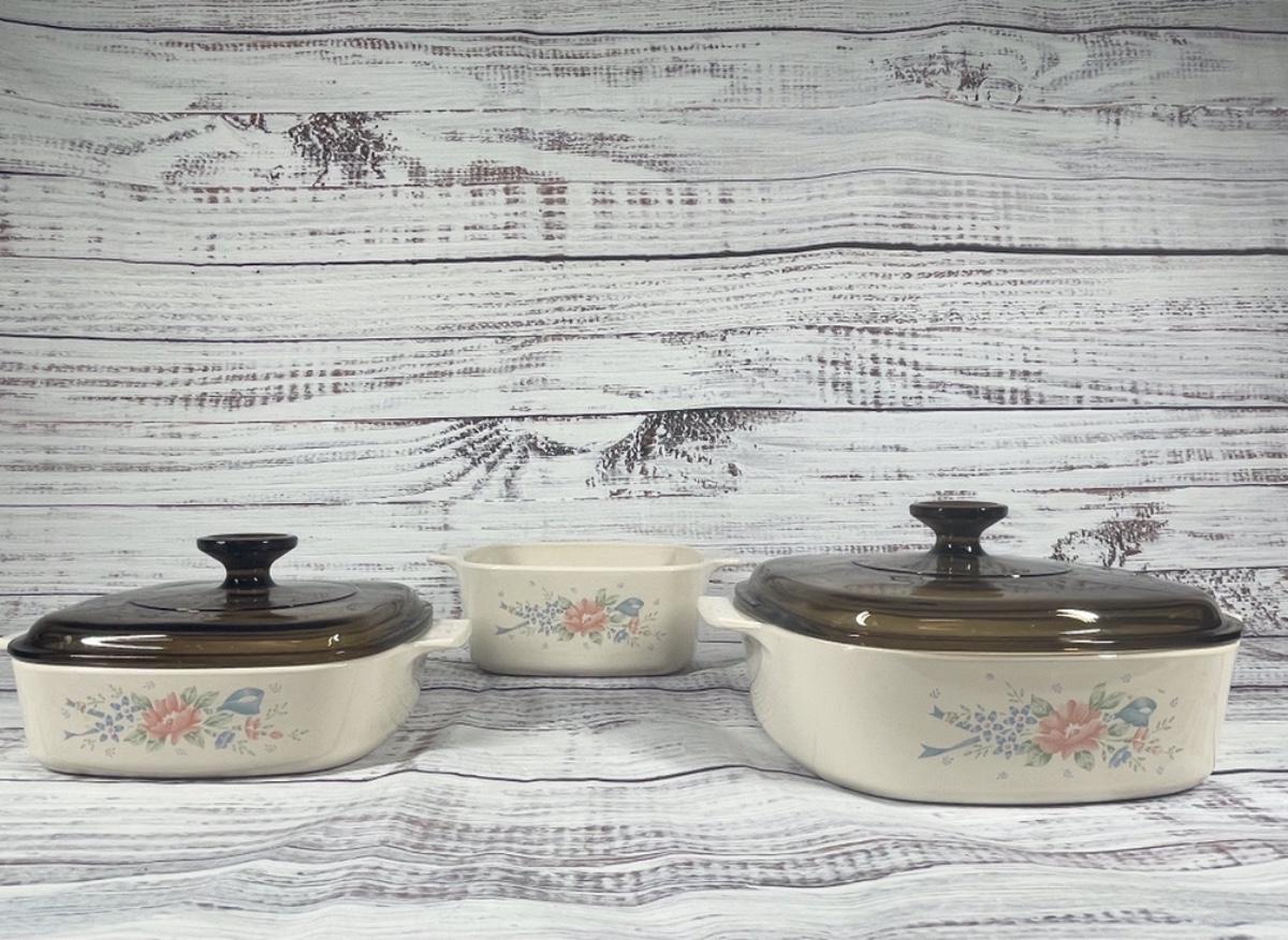 Vintage Corningware Symphony Floral Patterned Cookware Set of Three