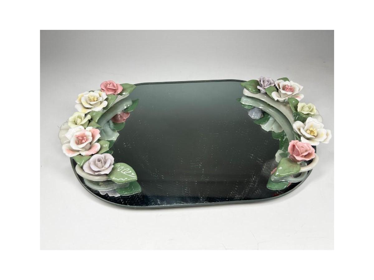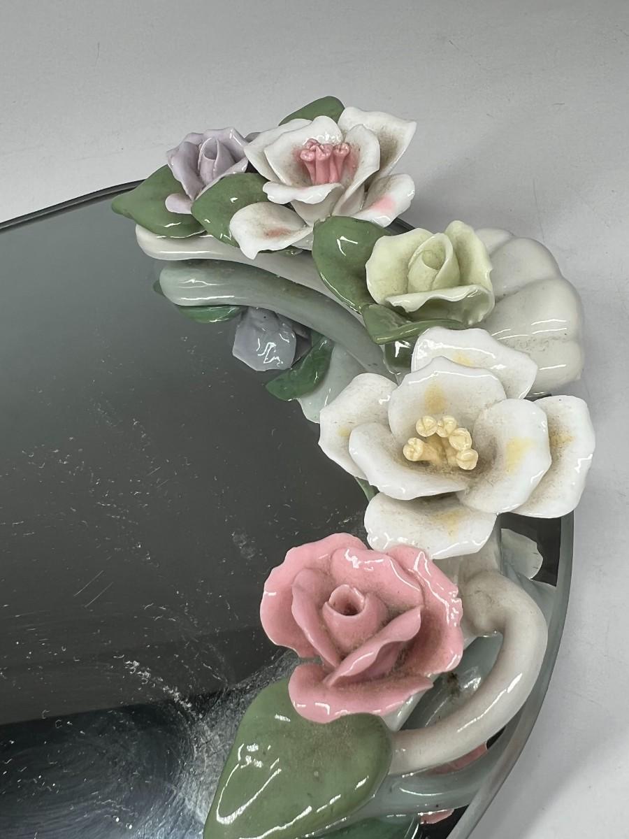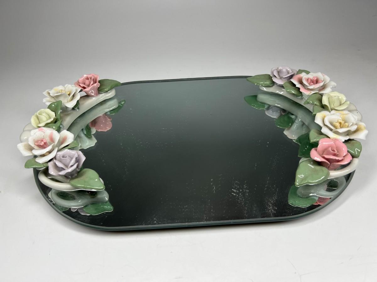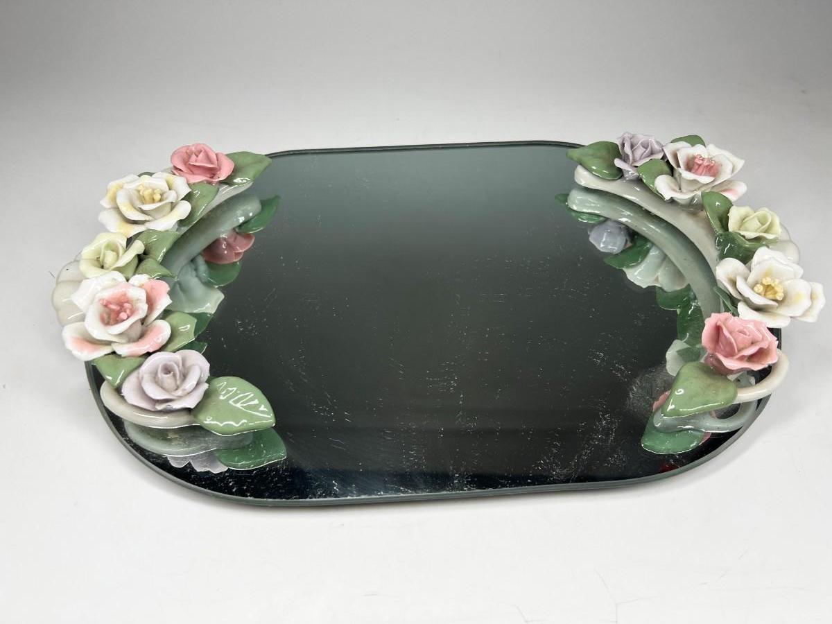 Vintage Floral Rose Edged Vanity Table Mirror Tray