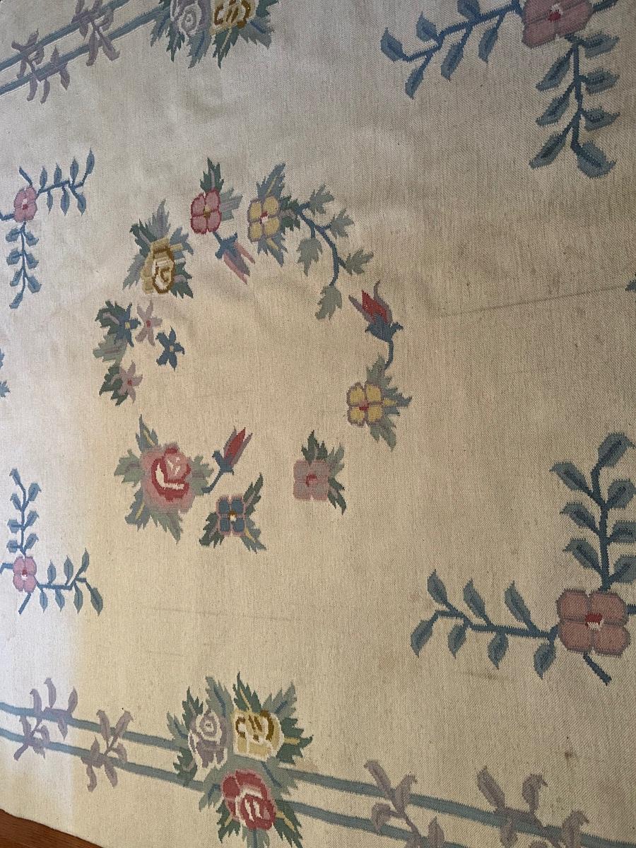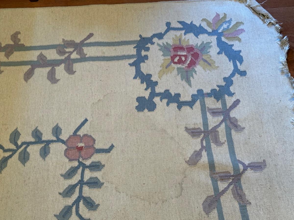 This rug does have a few blemishes/light stains, however it is still in great condition.