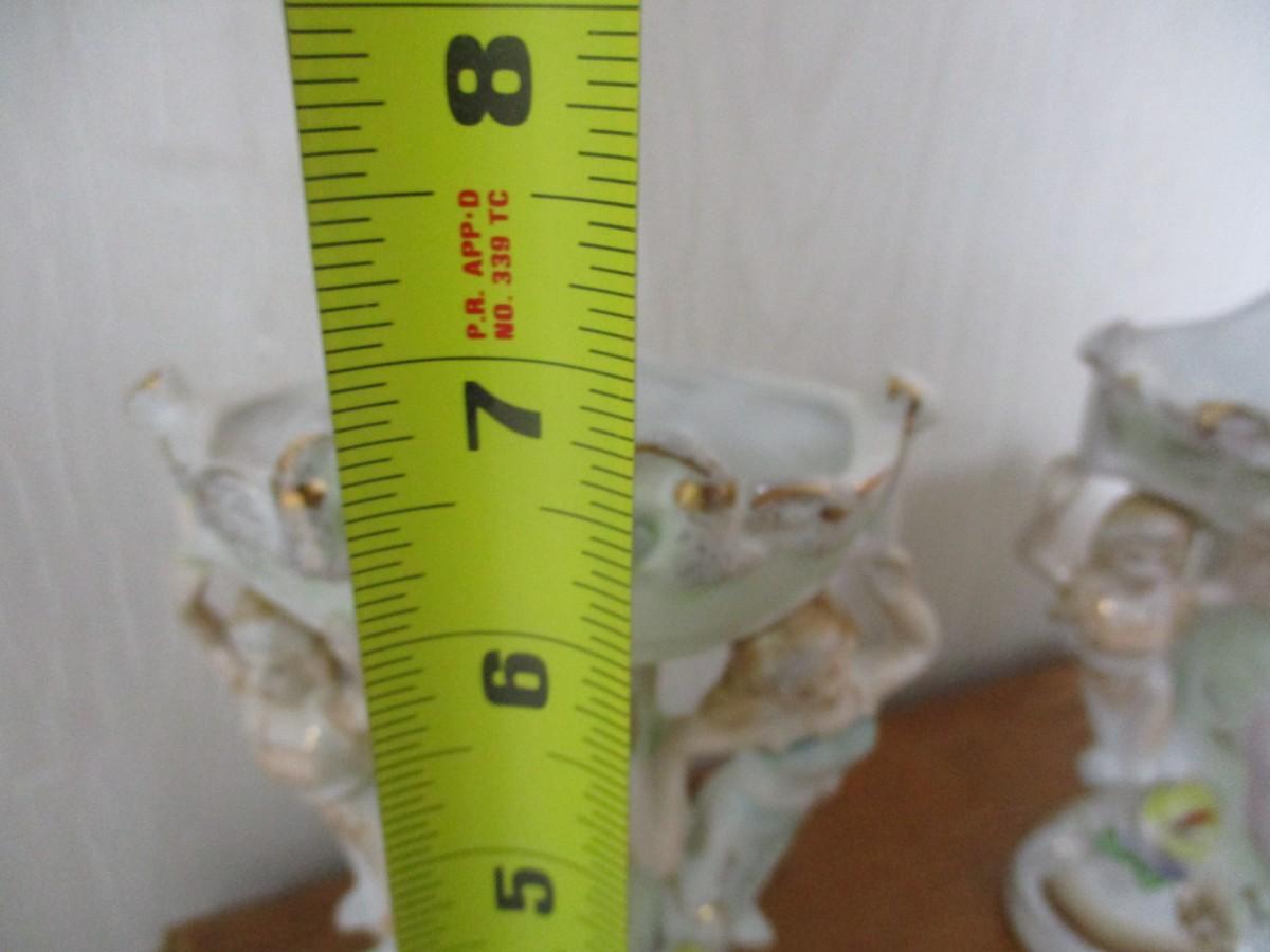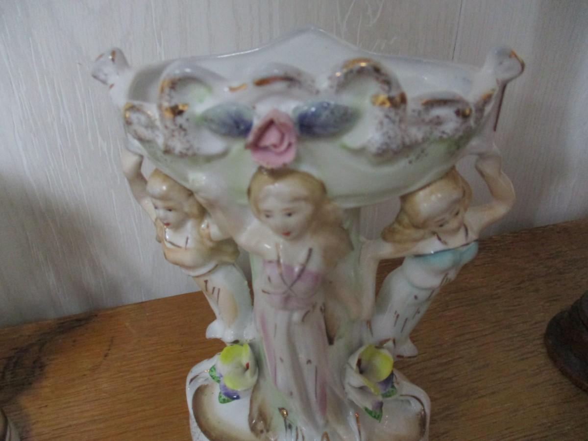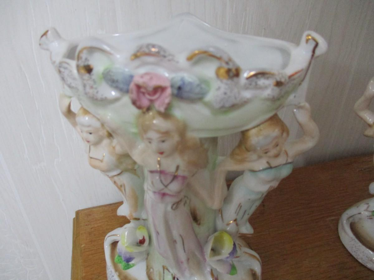 Pair of Vintage Floral Three Ladies Ceramic Vases - H