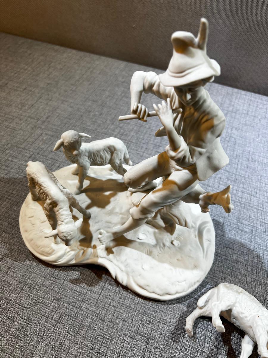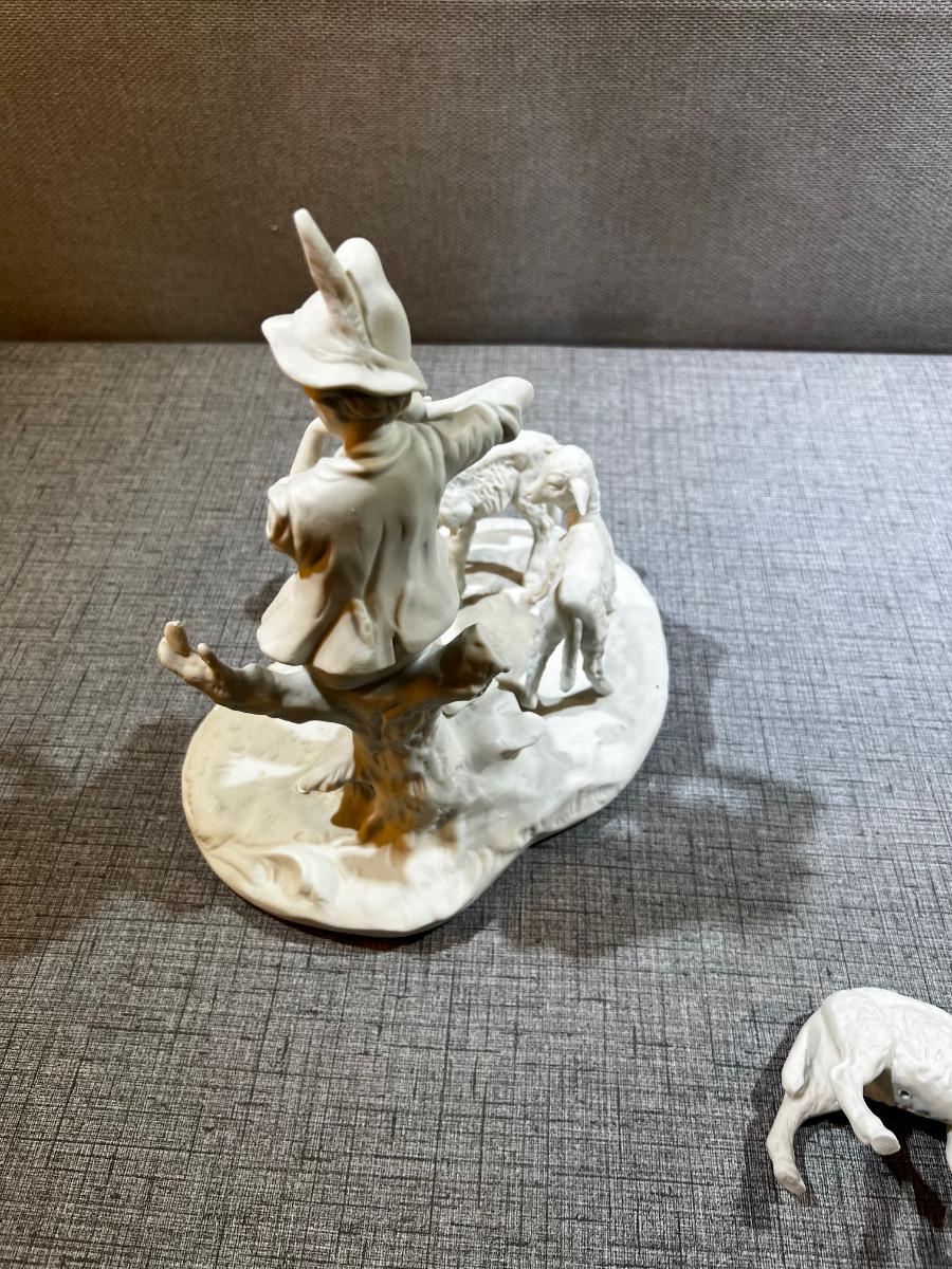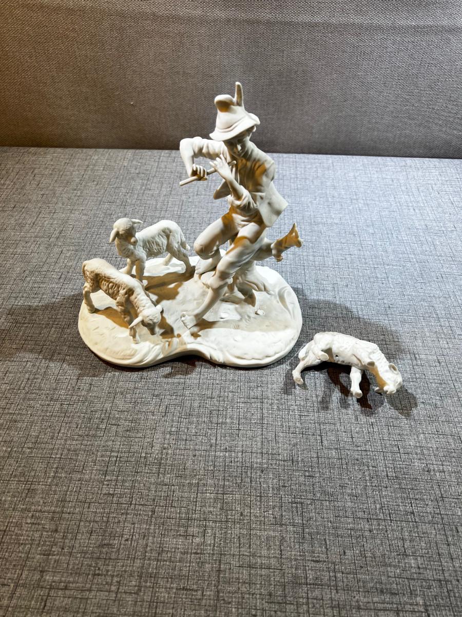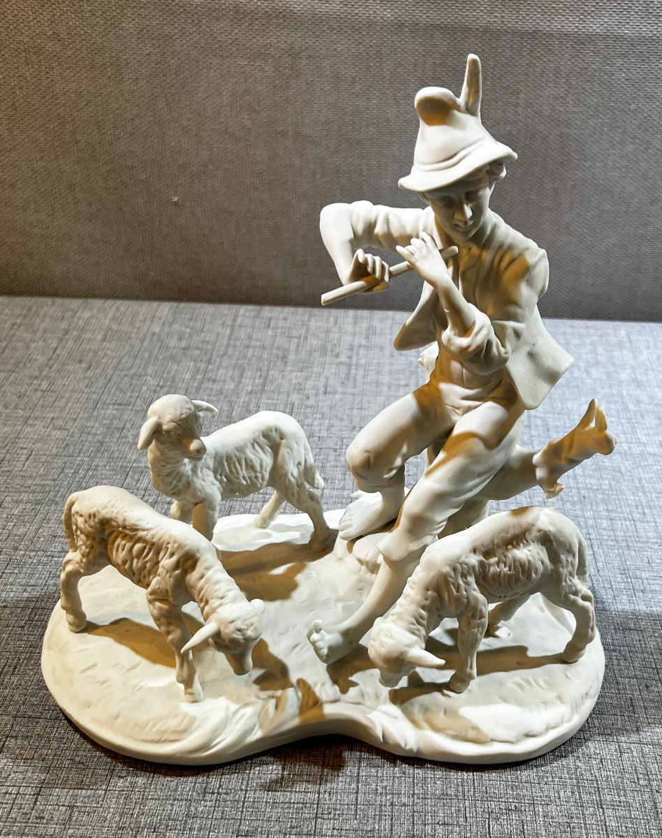 Vintage Florence Ceramics Bisque Shepard with Lamps