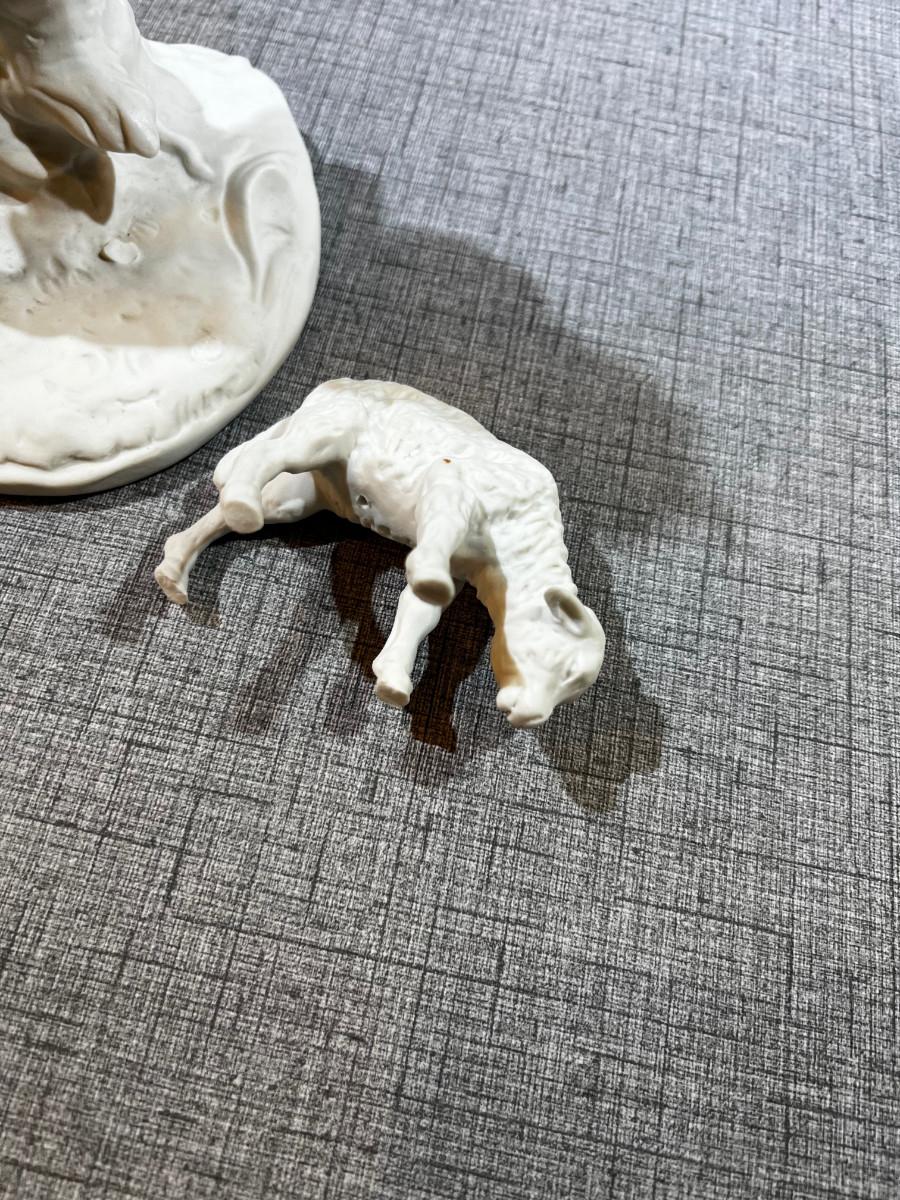 9" Tall One of the Lambs has detached perfectly. So it is "Broken" but could be easily repaired.