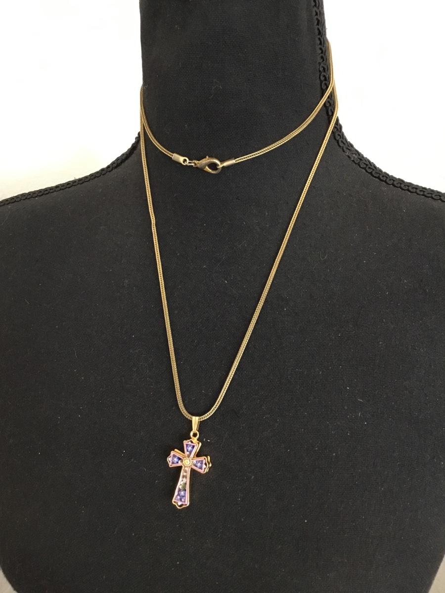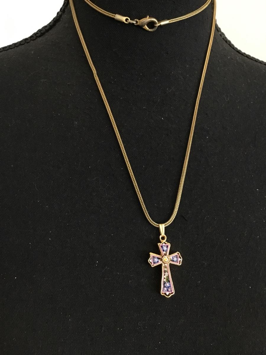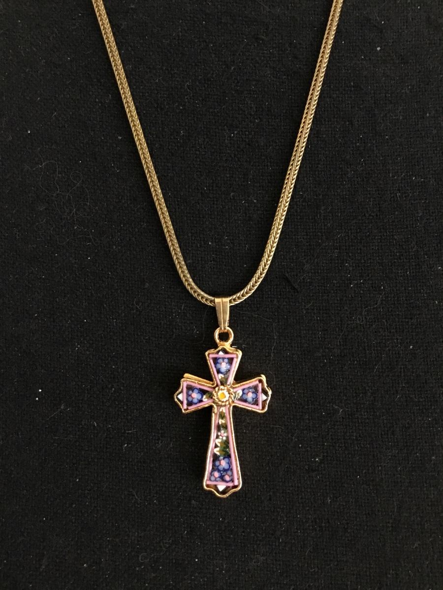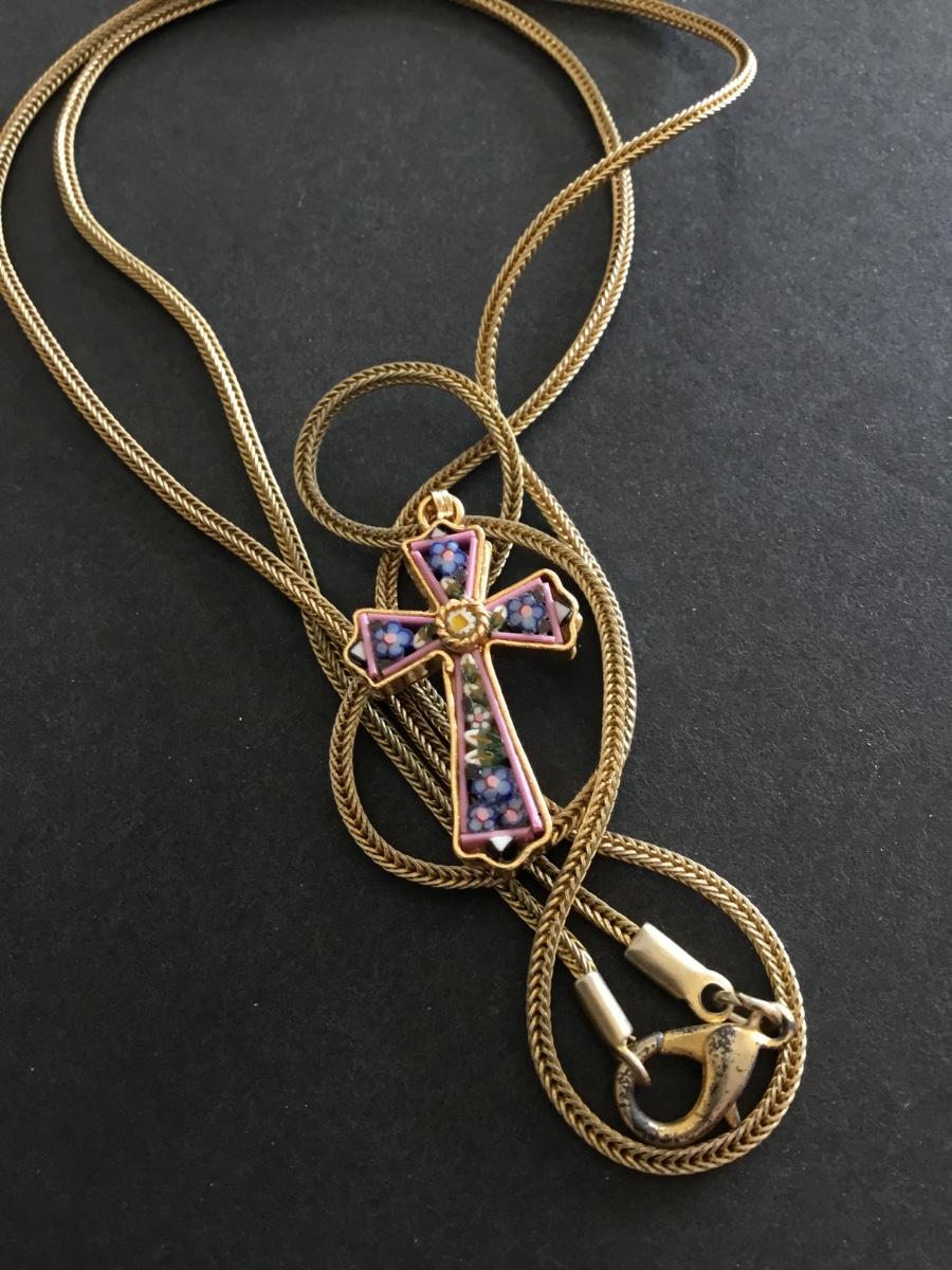 Vintage Florentine glass, Mosaic, cross pendant crafted in Italy
