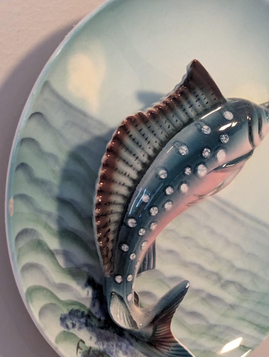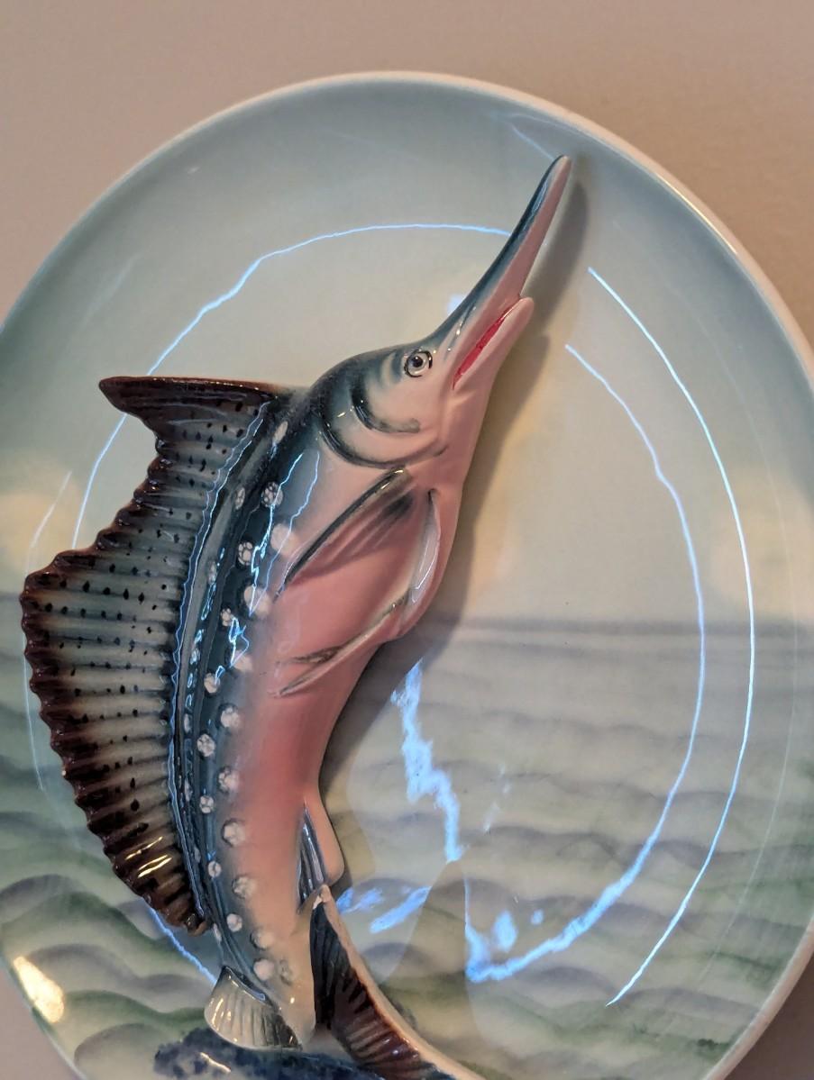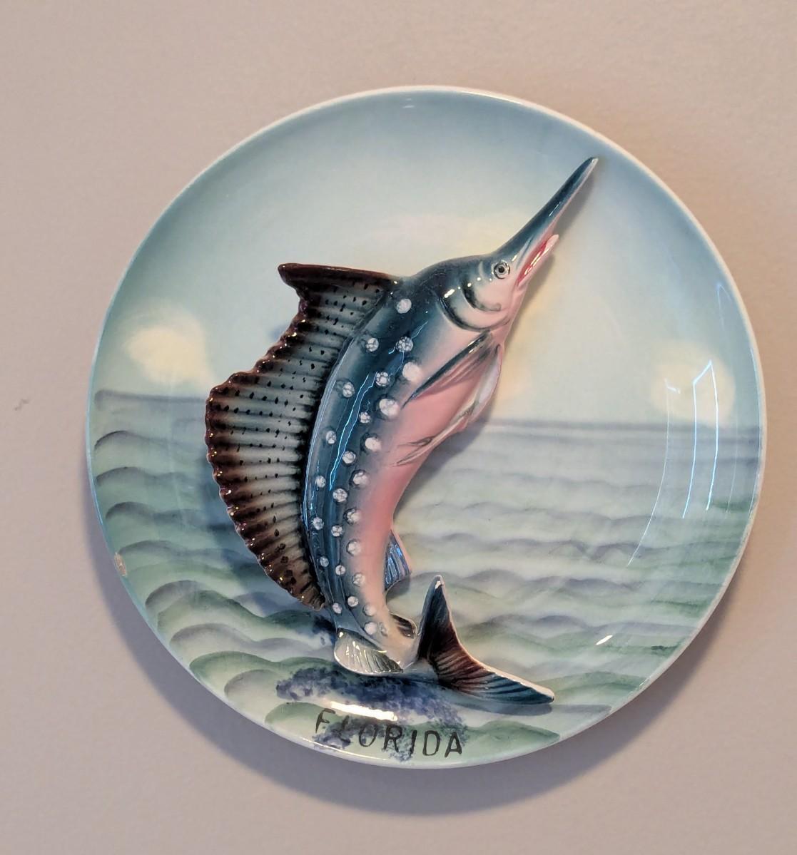 Vintage Florida Sailfish Embossed Raised Pink/Teal Souvenir Plate