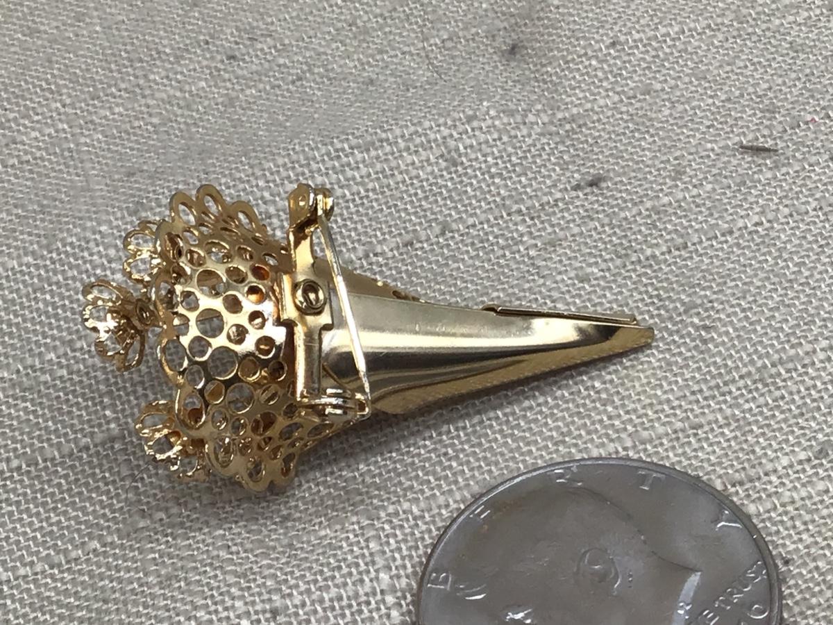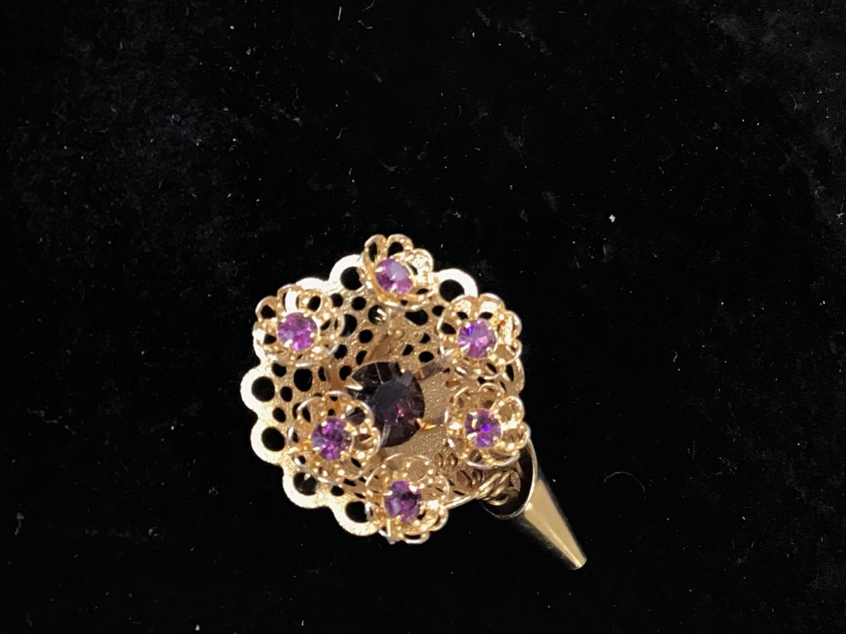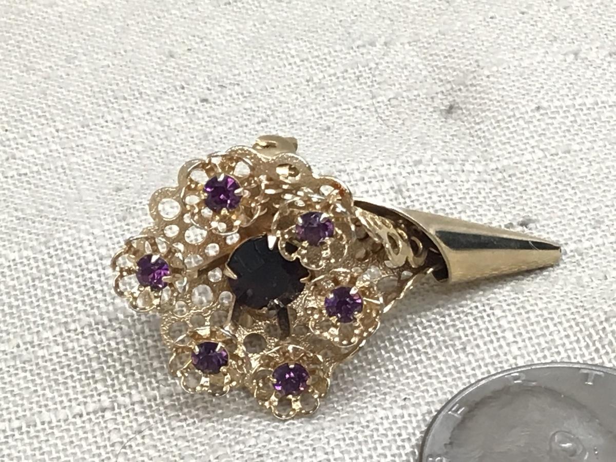 Vintage Flower bouquet Bursting Rhinestone Purple Brooch Pin Gold Tone