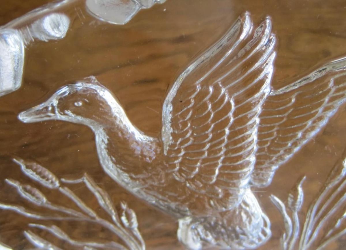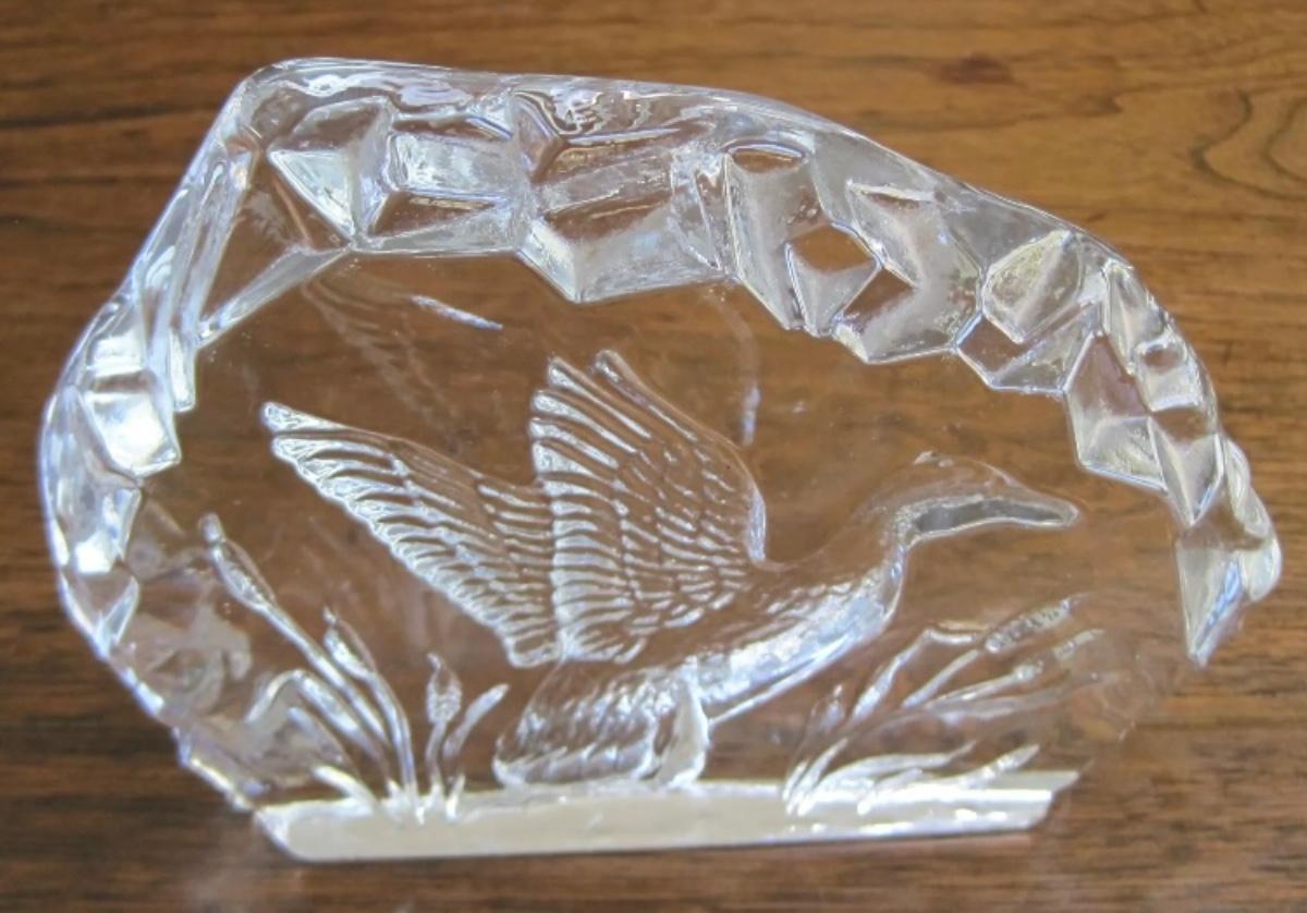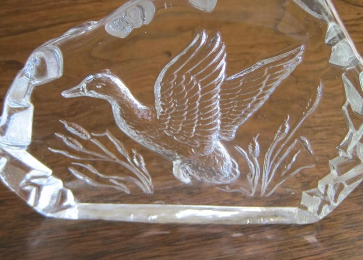 VINTAGE REVERSE ETCHED-SCULPTURED 5" TALL GLASS "FLYING DUCK" FIGURINE-DISPLAY