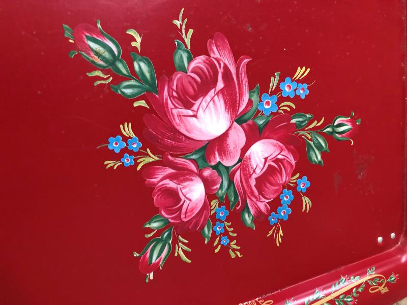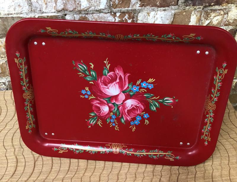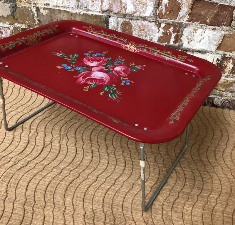 Here is a vintage breakfast bed tray...folding...floral...circa 1950's...Measures 18" x 13"...Good used condition..