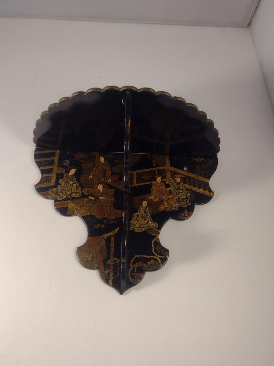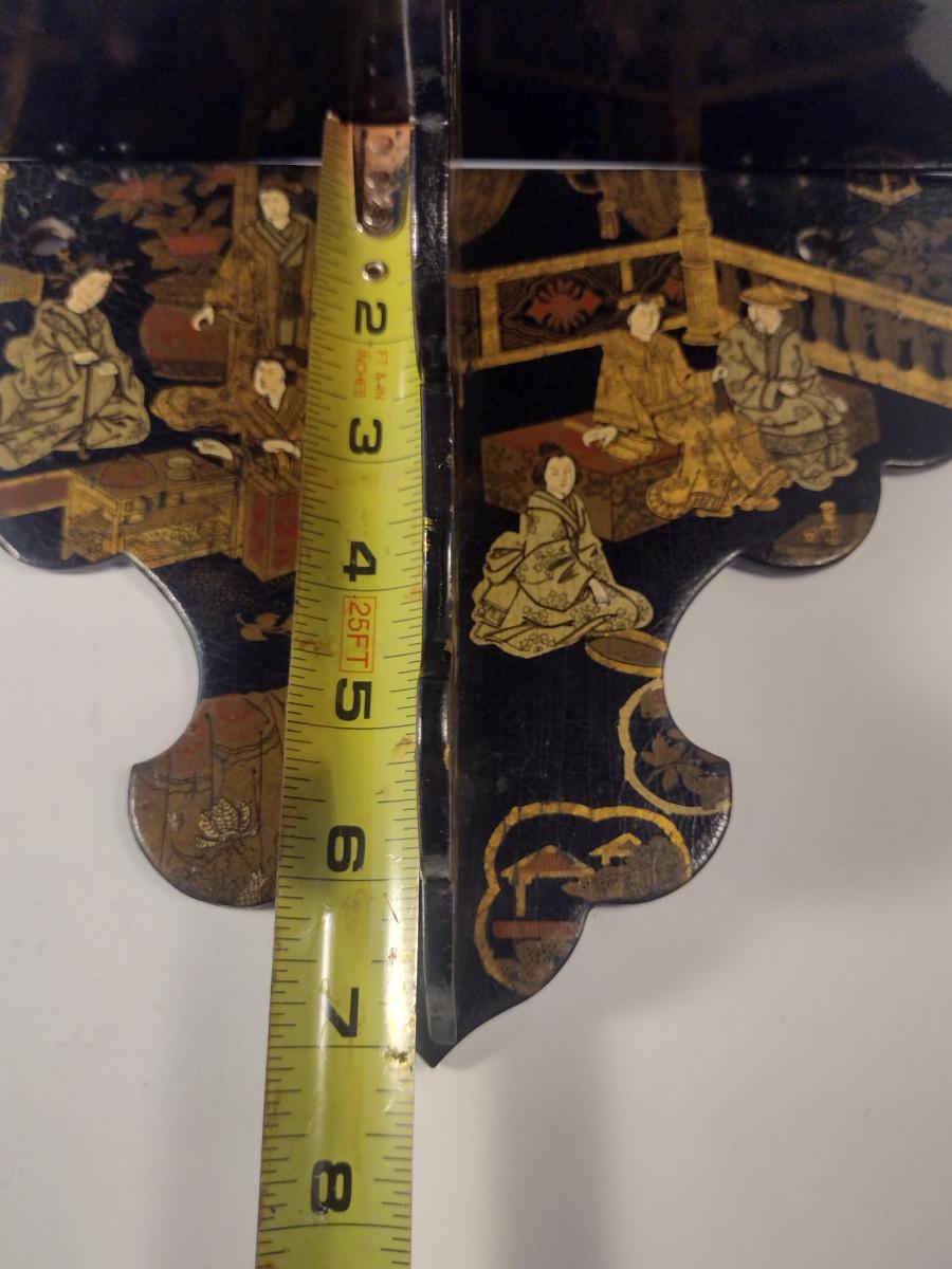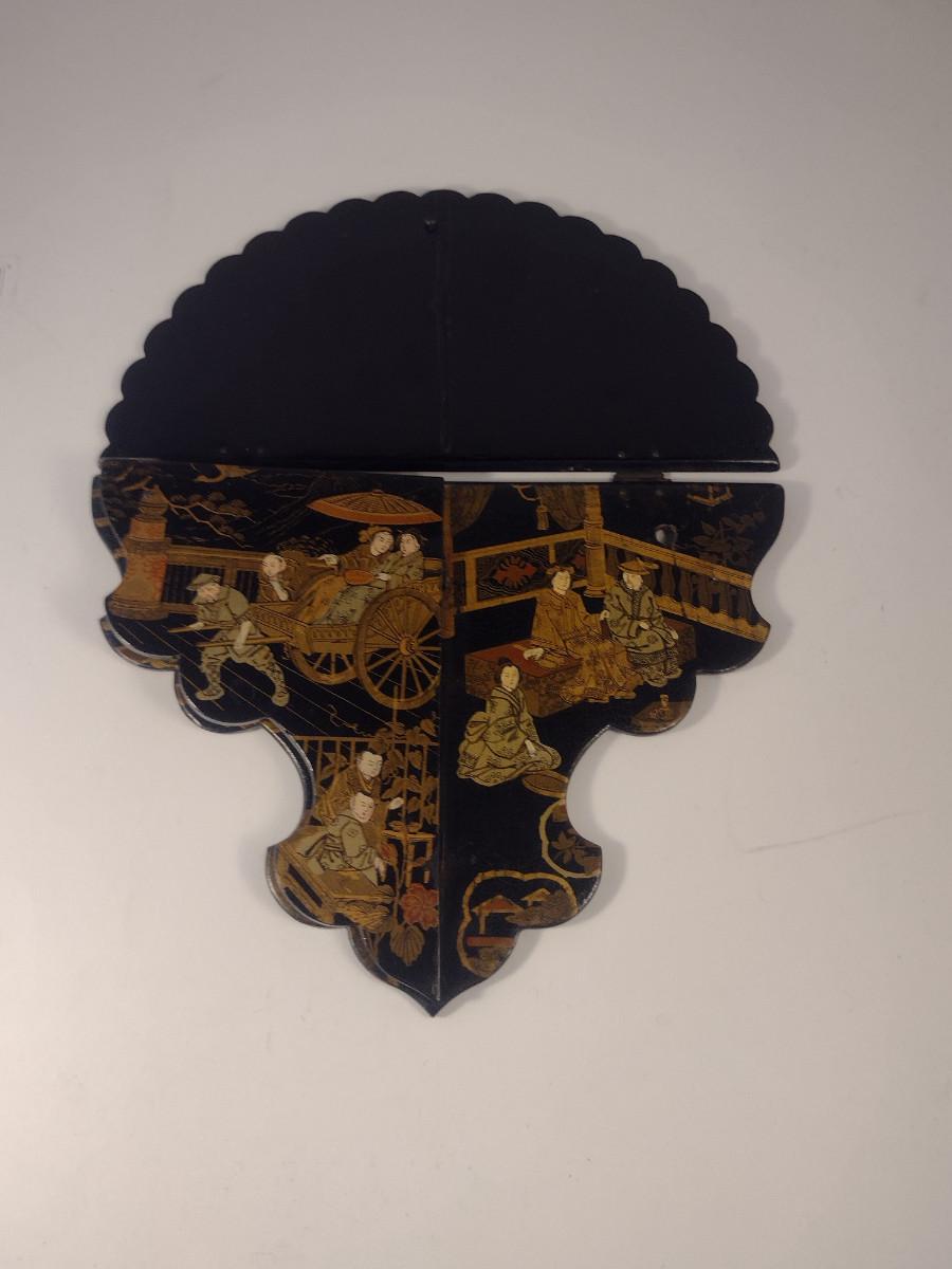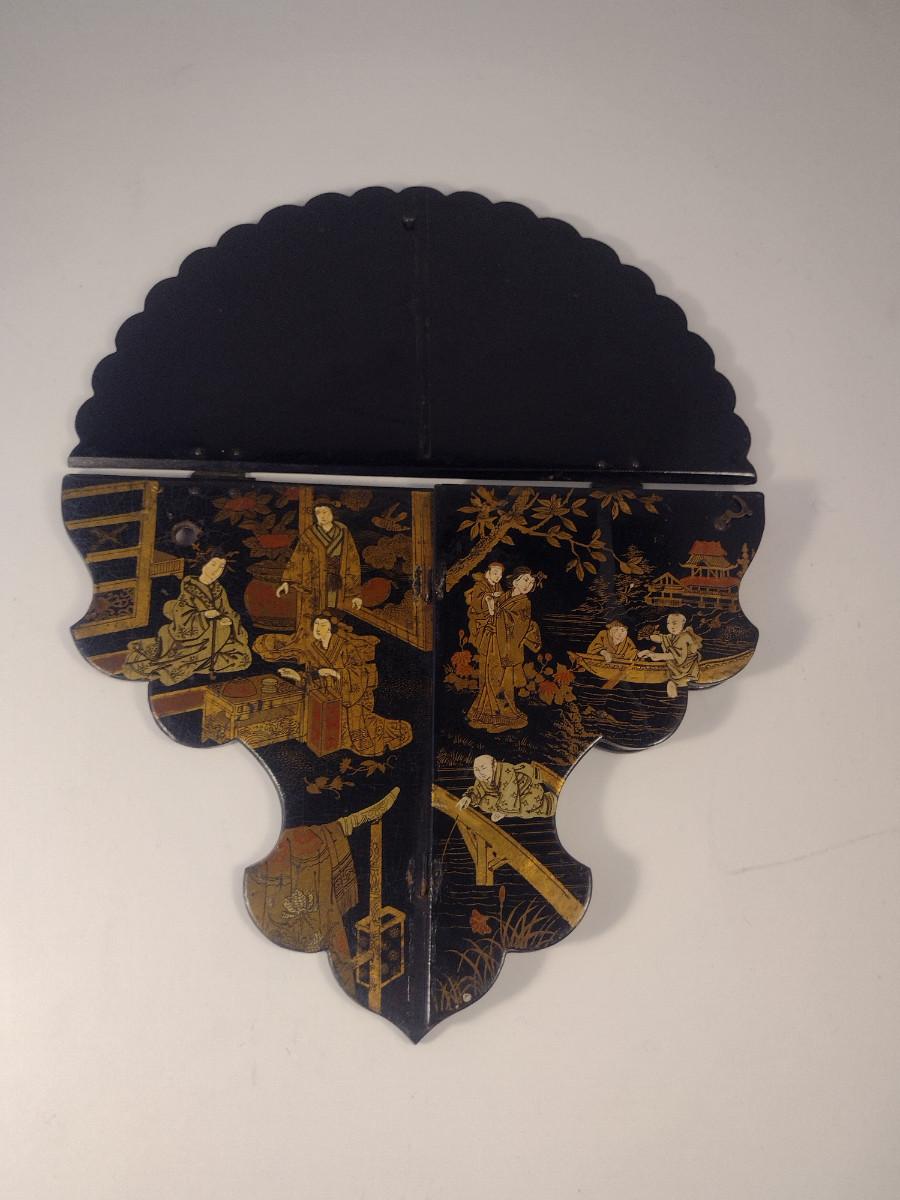 Vintage Folding Chinoiserie Lacquered Wall Shelf with Painted Chinese Design- Approx 9 3/4" Wide