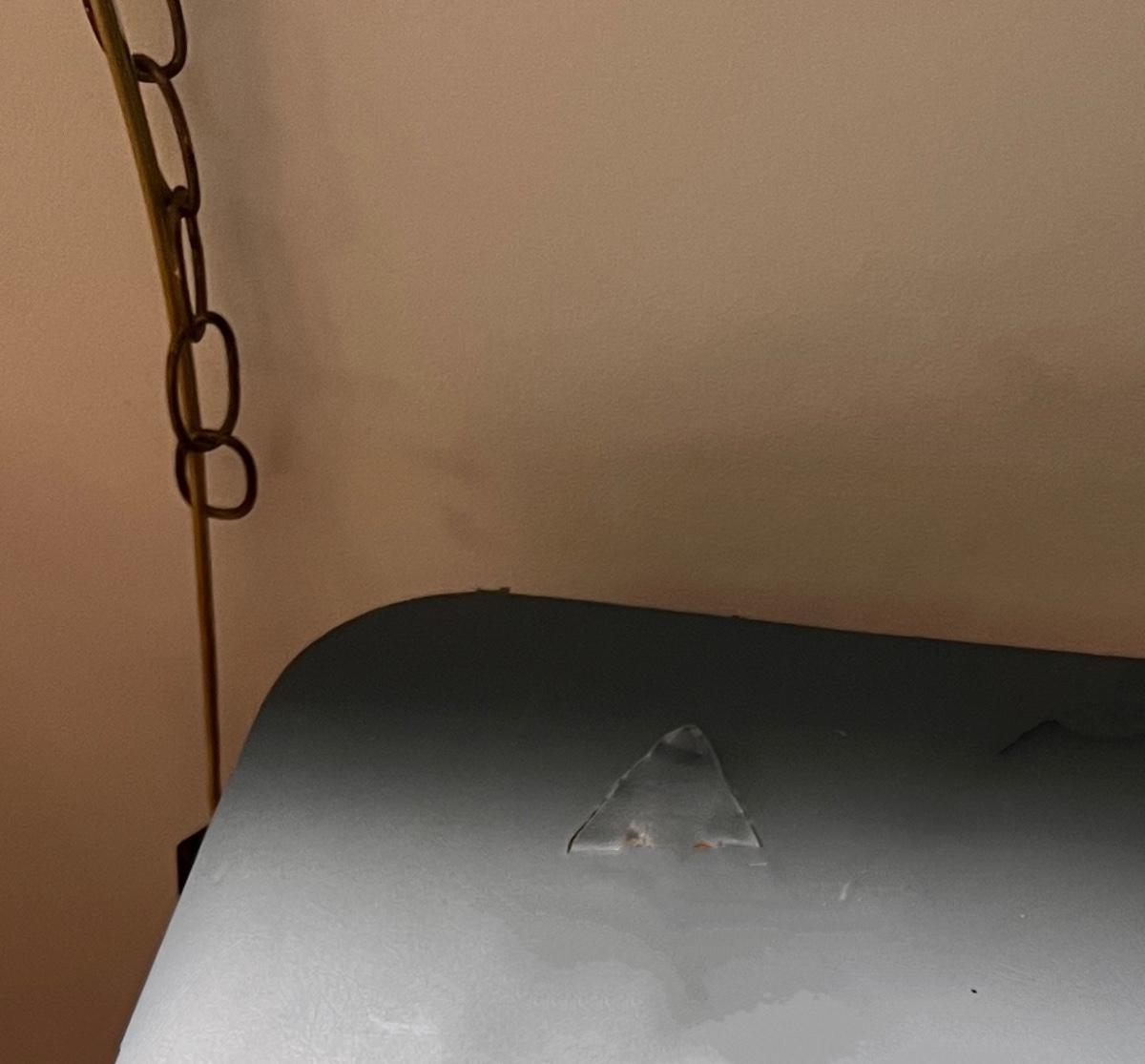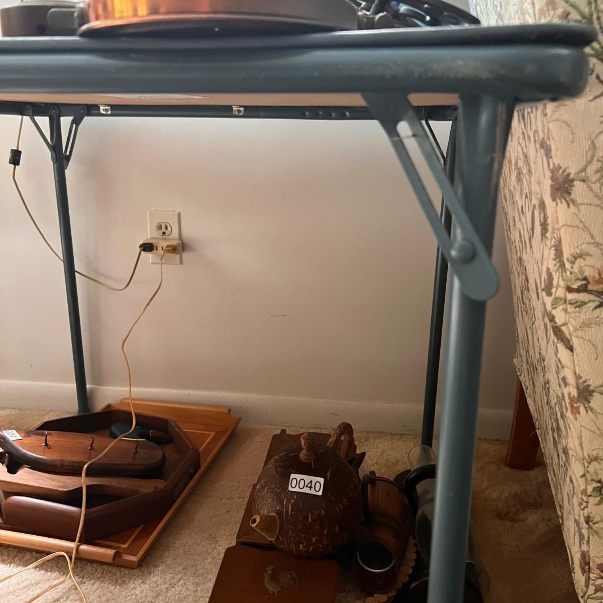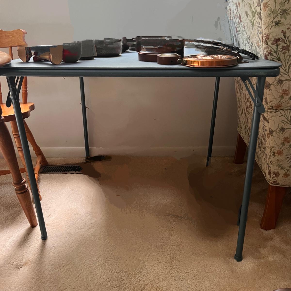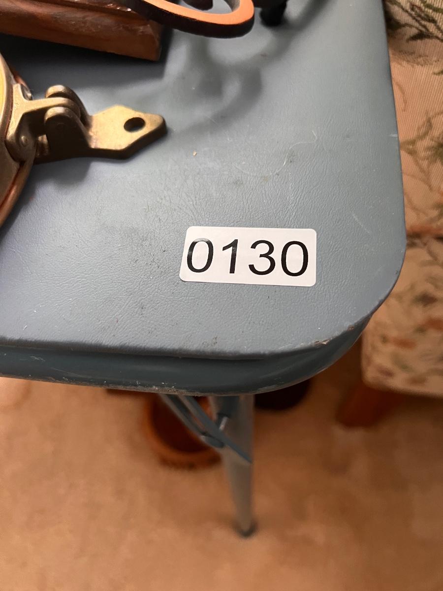 We have another of the same table for auction #118. This is for the table only. Metal frame. Tear in vinyl on corner shown in pic.