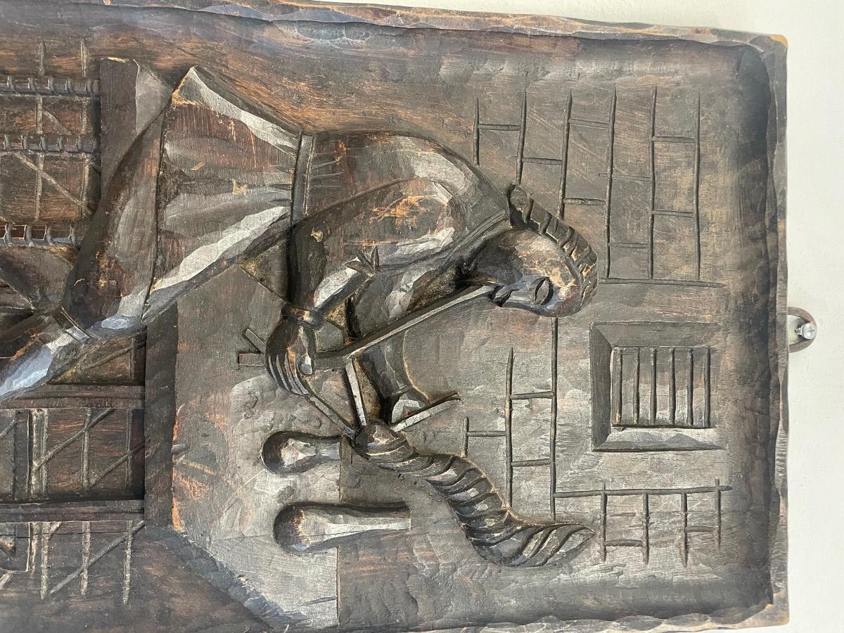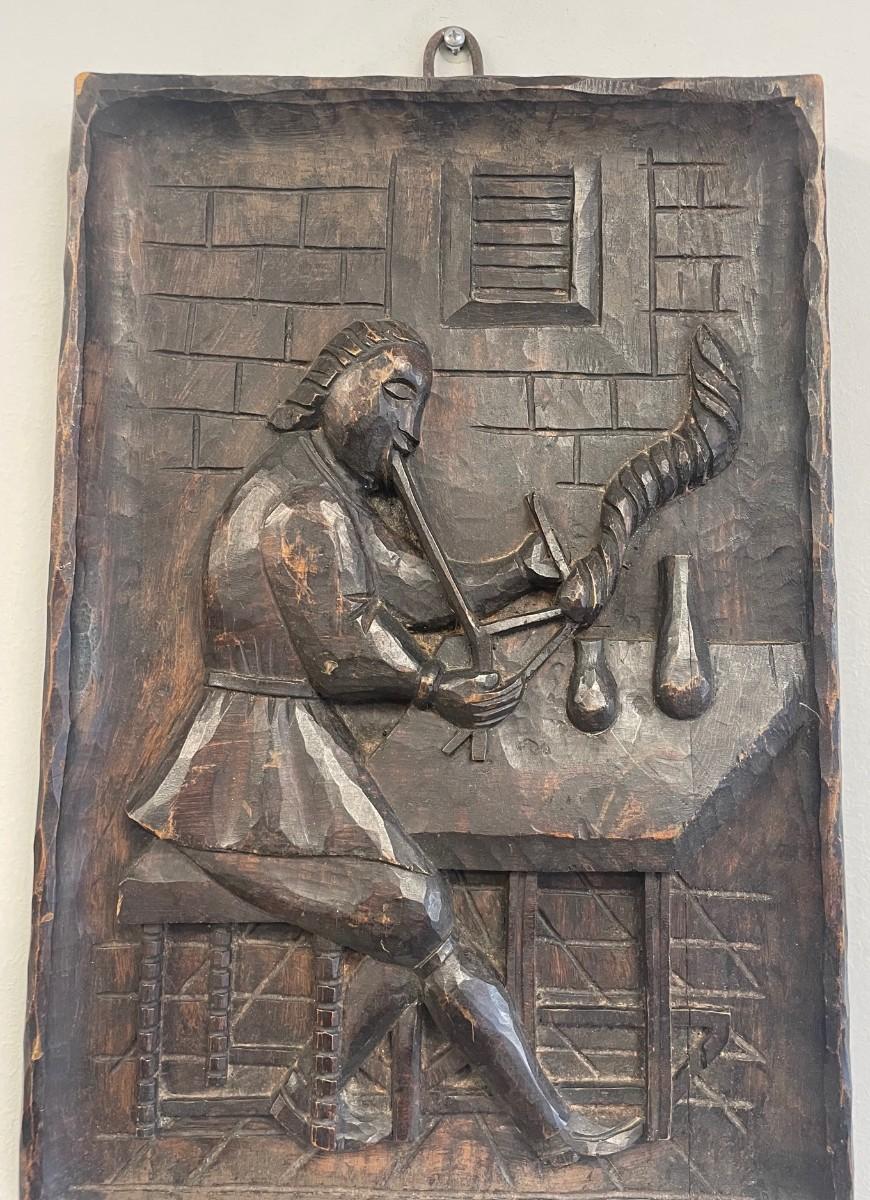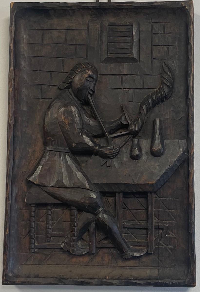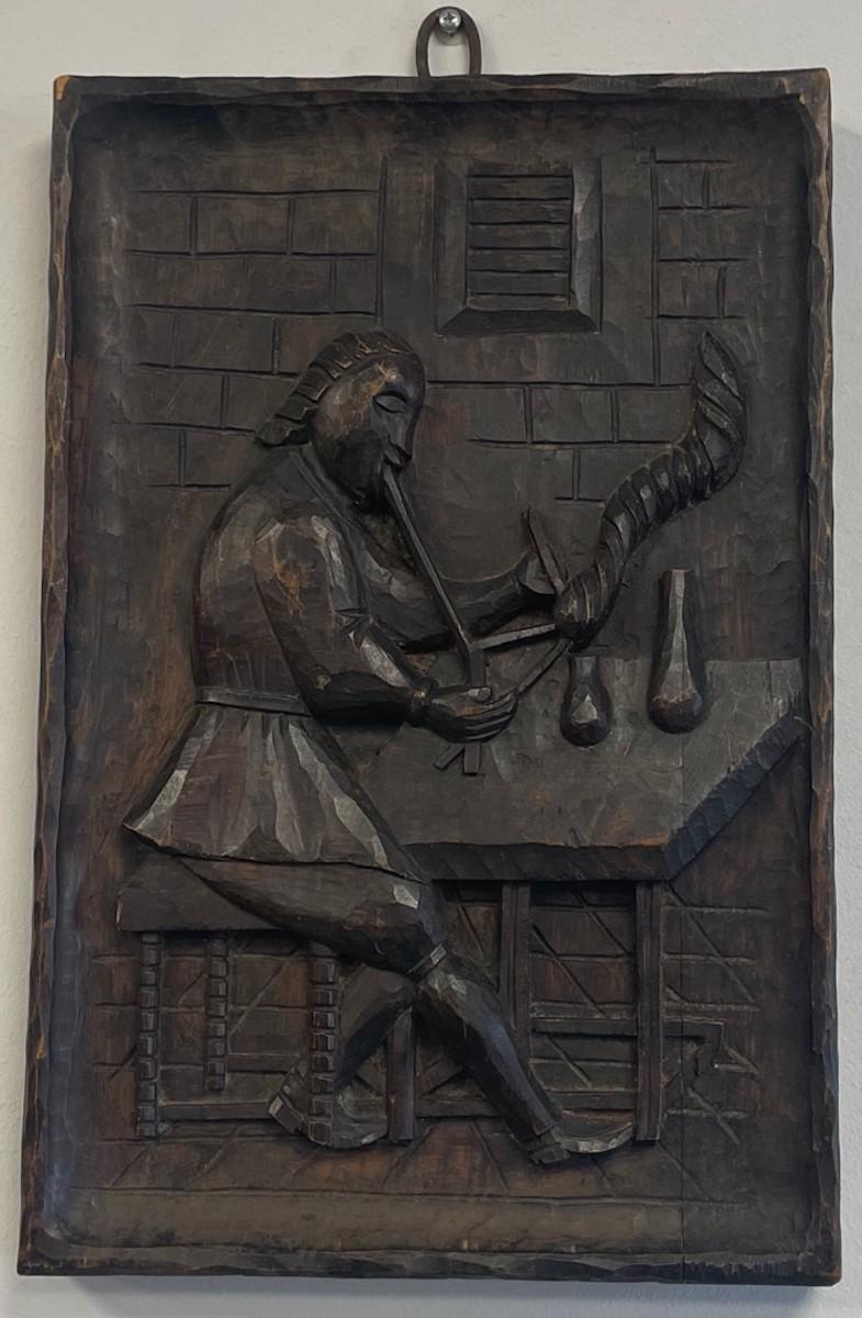 Vintage Folk Art Carved plaque 3D Medieval scribe