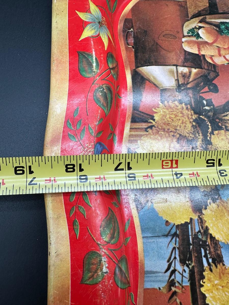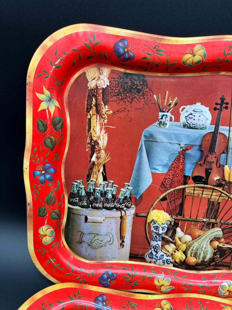 Vintage Folk Art Still Life Metal Serving Trays – Pair (Mid-Century Style)