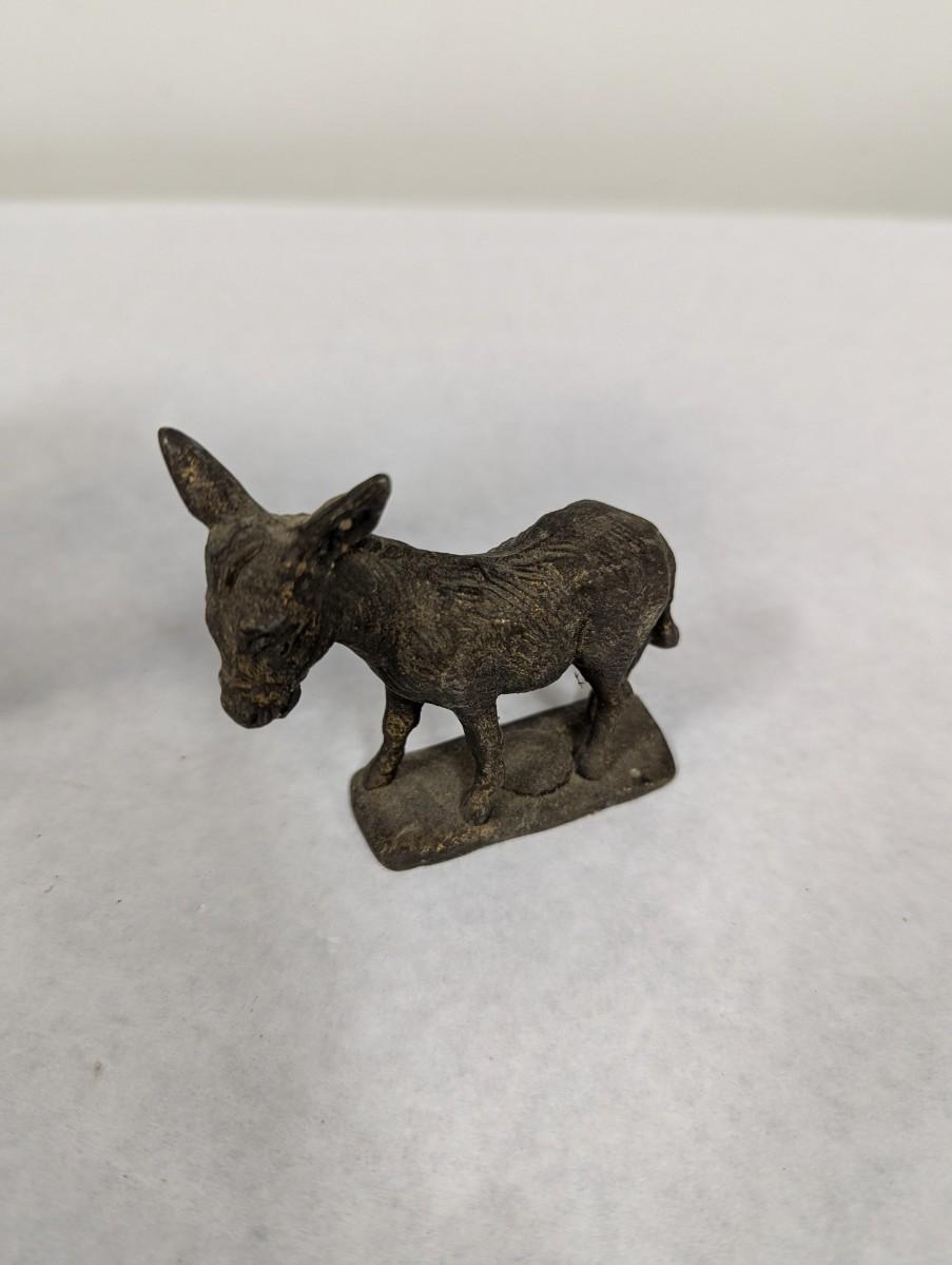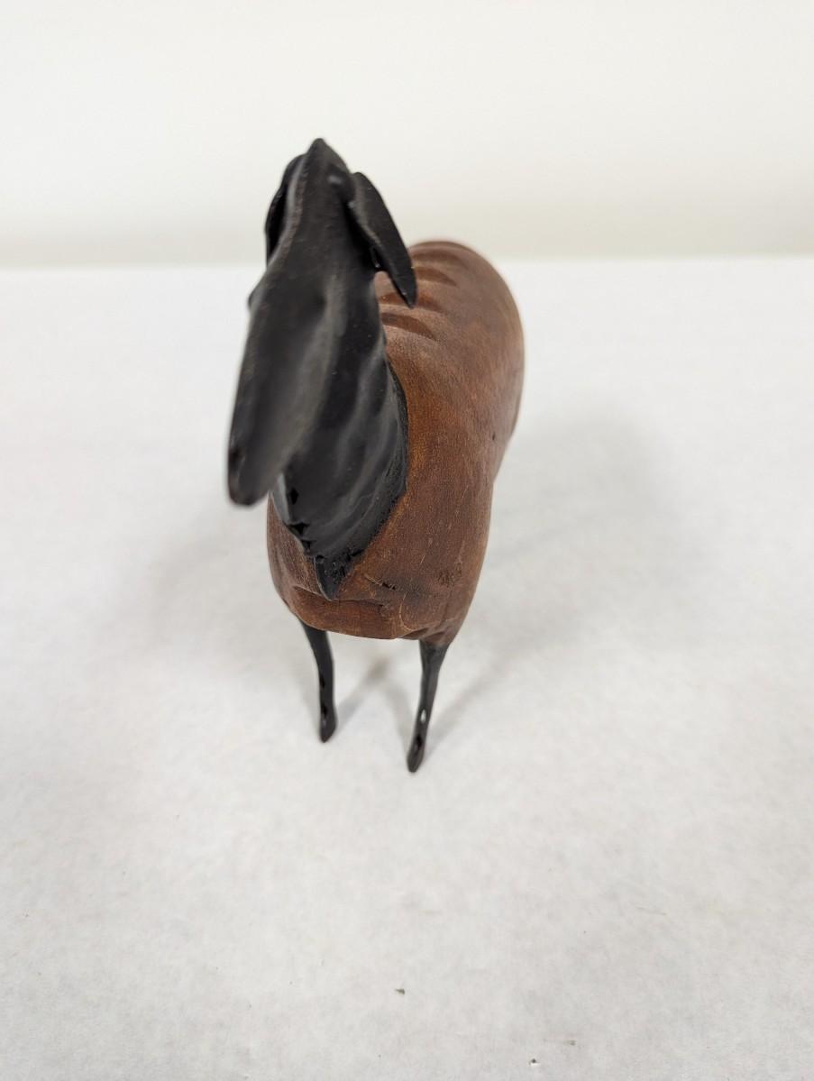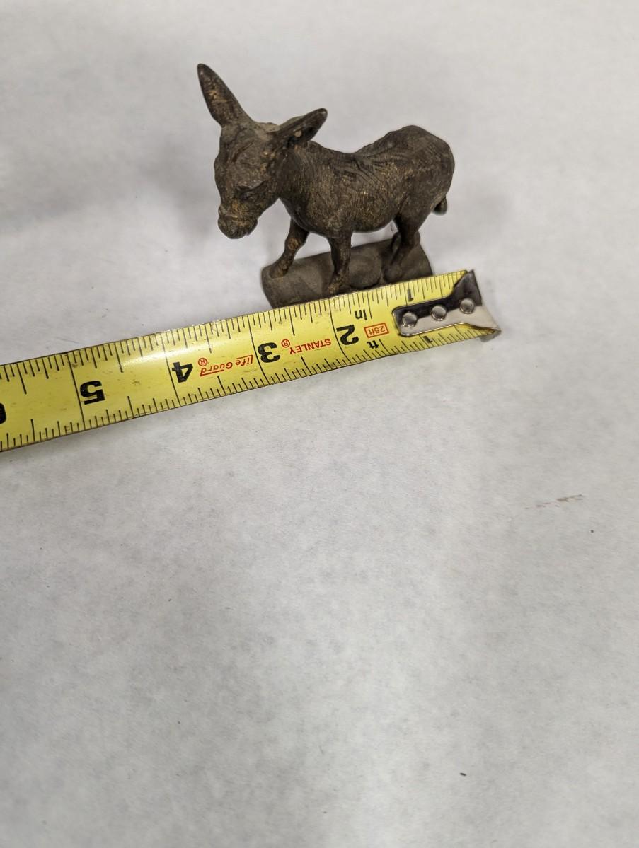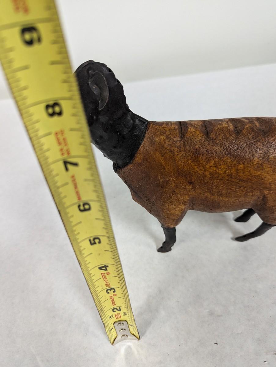 Vintage Folk Art Wood Carved Sheep With Metal & Brass Donkey