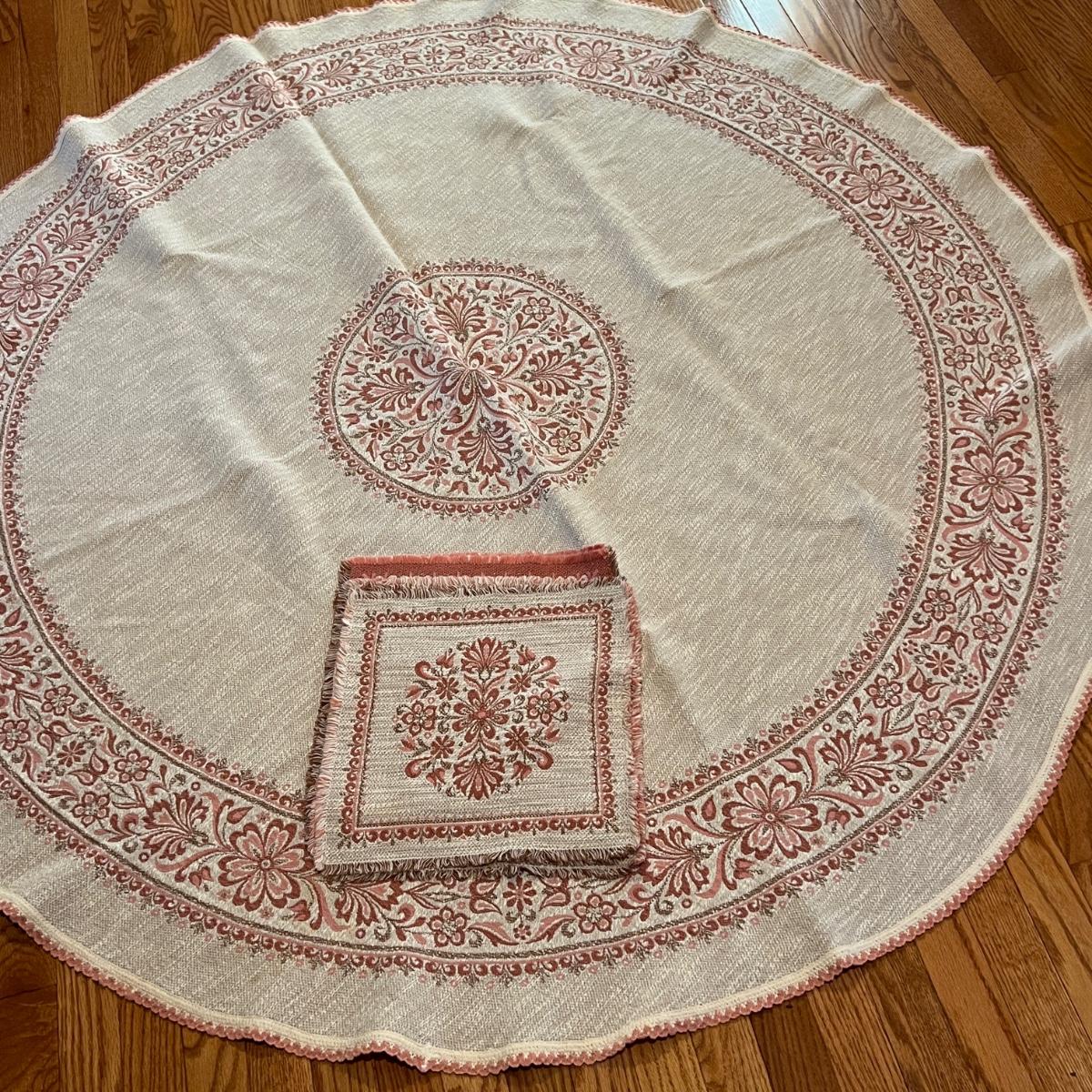 Vintage Austrian Halltex Woven Reversible Folk Tablecloth & Napkins