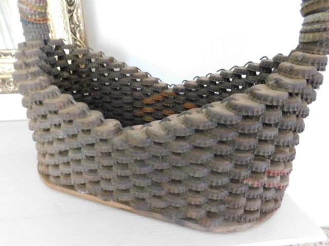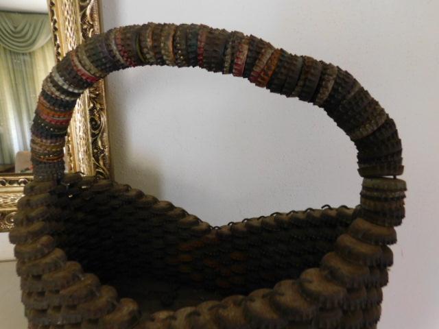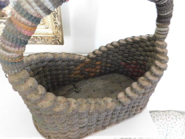 Vintage Folkart Soda Pop Bottle Cap Basket 13"