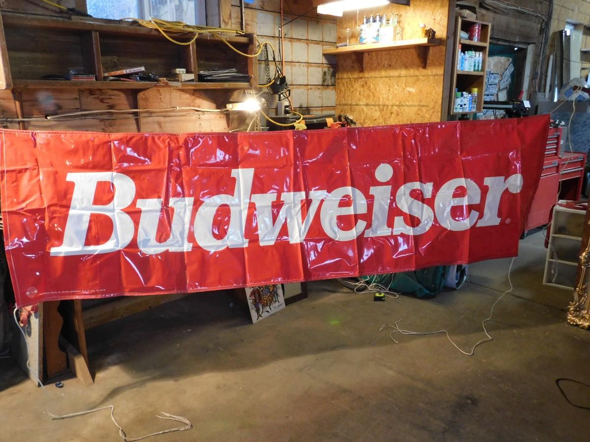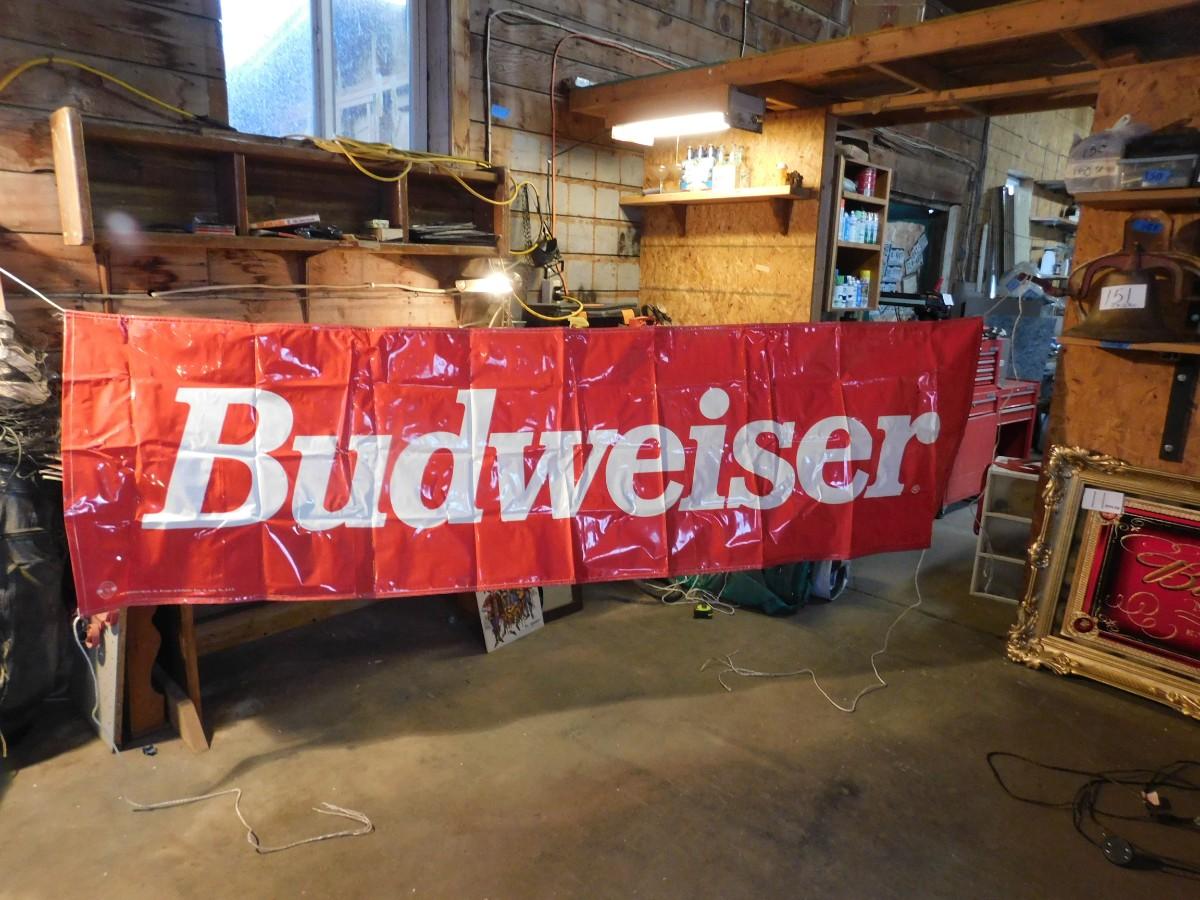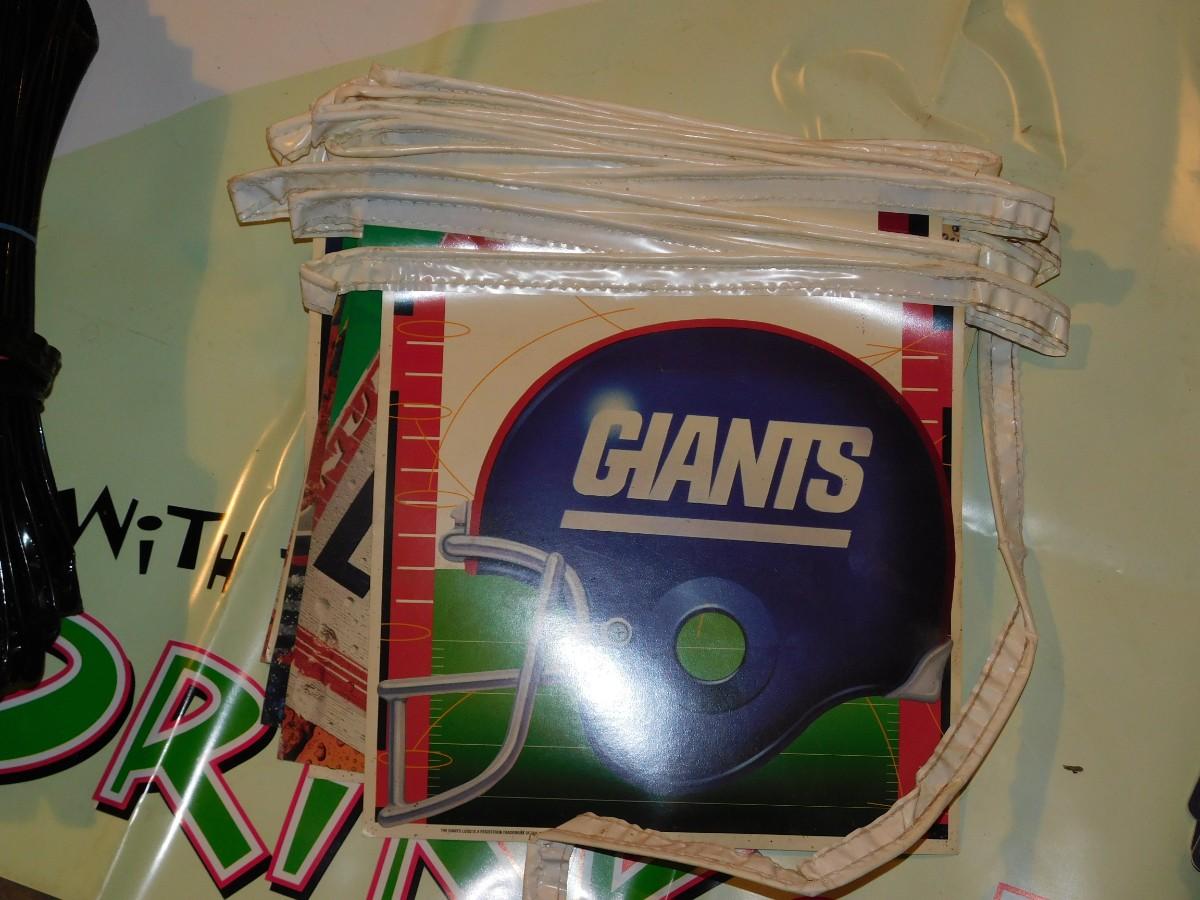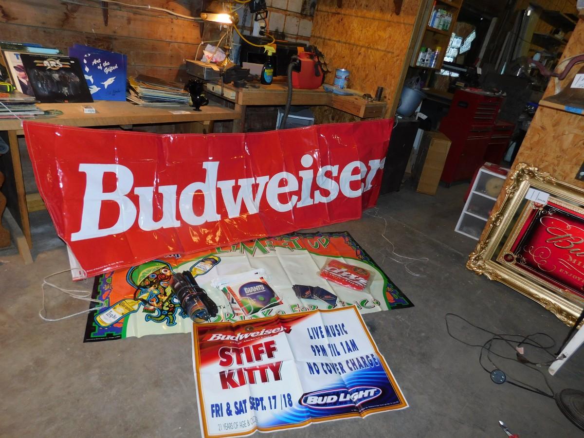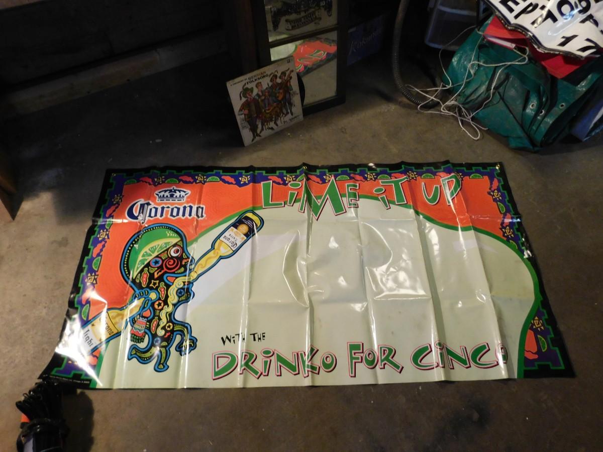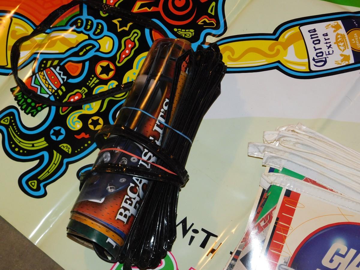 WHITE STREAMER IS MISSING COWBOYS AND JAGUARS. THE HELMETS MEASURE ABOUT 11-1/2" WIDE. THE BUD BANNER IN 112" X 36" AND THE CORONA BANNER IS 68" X 34"