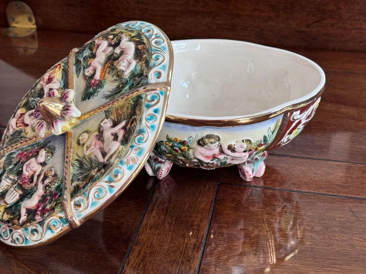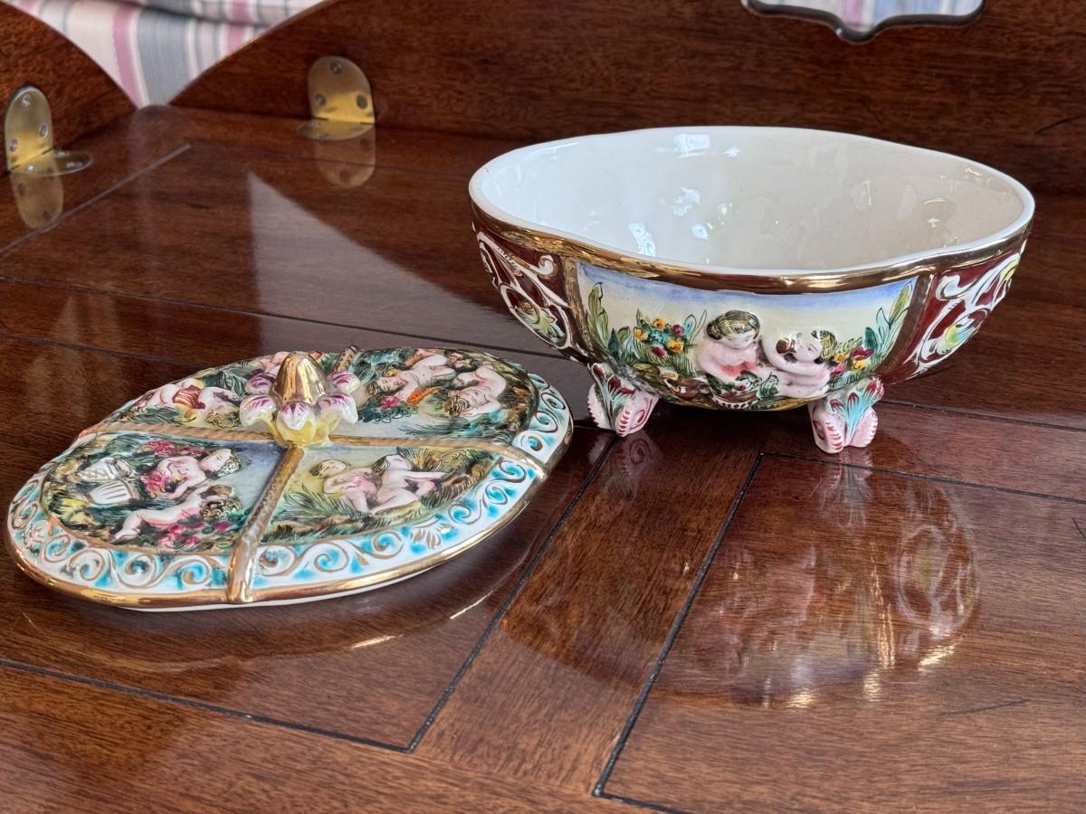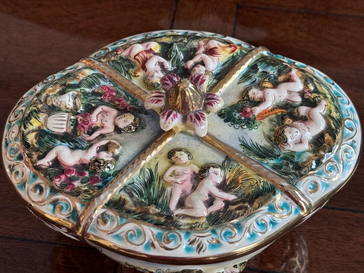 Vintage Footed Capodimonte Candy Dish w/ Lid No. 3161 Italy