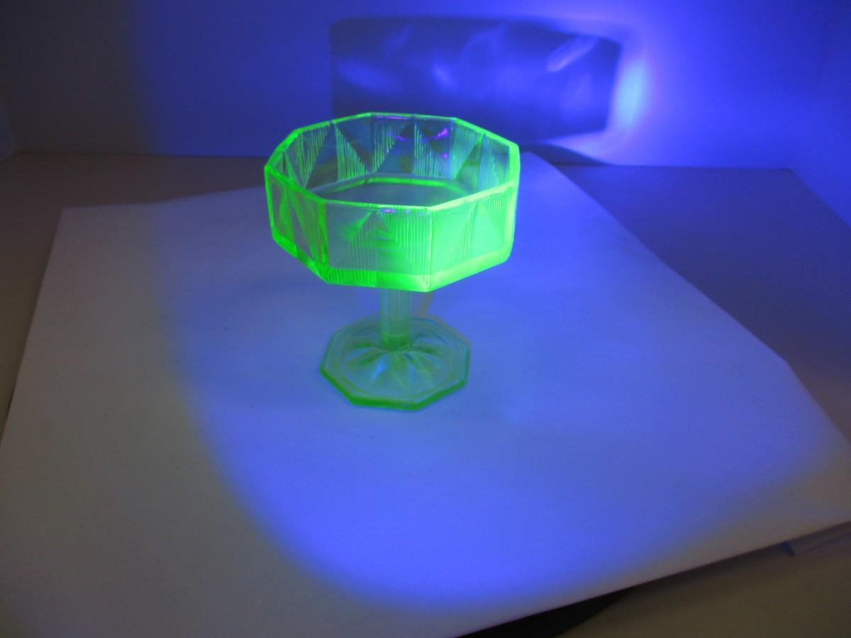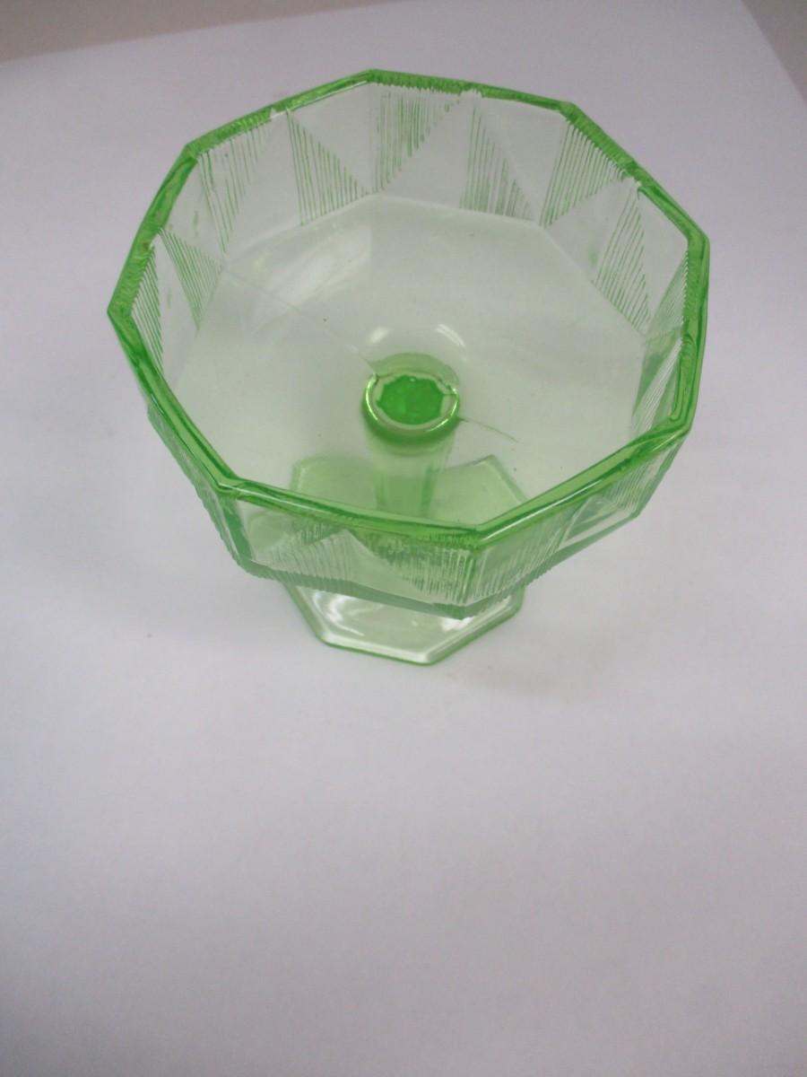 Vintage Footed Sherbert Glass Optic Octagon Design Depression Uranium Glass