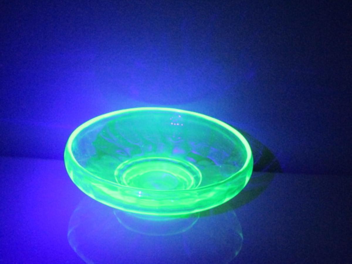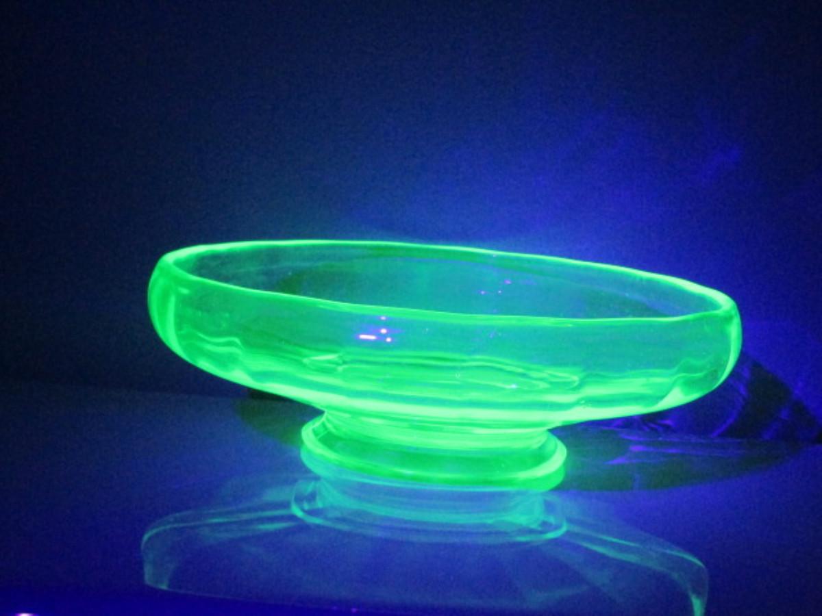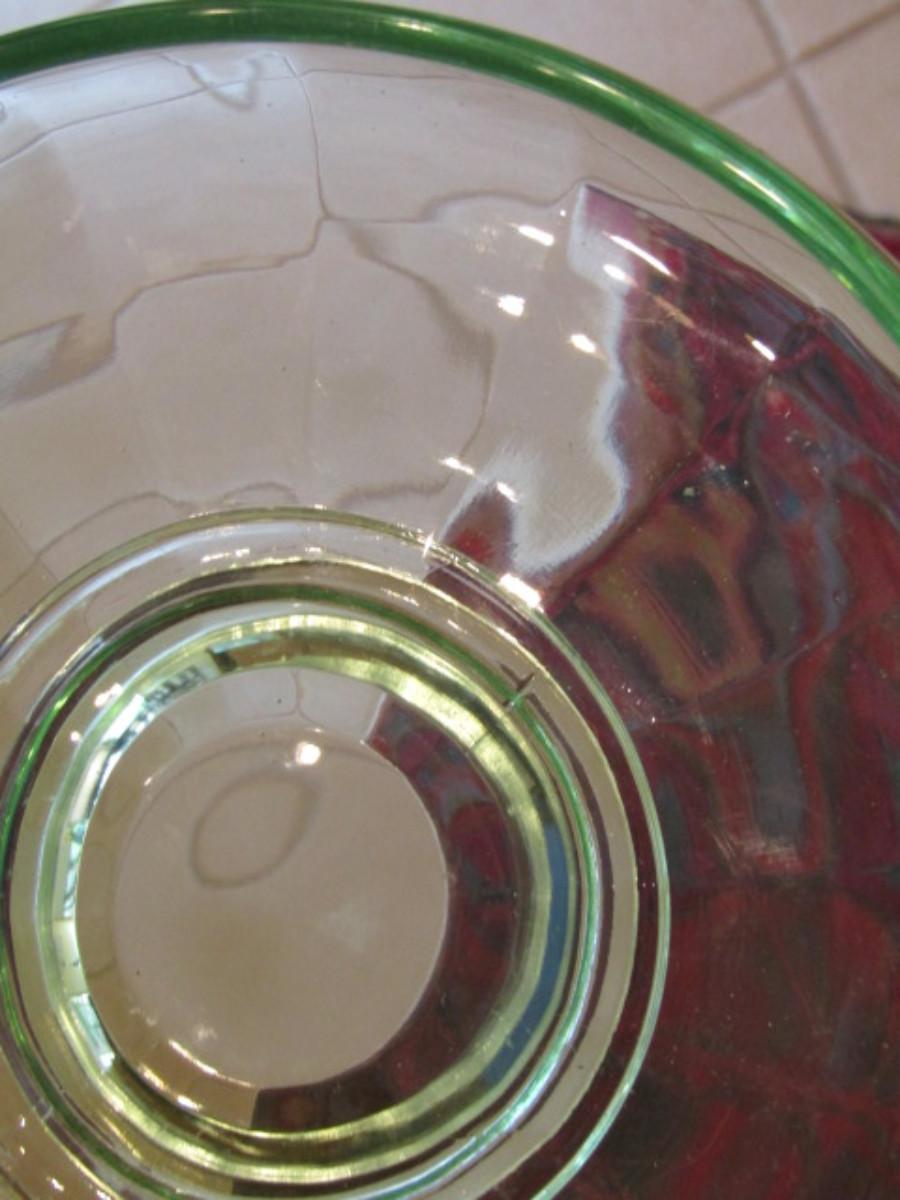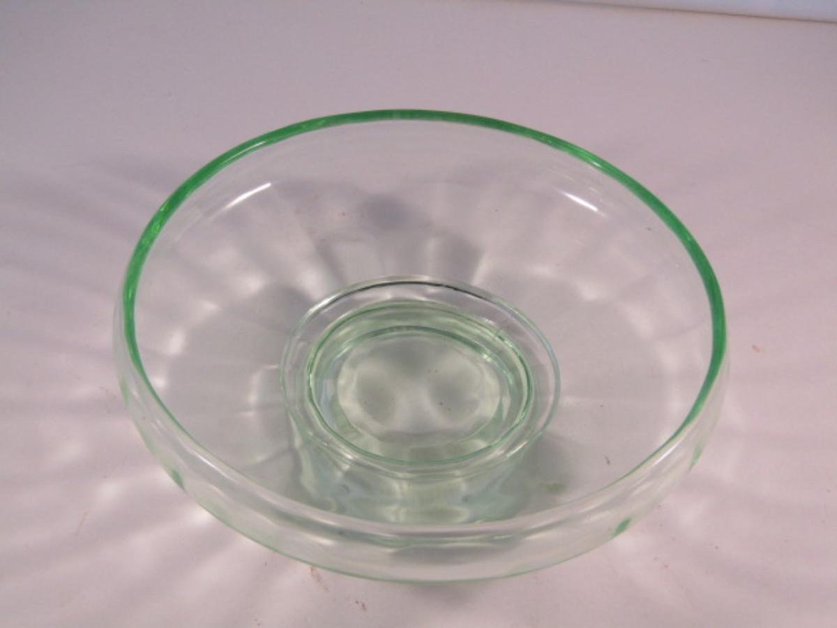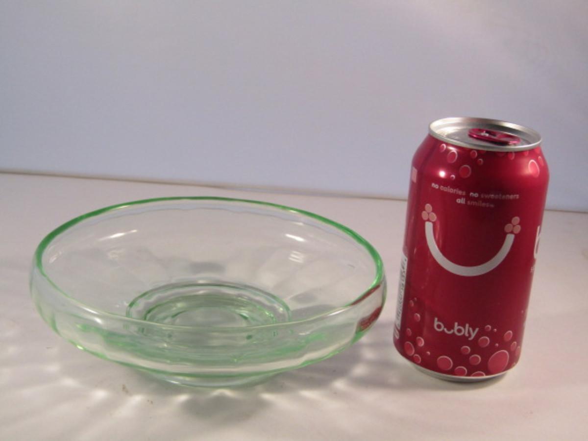 Vintage Footed Uranium Glass Bowl- Optic Facet- Approx 6 3/4" in Diameter