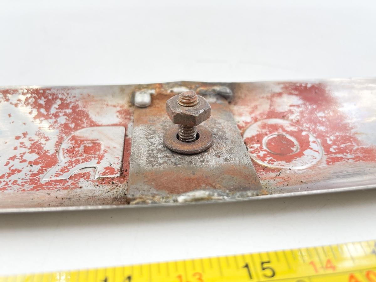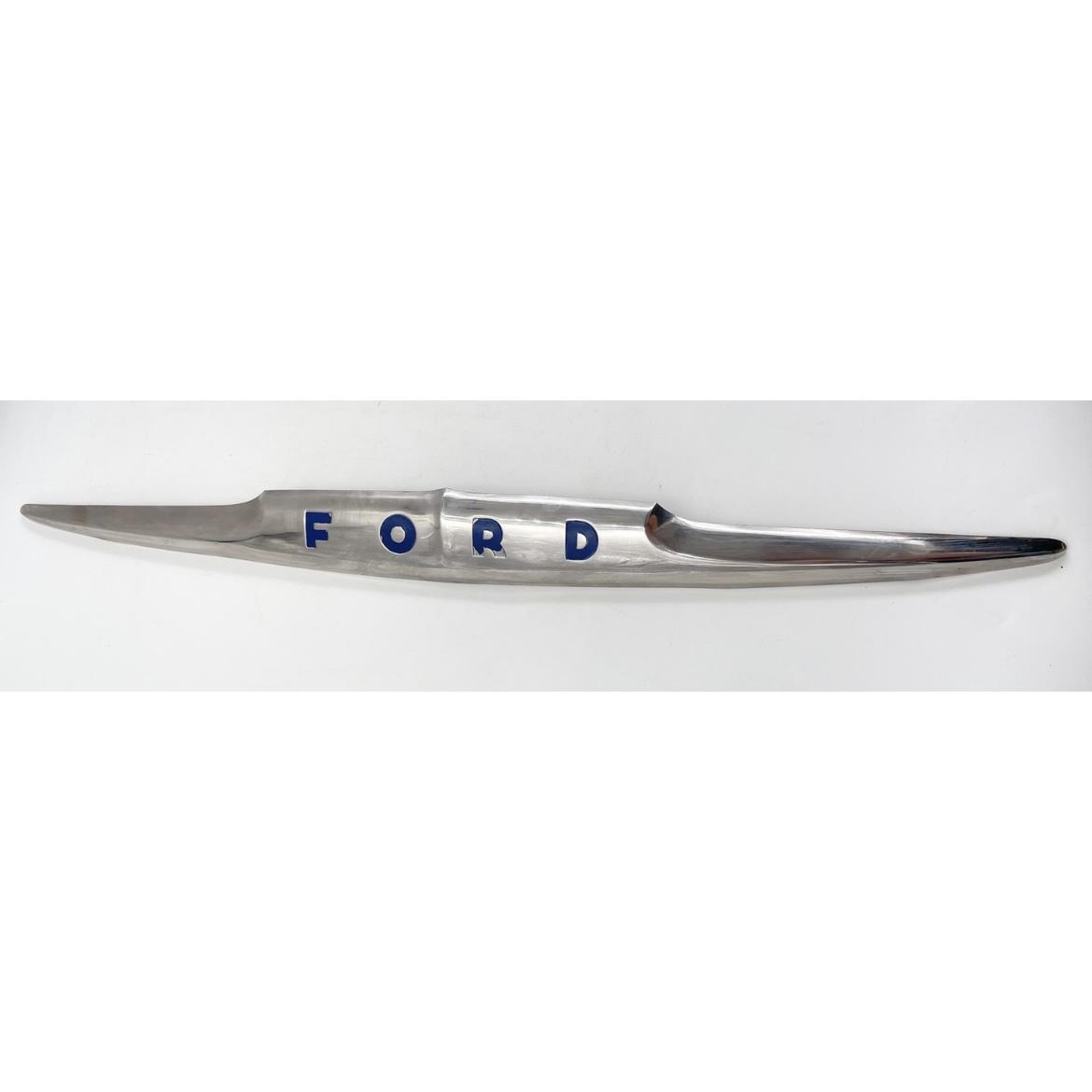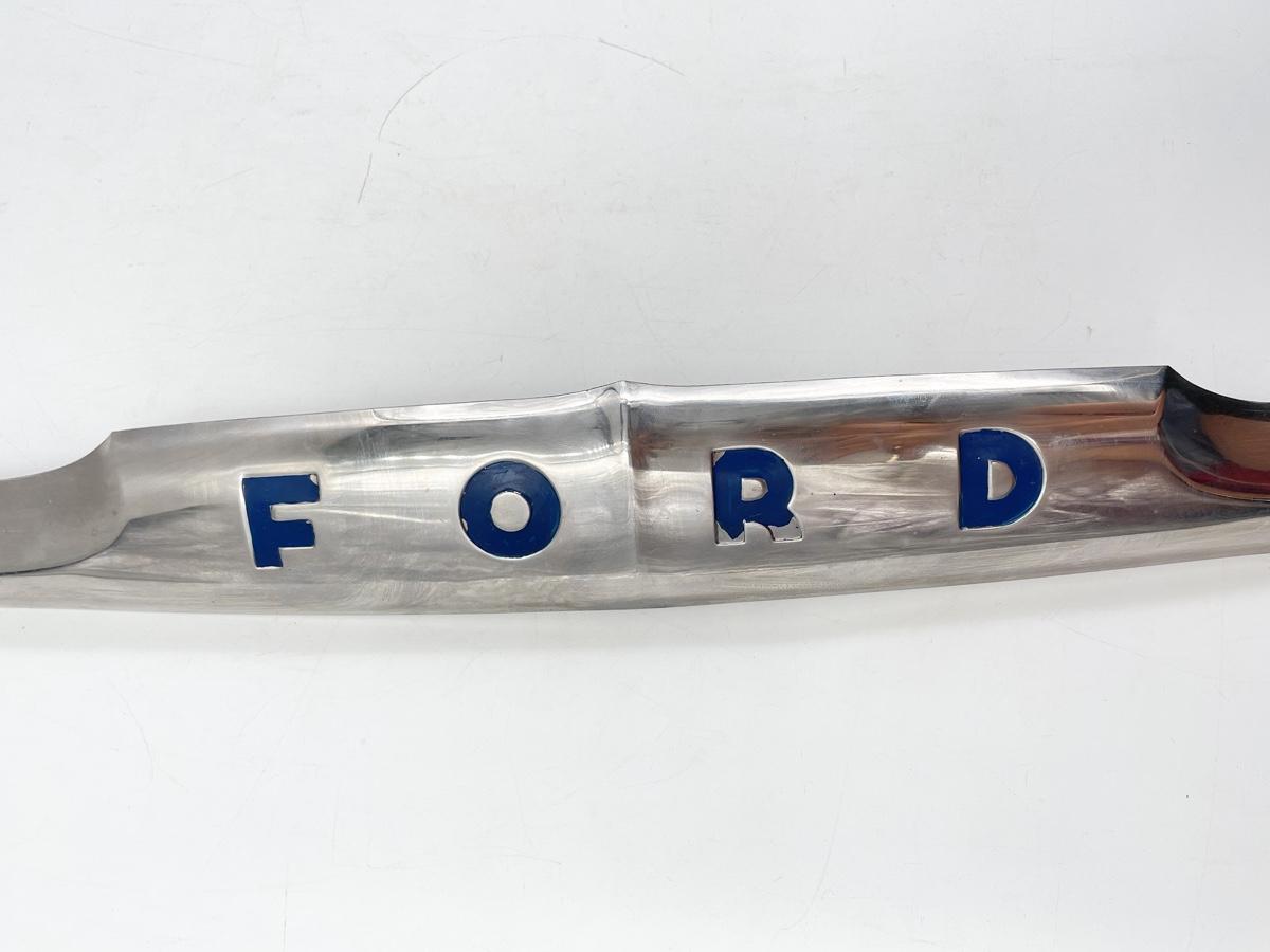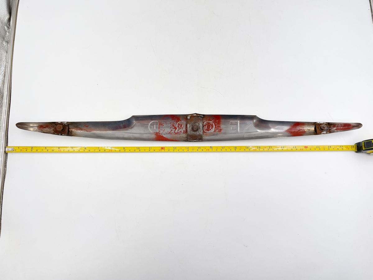 Possibly from 1948 Ford Coupe Convertible. In good condition for the age, some of the paint on the letters has chipped off. Measures approx 27-27.5” long and 2.5” wide at widest point.