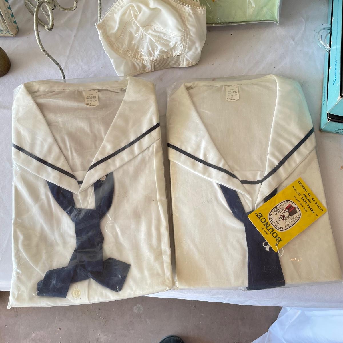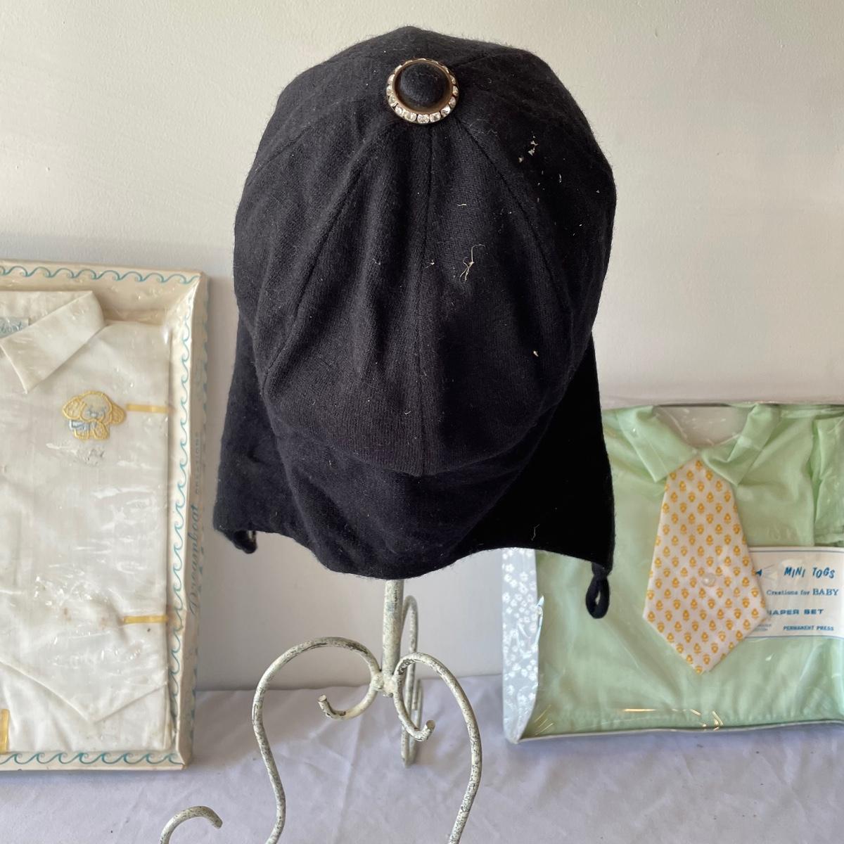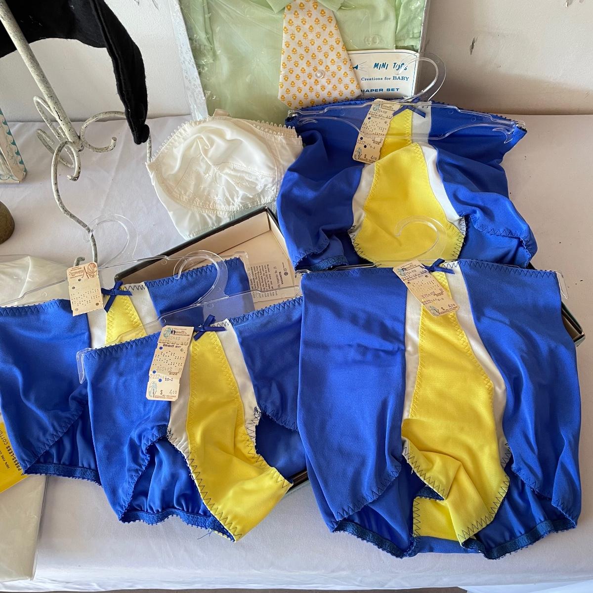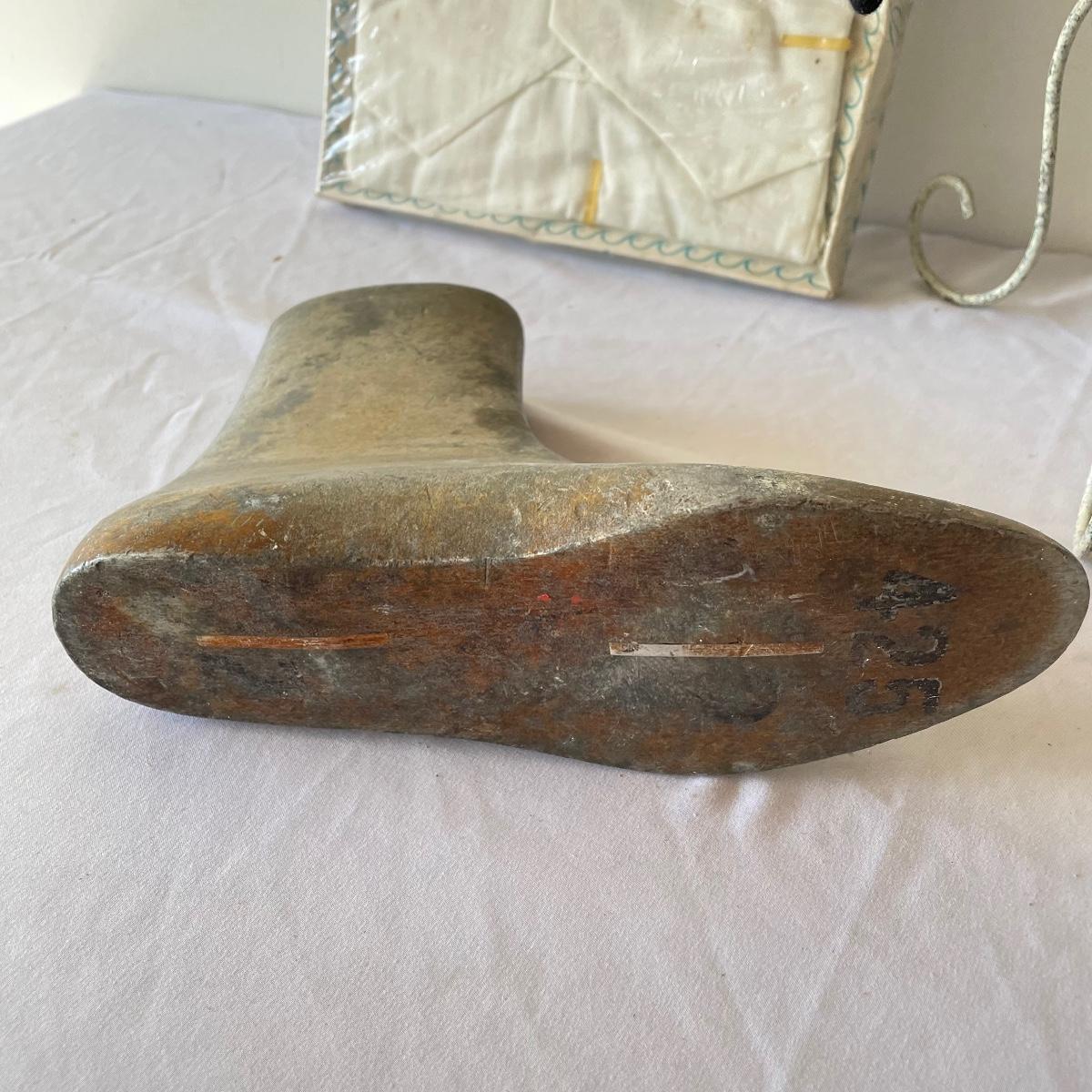 Small head form with metal stand and upholstery head measuring 16” tall. Lot also has a neat variety of unused vintage clothing like Vassarette underwear and children clothing. Lot also features a 3-425 marked metal shoe form. See images. Shipping available.