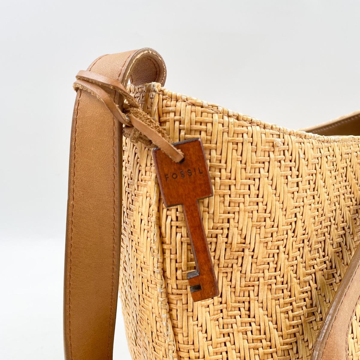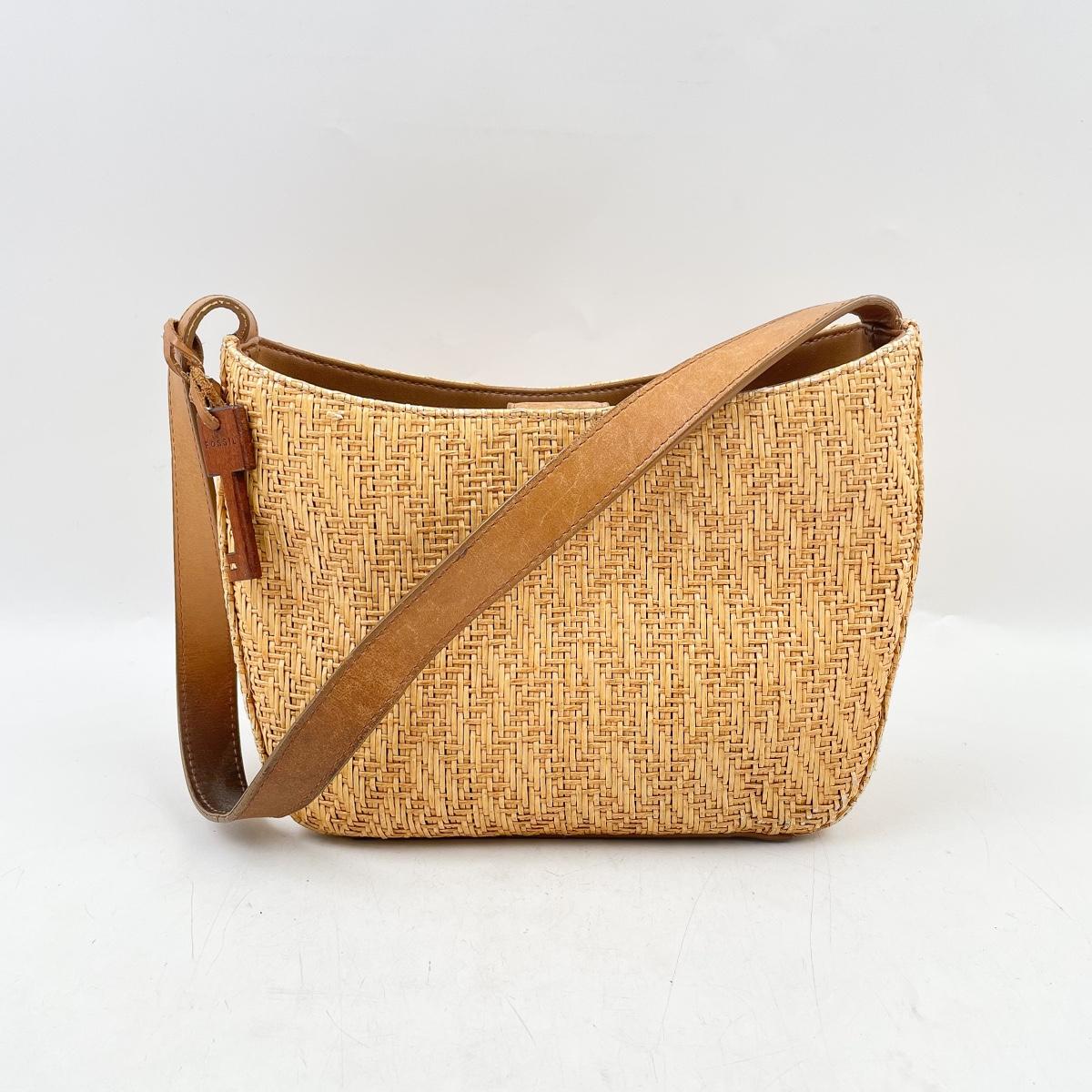 VINTAGE FOSSIL WOVEN STRAW HANDBAG