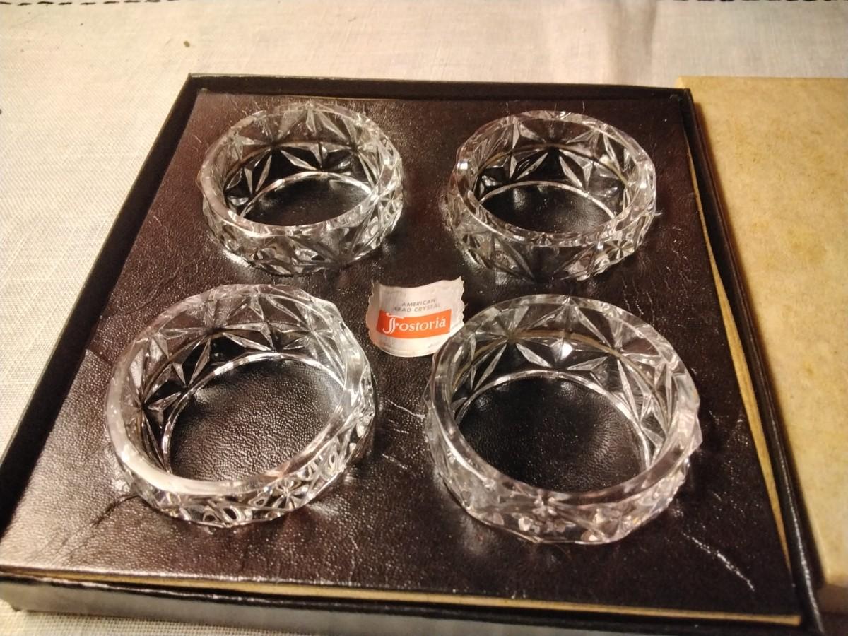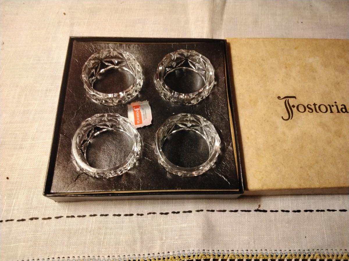 Vintage Fostoria American Clean (Stem 2056) Crystals Napkin Rings Set of Four