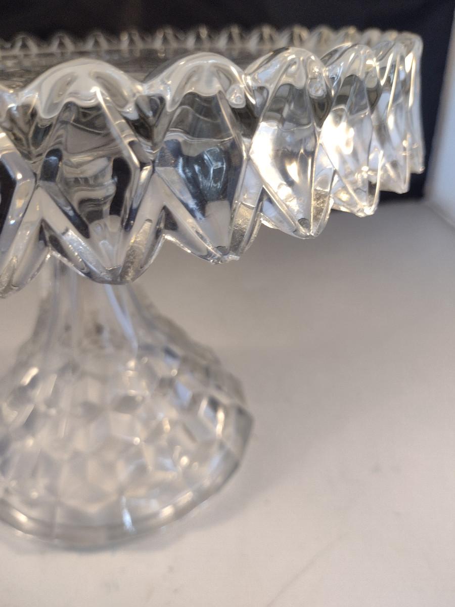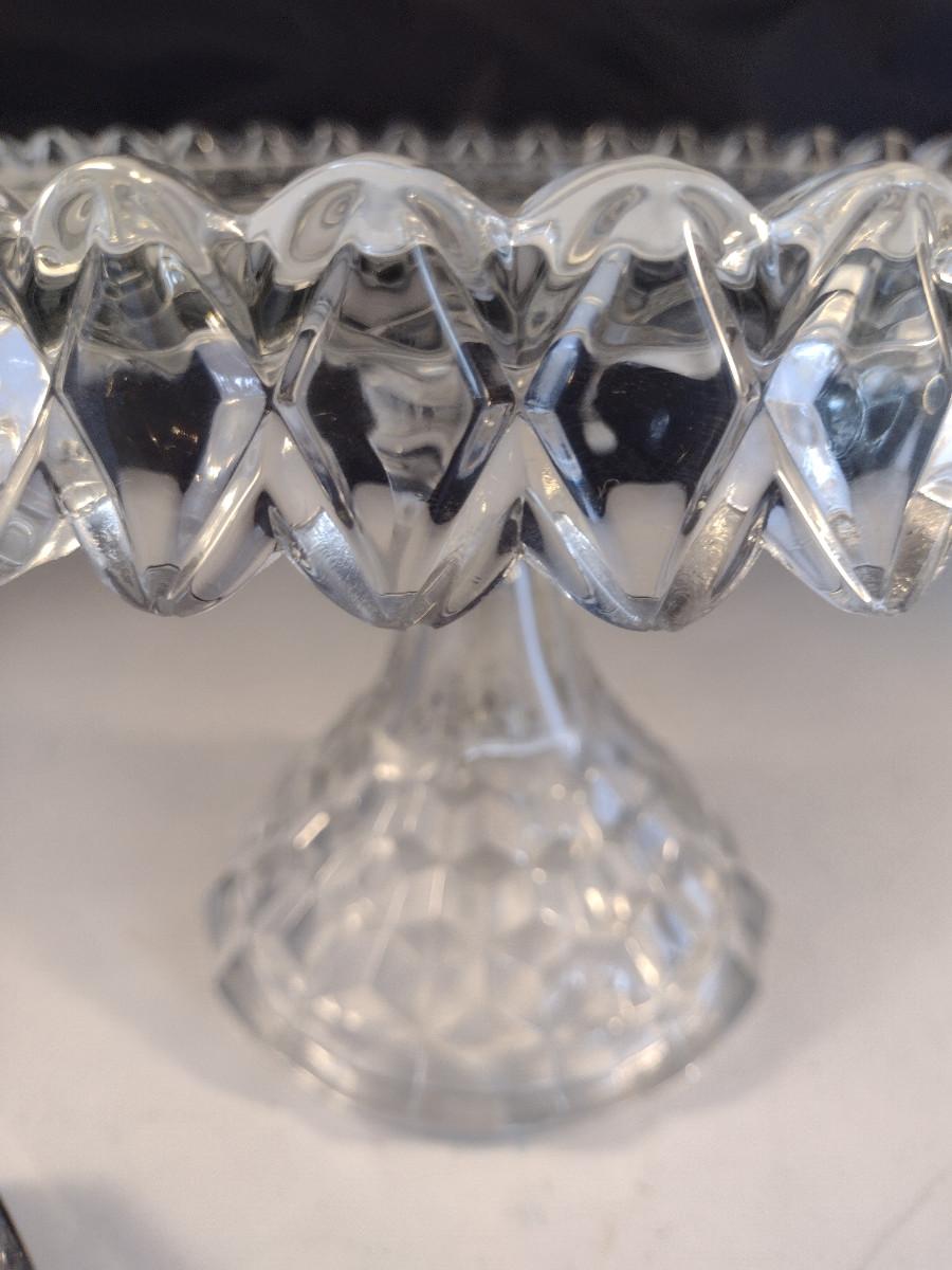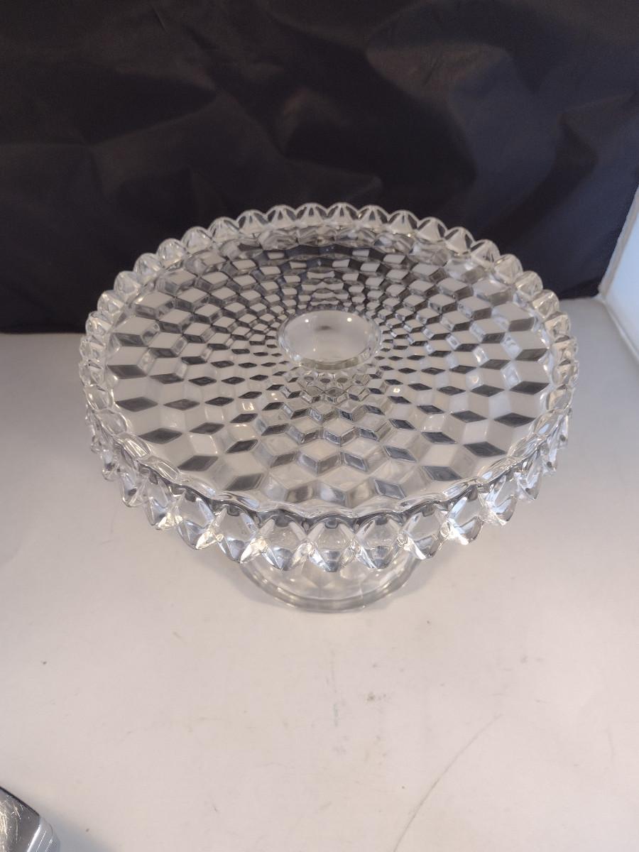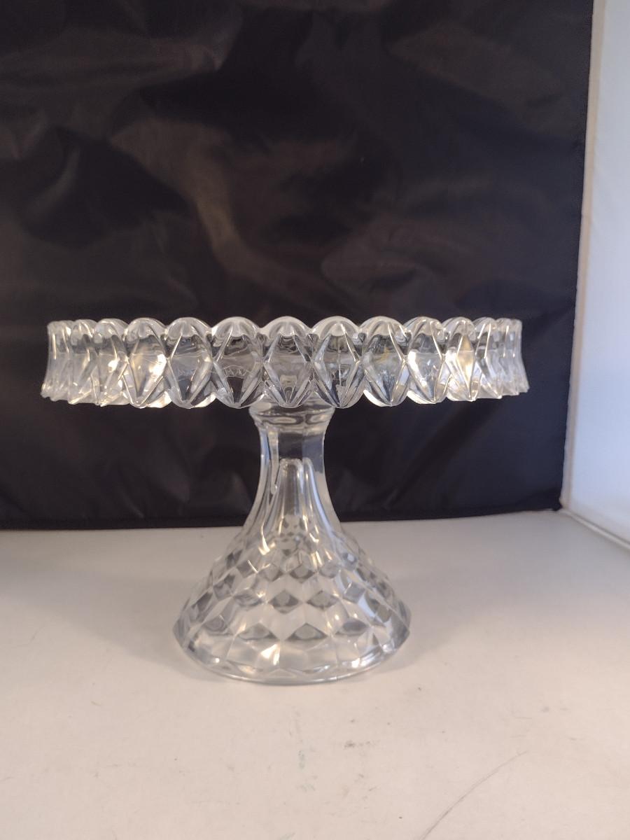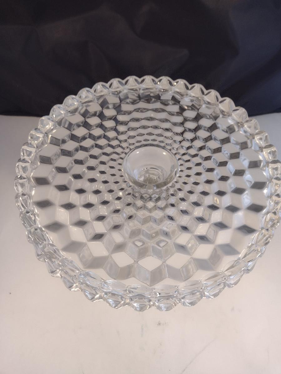 Vintage Fostoria American Cubist Round Cake Pedestal with Rum Well- Approx 10" in Diameter