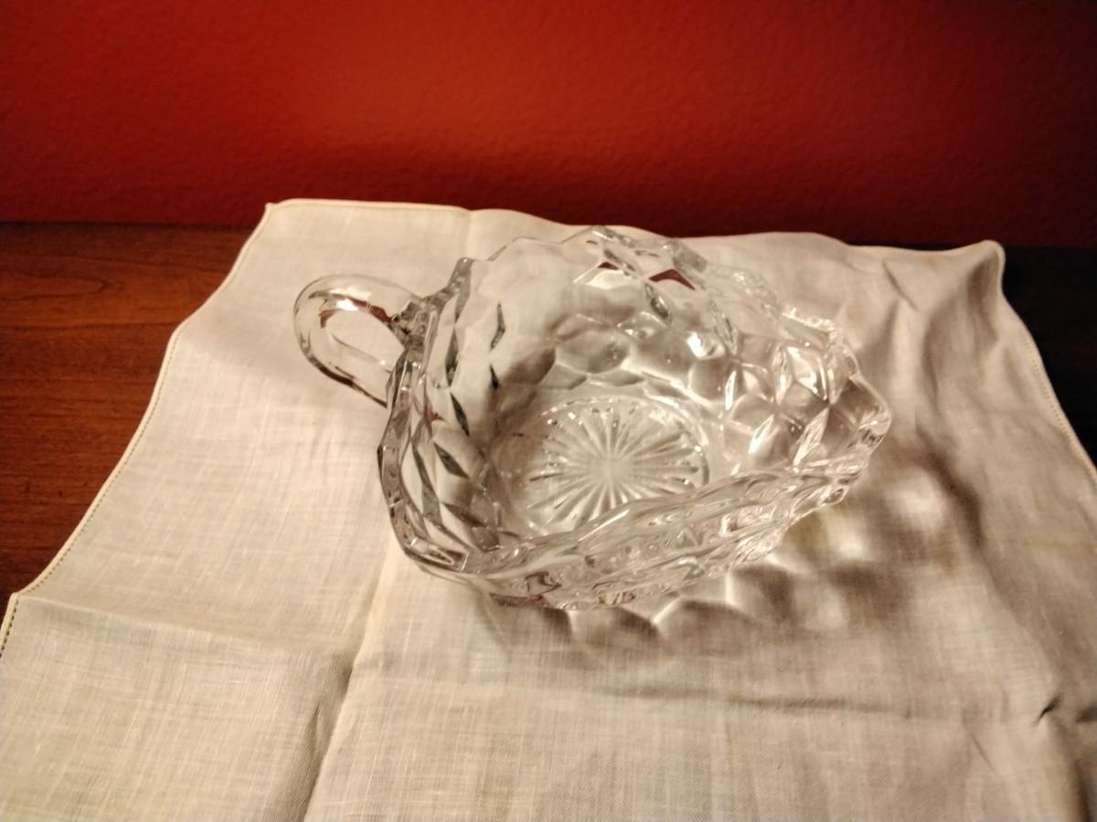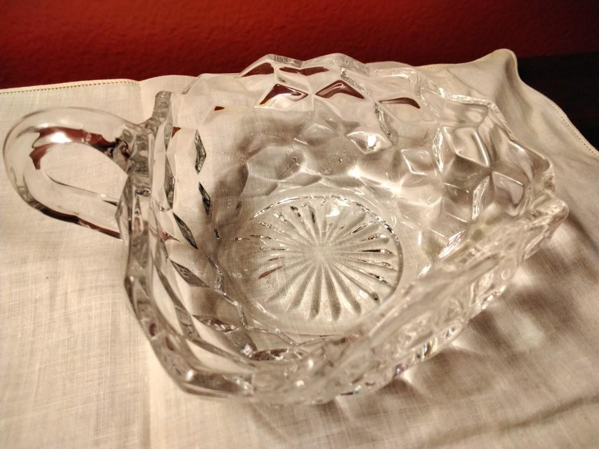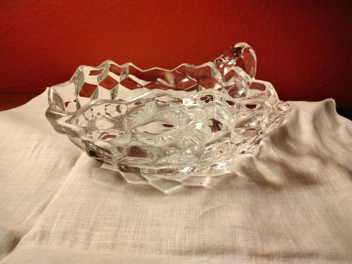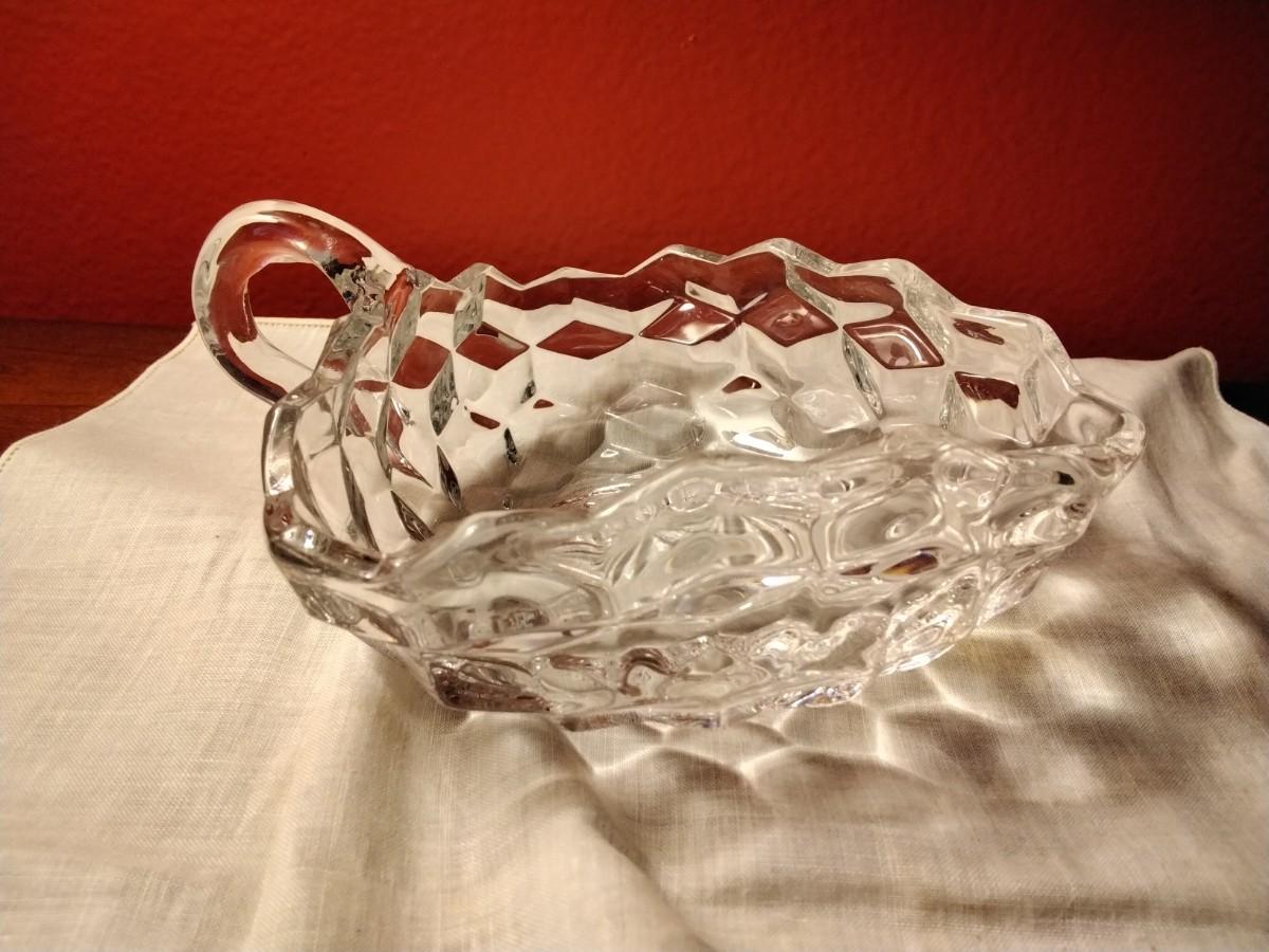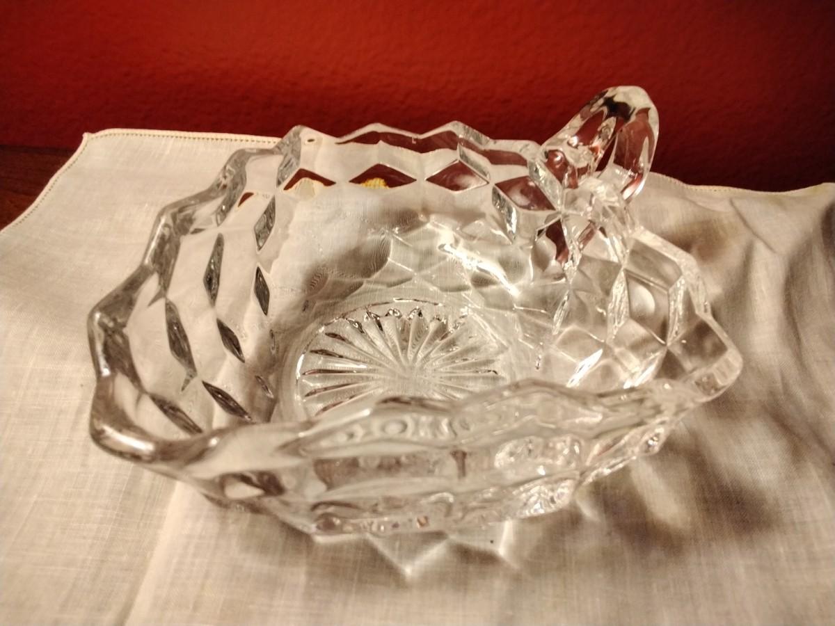Vintage Fostoria American Pattern Crystal Square Handled Bowl Cut Glass
