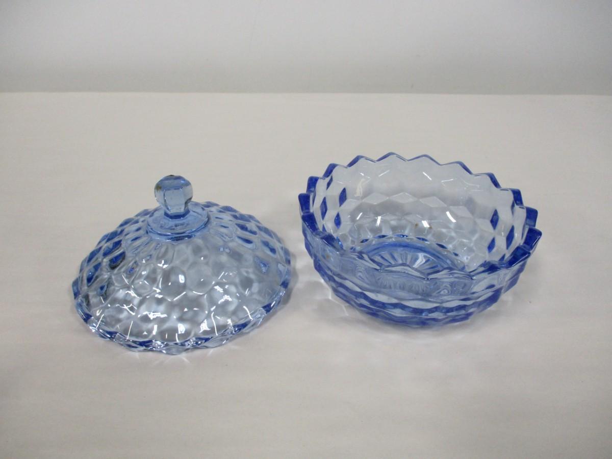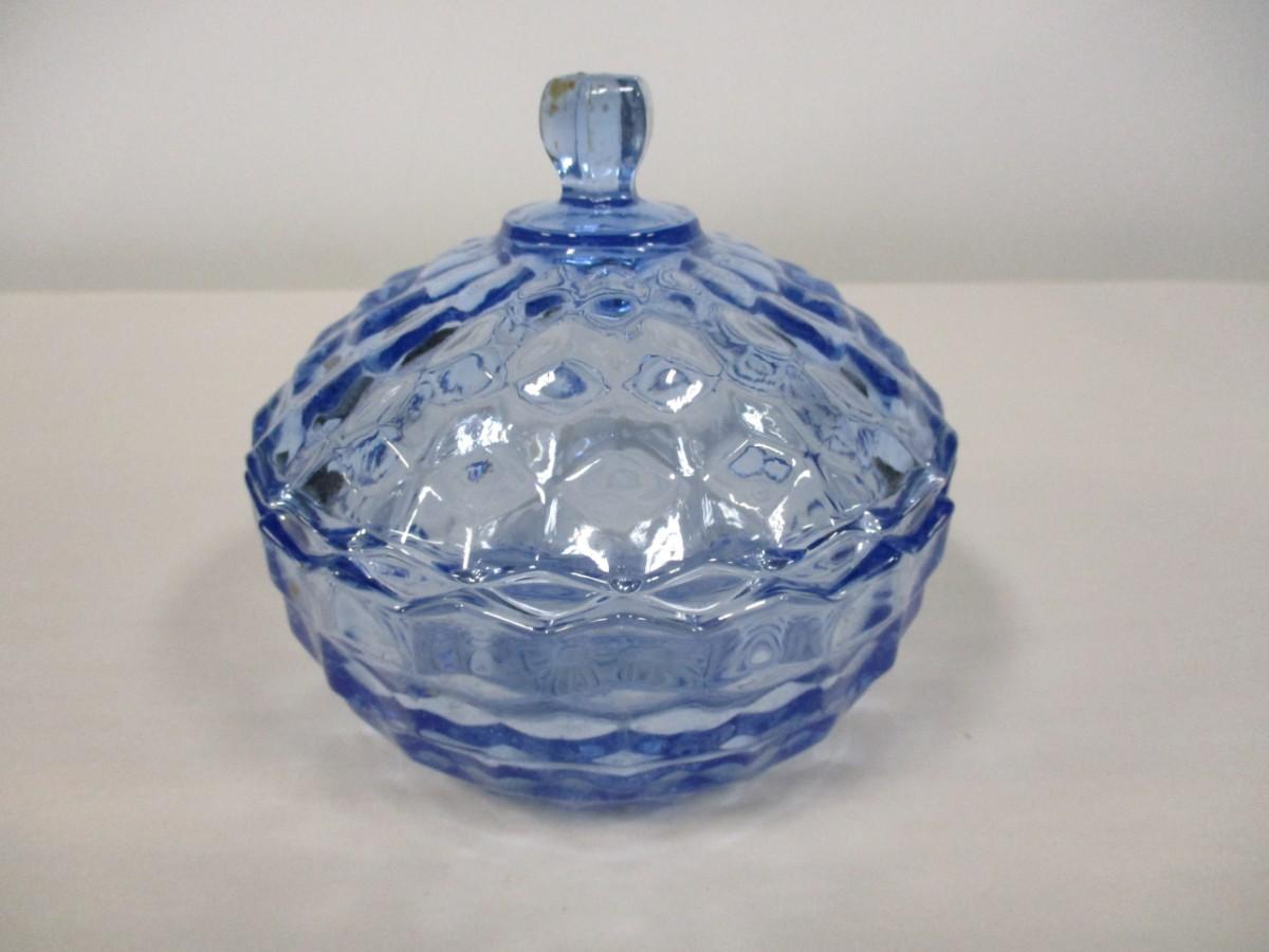 Vintage Fostoria Cubist Light Blue Candy Dish