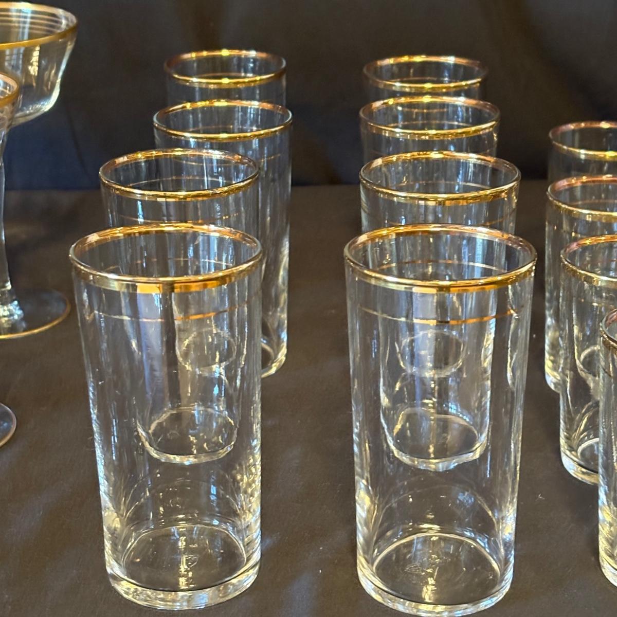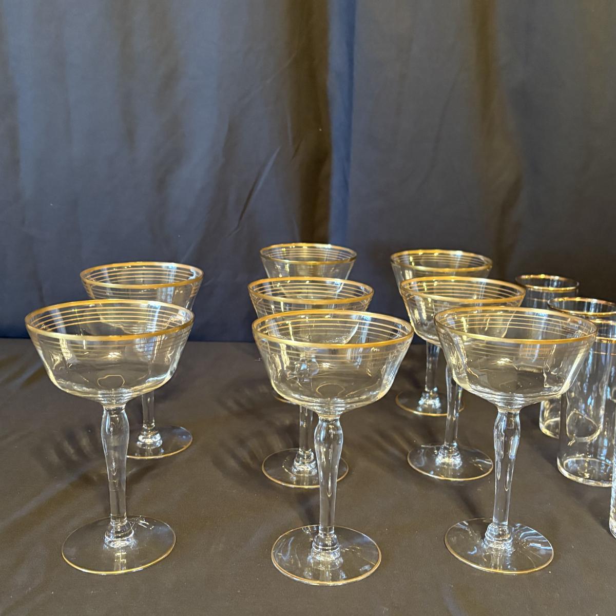 Vintage Fostoria Gold-Rimmed Coupe & Tumbler Glasses (BD-SF)