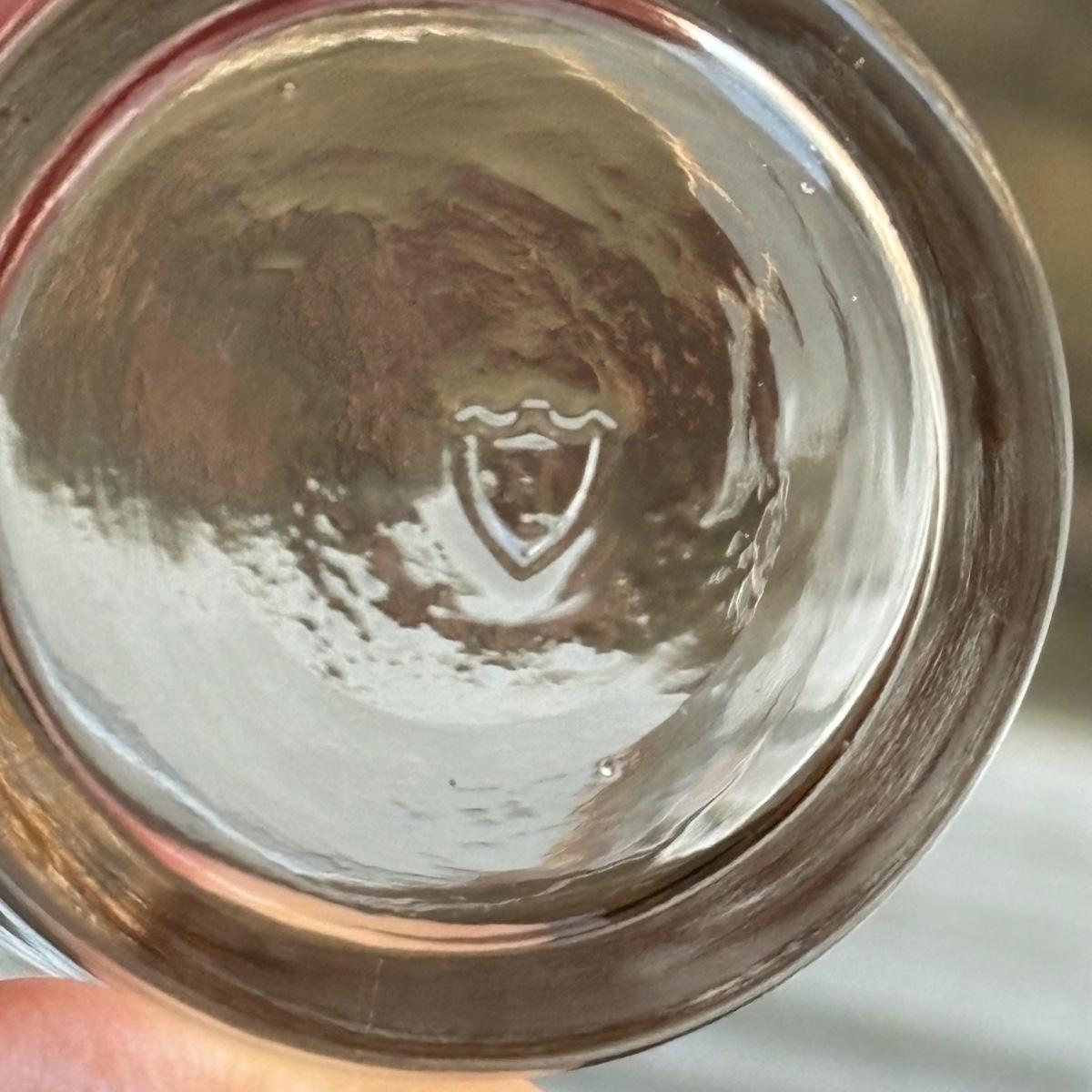 This Collection includes eight Coupes, eight 5"H Tumbler glasses, and eight 4" Tumbler glasses. The coupes have measurements of approximately 4"D x 6"H. The Tumbler glasses have a 2.5"D and appear to be stamped on the bottom with the Fostoria logo. Some glasses show sign of age in the gold-rim, see pictures for reference.