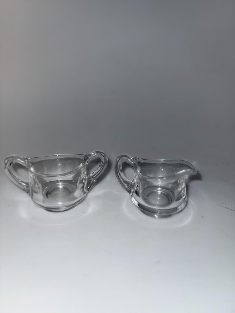 Vintage Fostoria Heather Pattern 3 Piece Mini Cream and Sugar Set with Tray