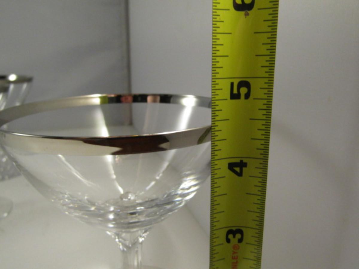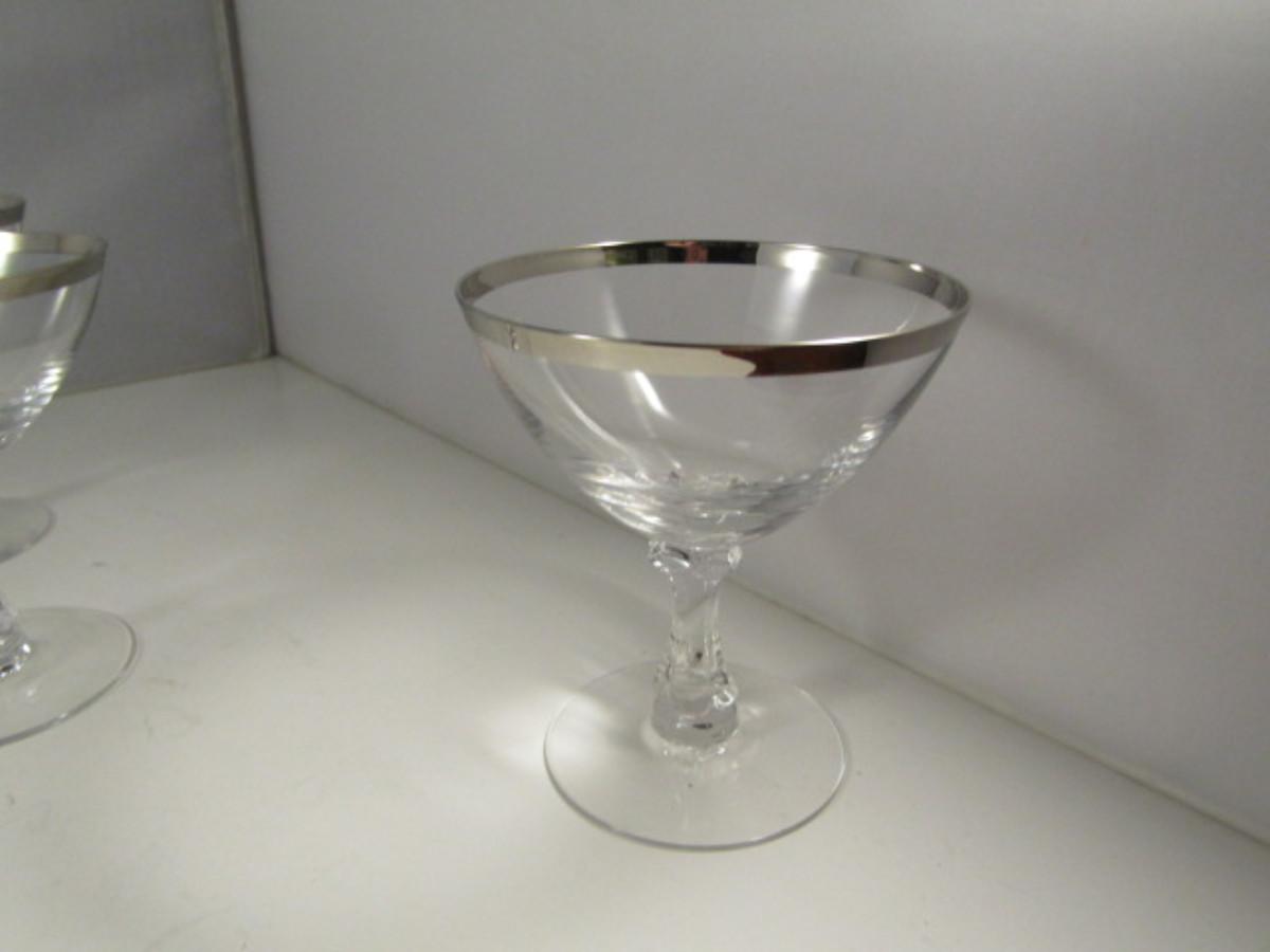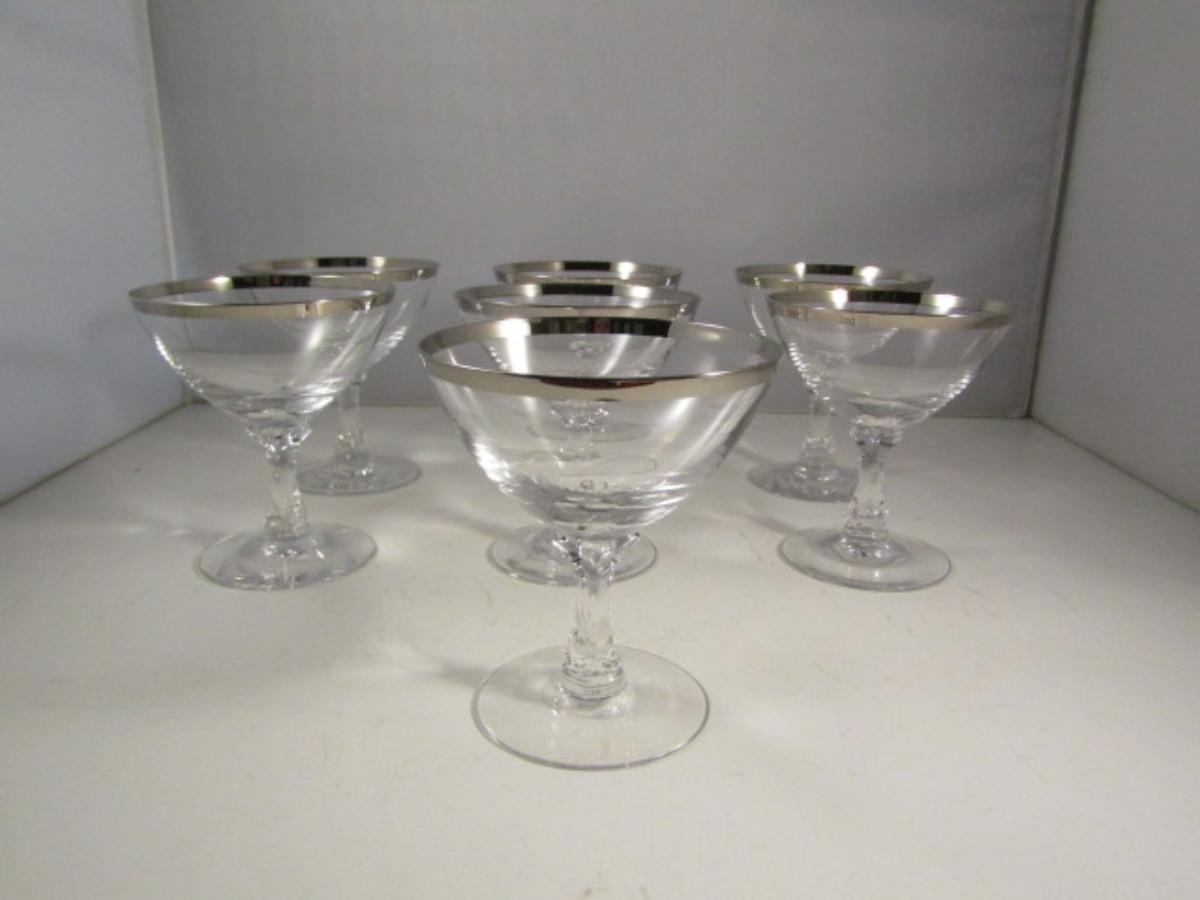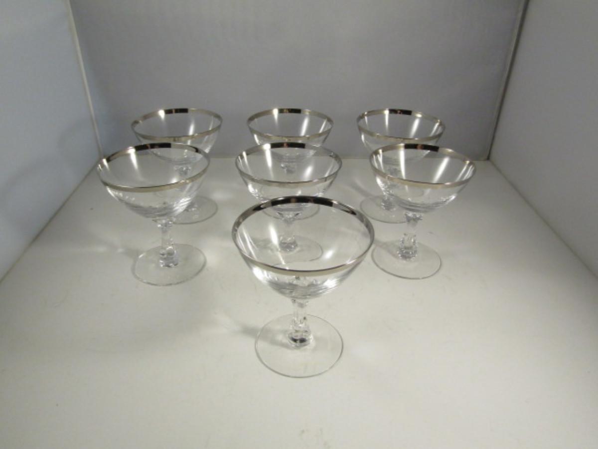 Vintage Fostoria Platinum Rim Champagne/Tall Sherbet Glasses- 'Wedding Ring' Pattern- 7 Pieces