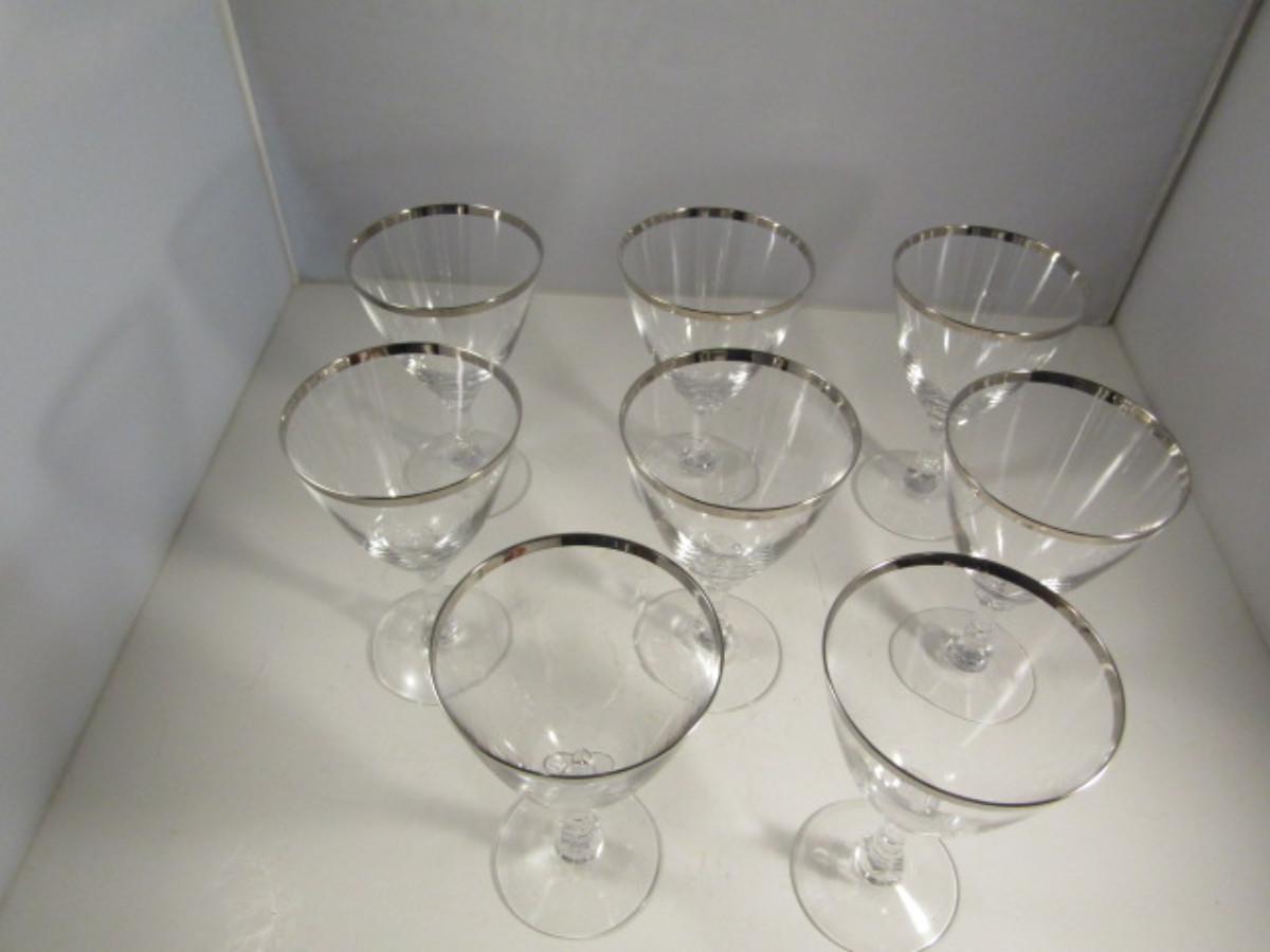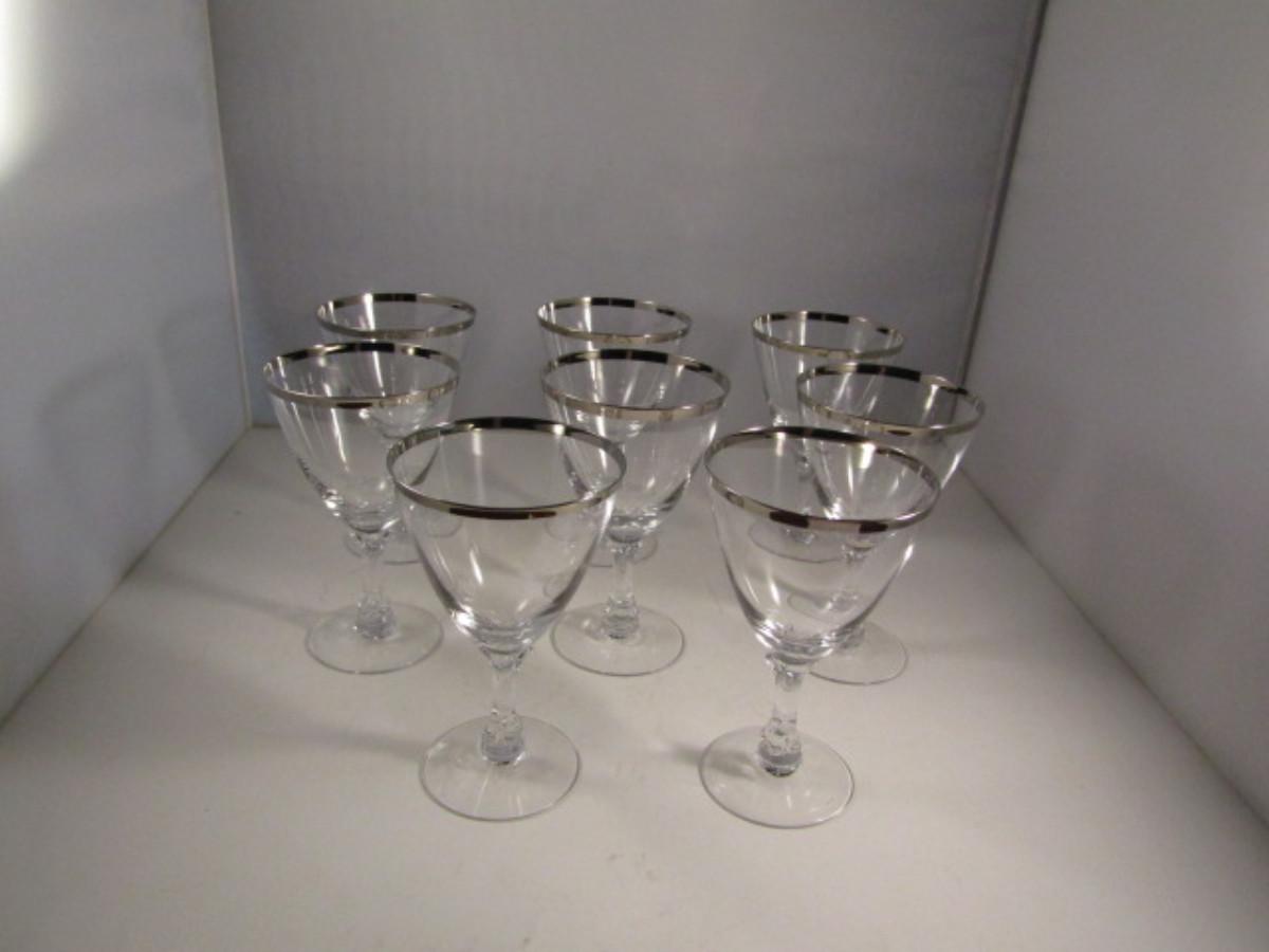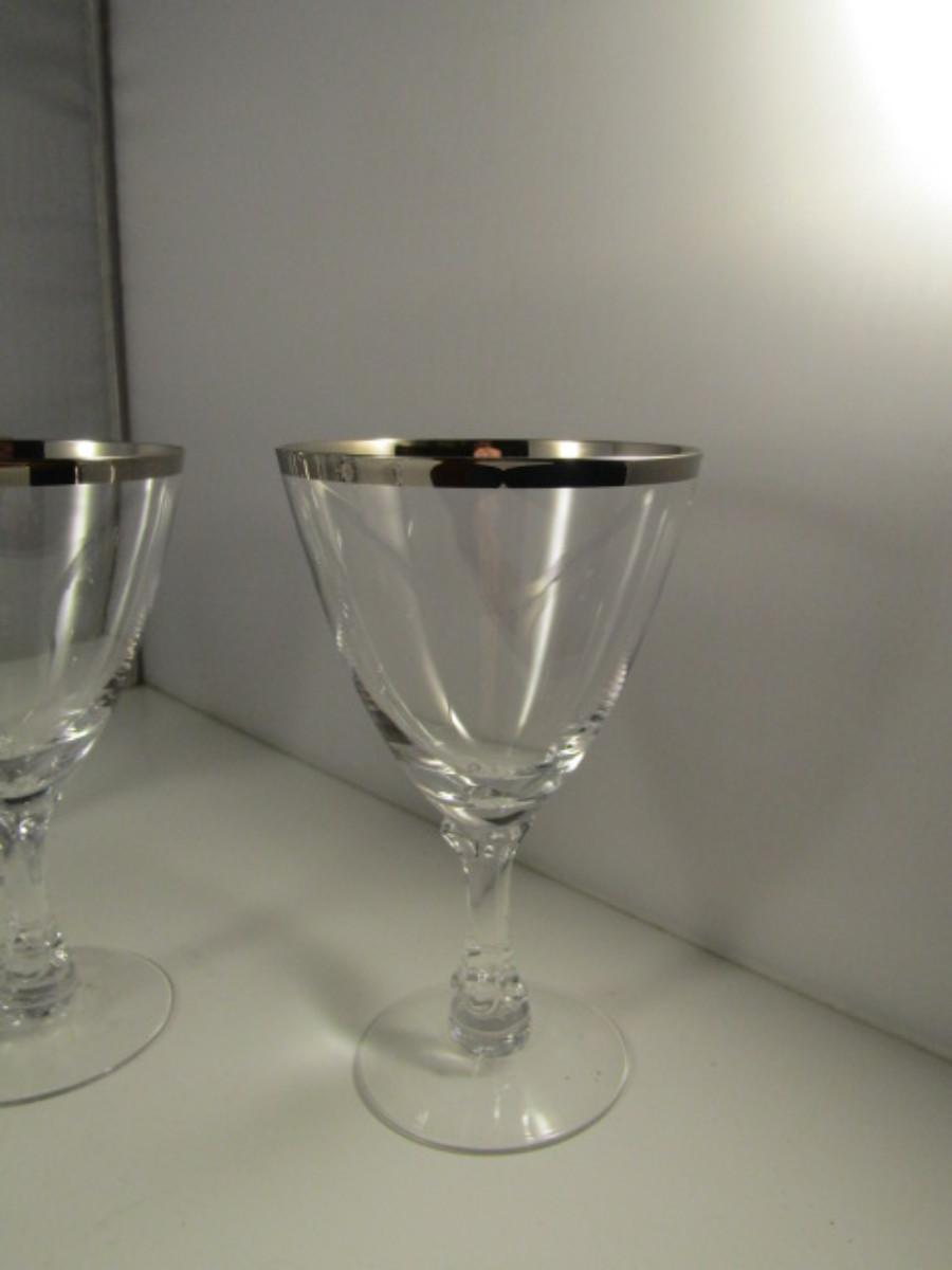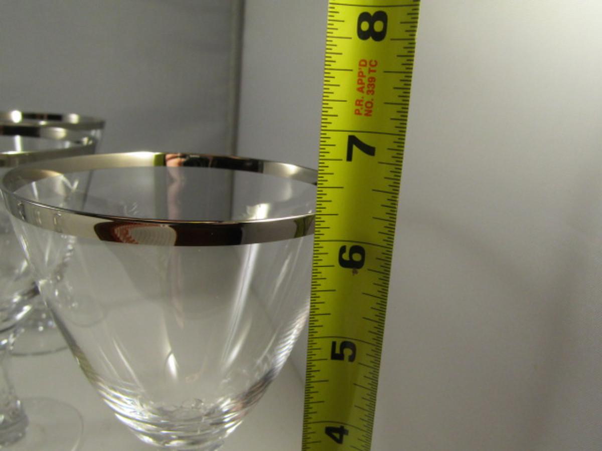 Vintage Fostoria Platinum Rim Water Goblets- 'Wedding Ring' Pattern- 8 Pieces