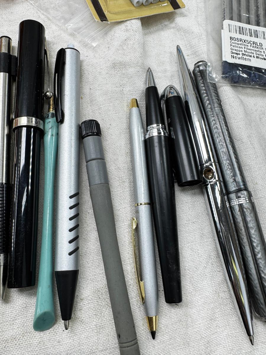 Collectible pens, and parts. Includes Waterman, and other name brands. None are tested some are used some unsued.