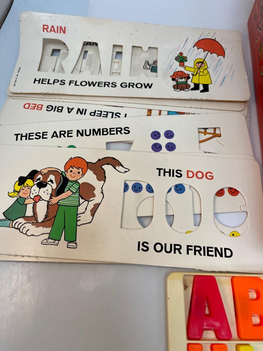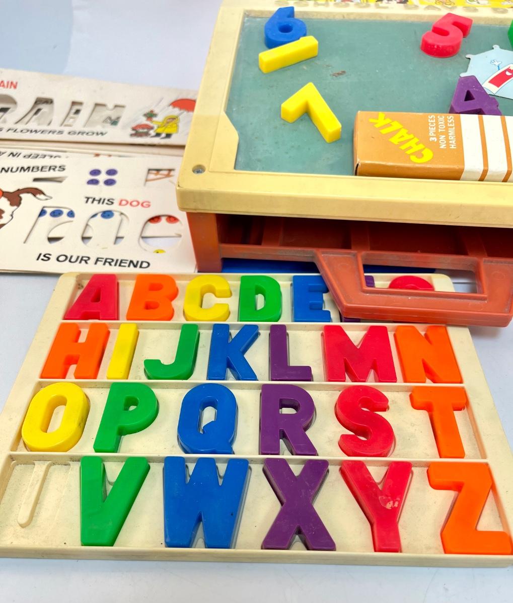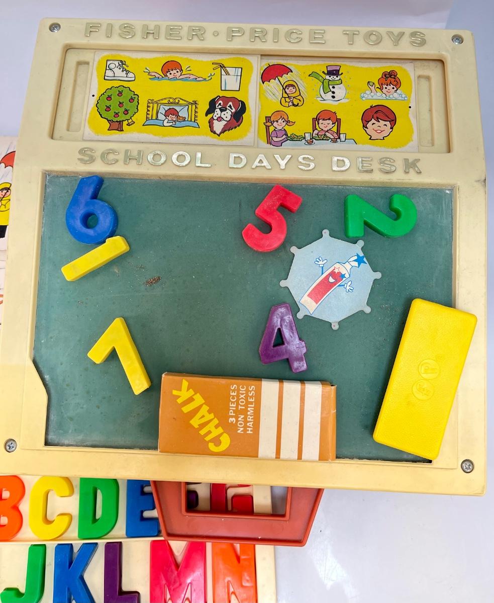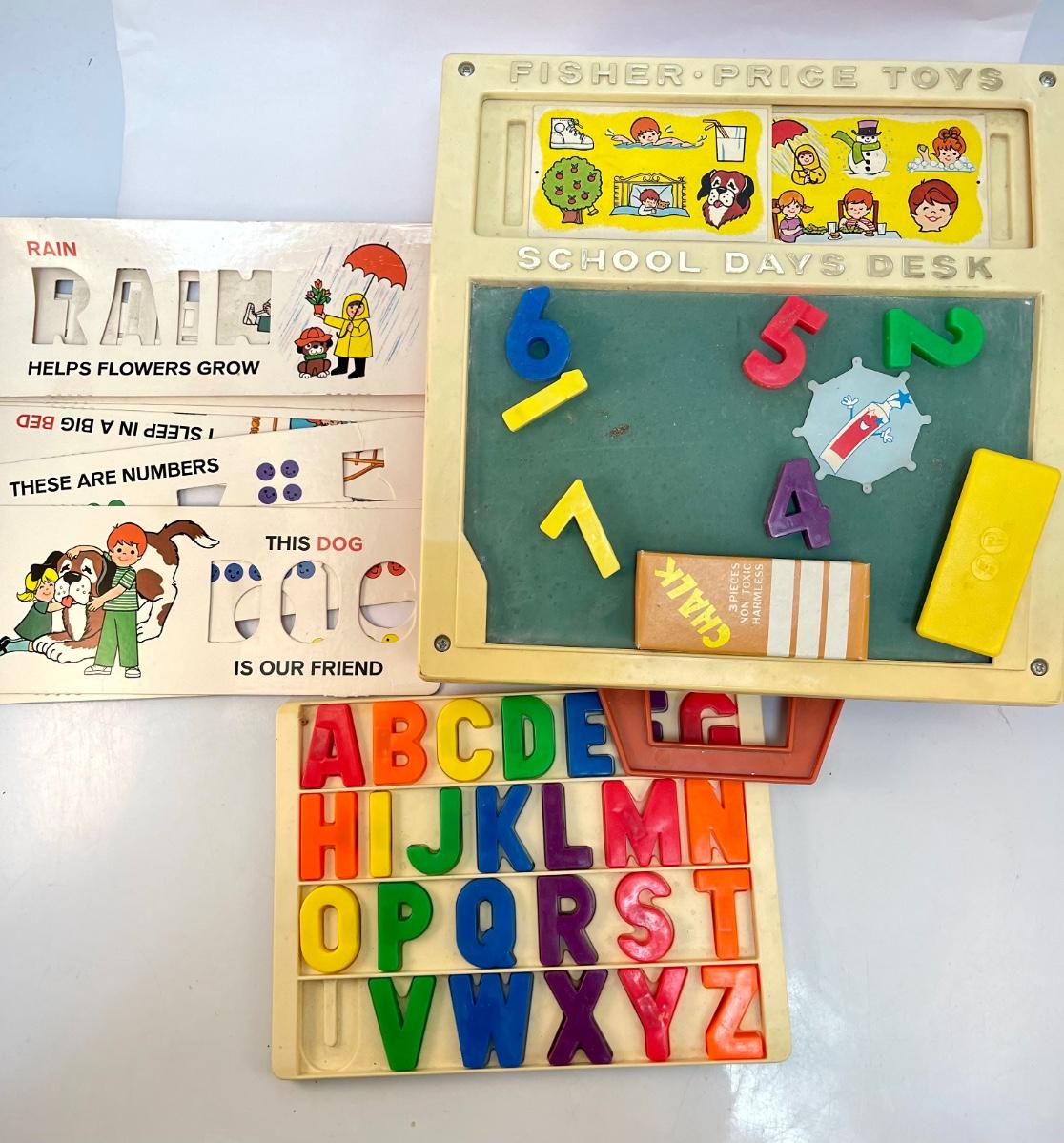 Vintage FP Fisher Price School Desk with spelling word cards and magnets